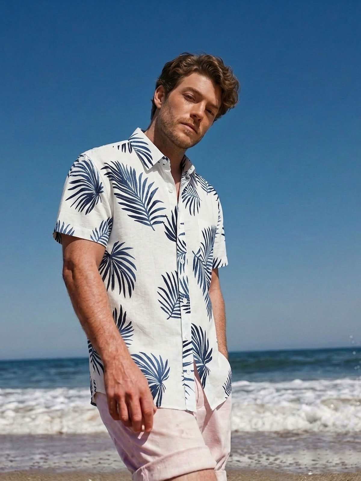 Men's Floral Holiday Cotton Cruise Summer Palm Tree Hawaiian Shirt