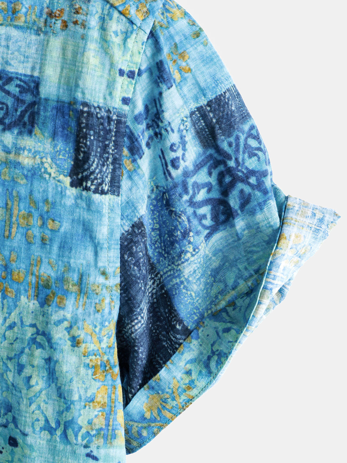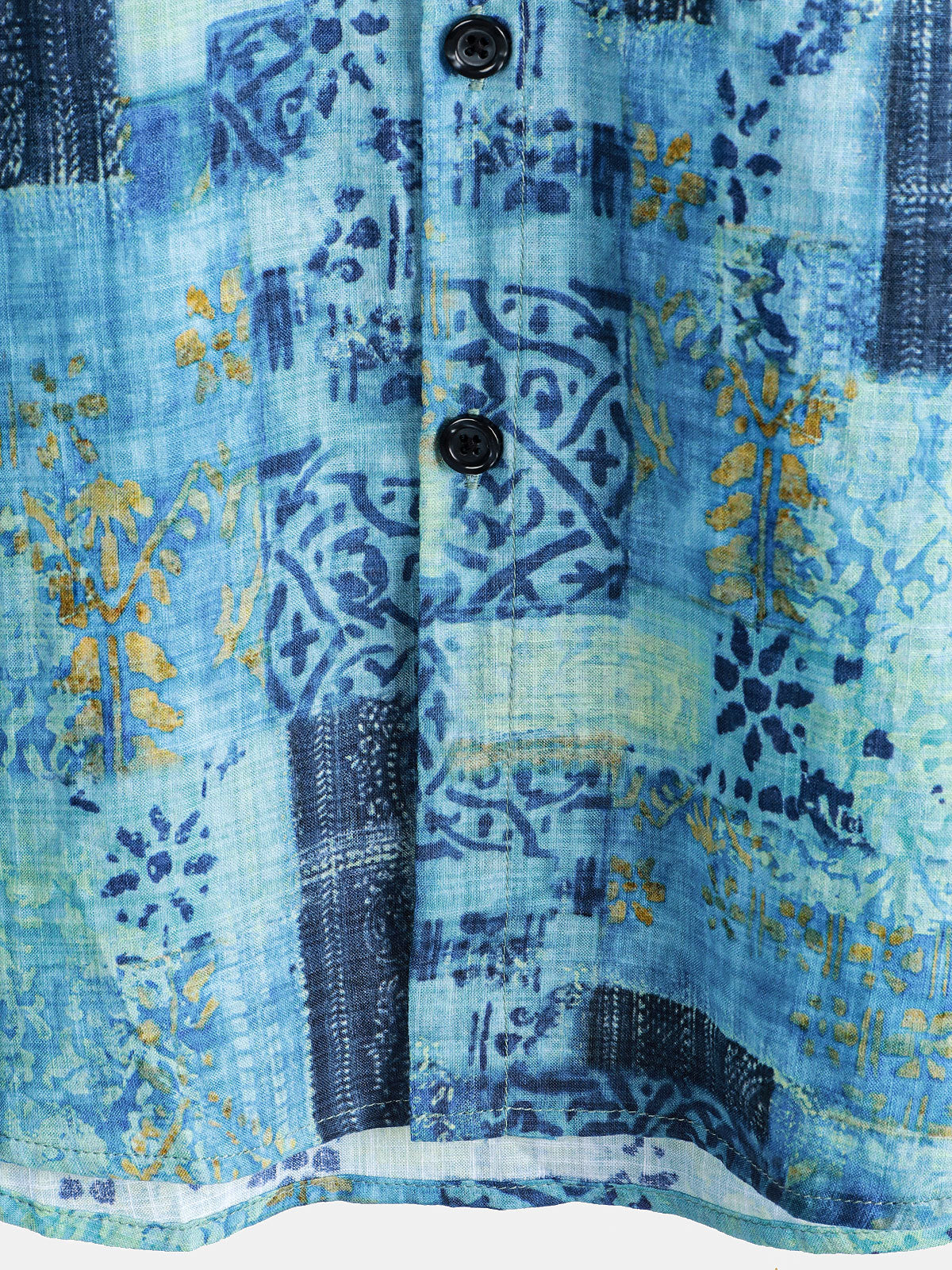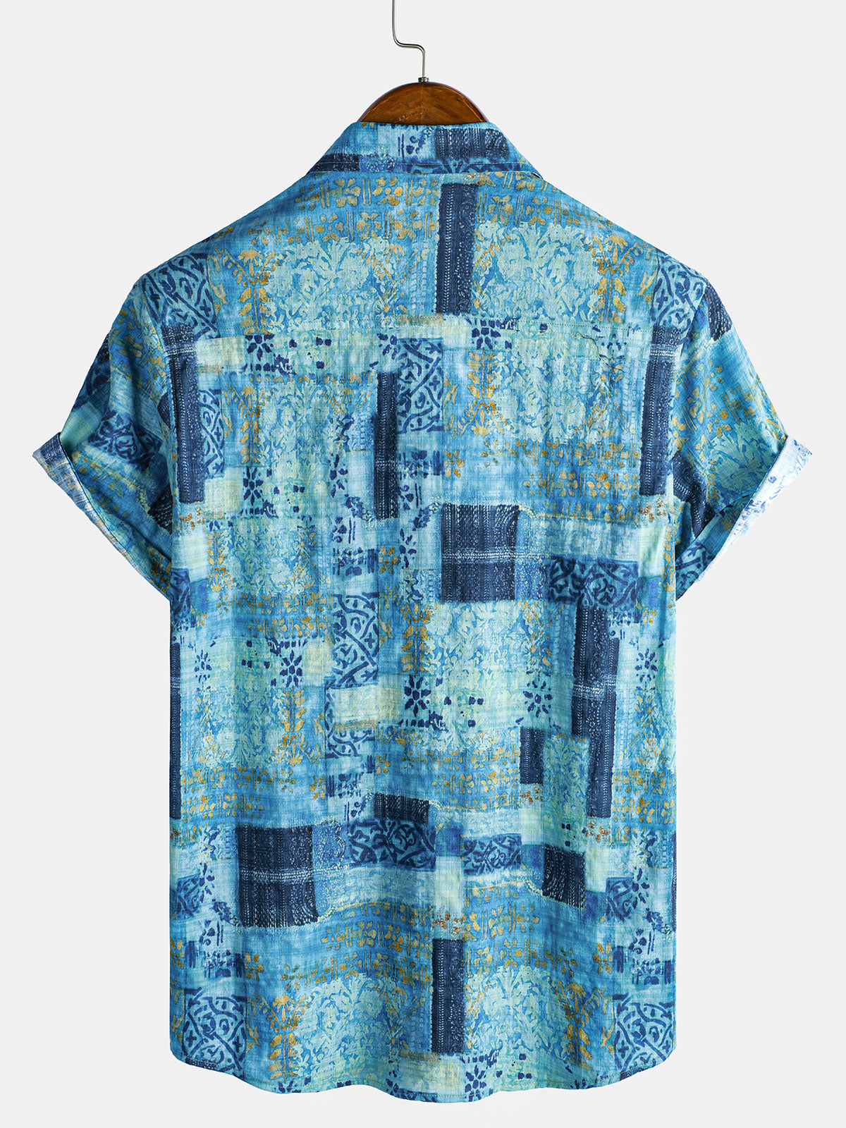 Men's Blue Cotton Vintage Short Sleeve Summer Button Up Shirt