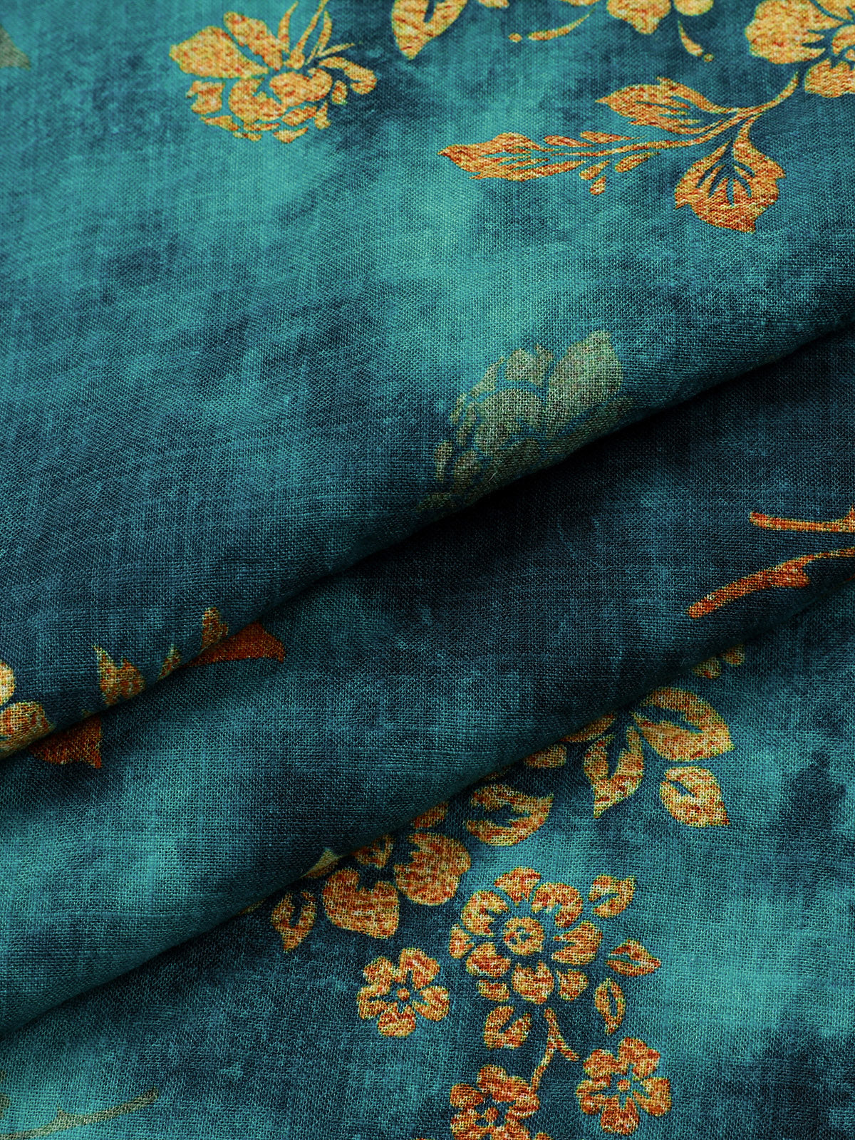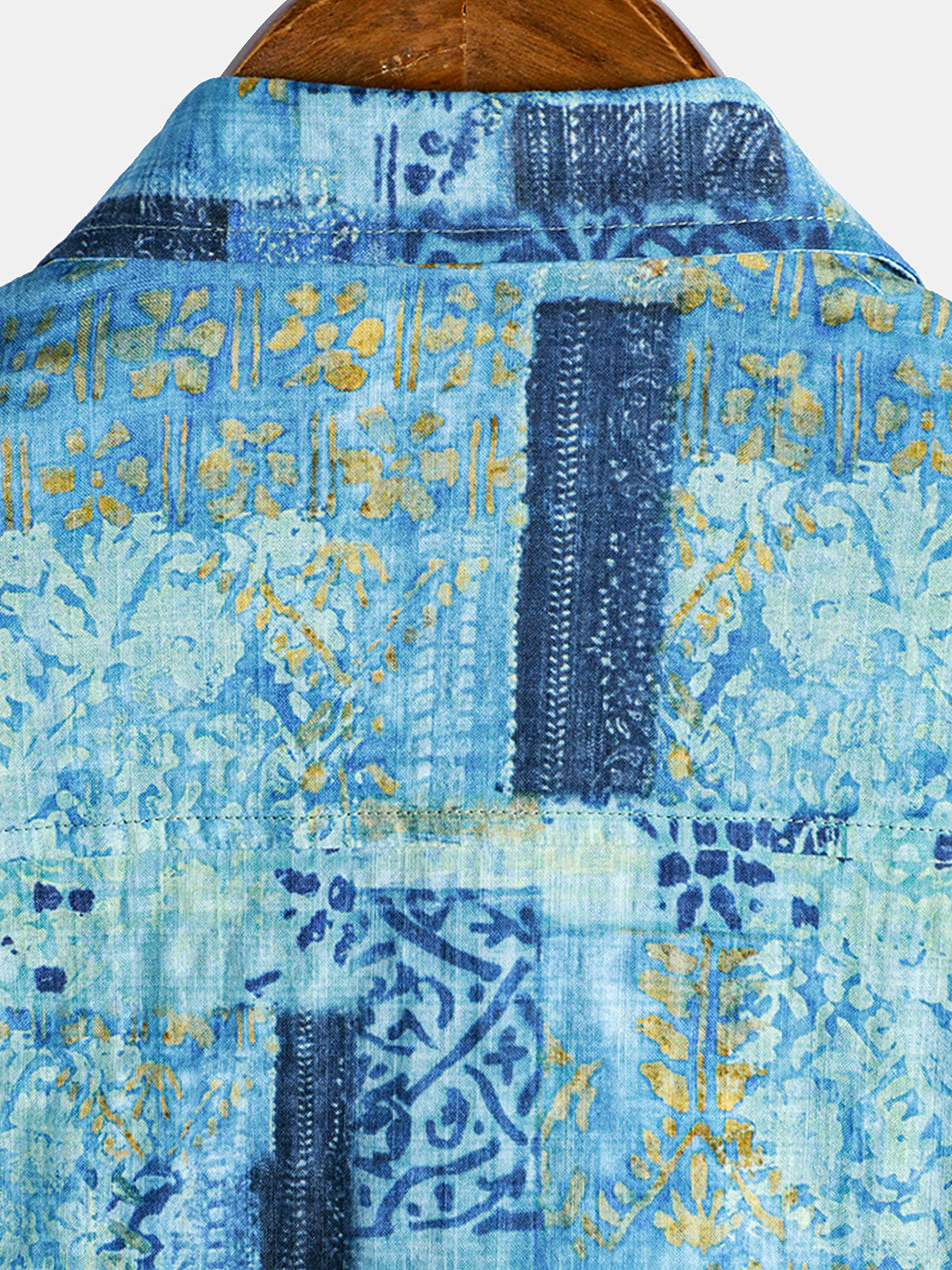 Men's Retro Beach Hawaiian Cotton Holiday Button Up Blue Short Sleeve Floral Shirt