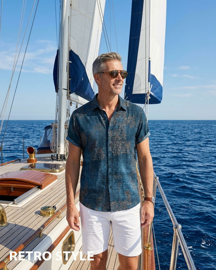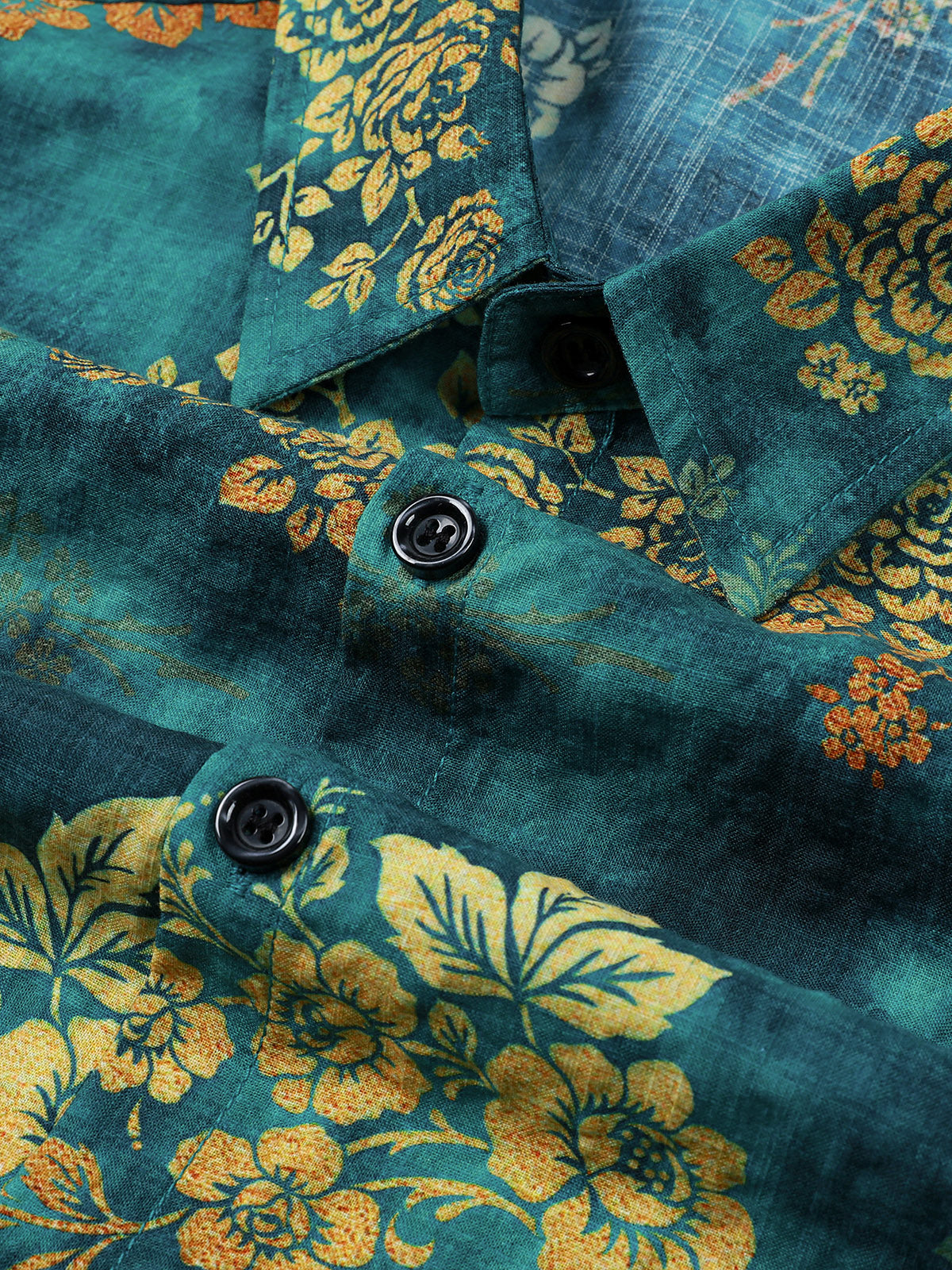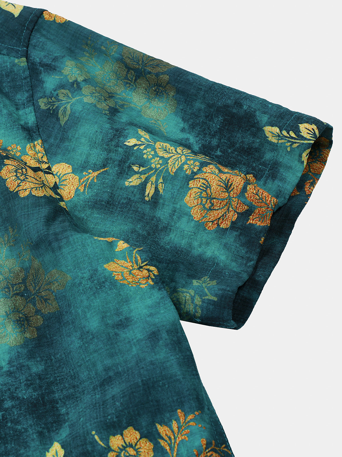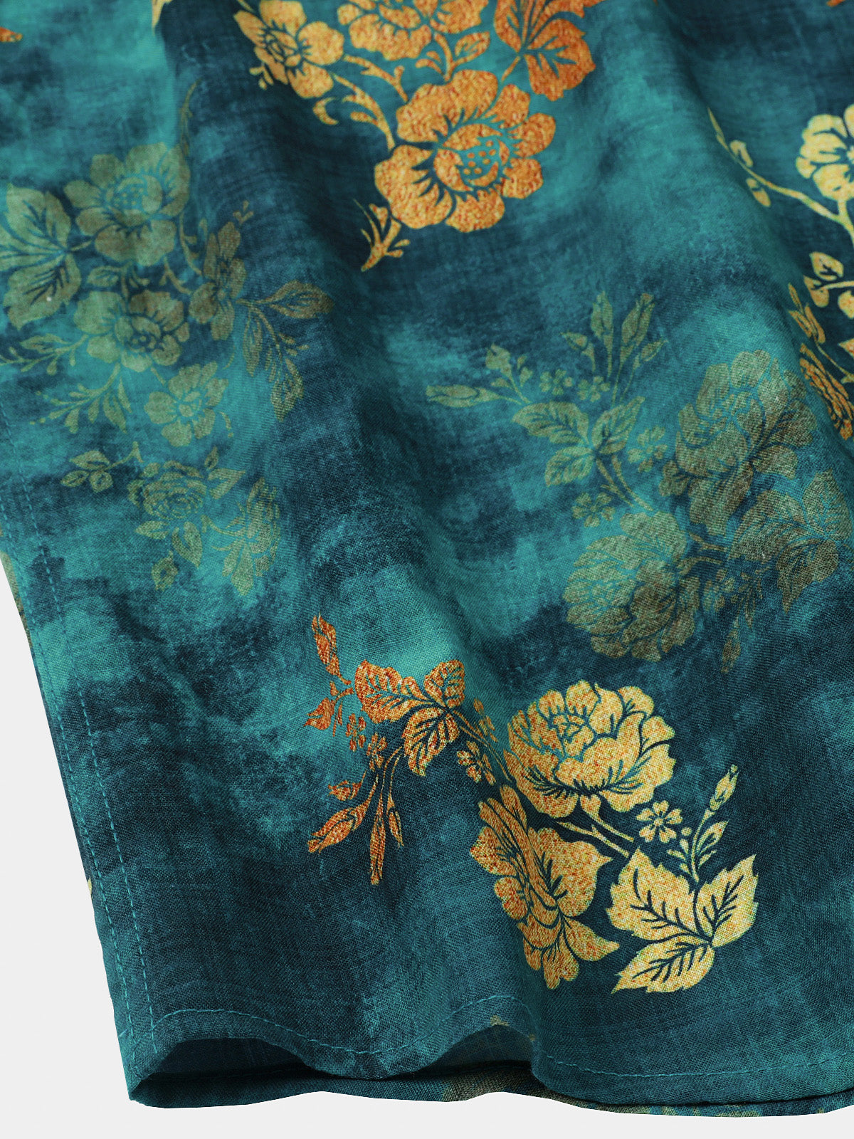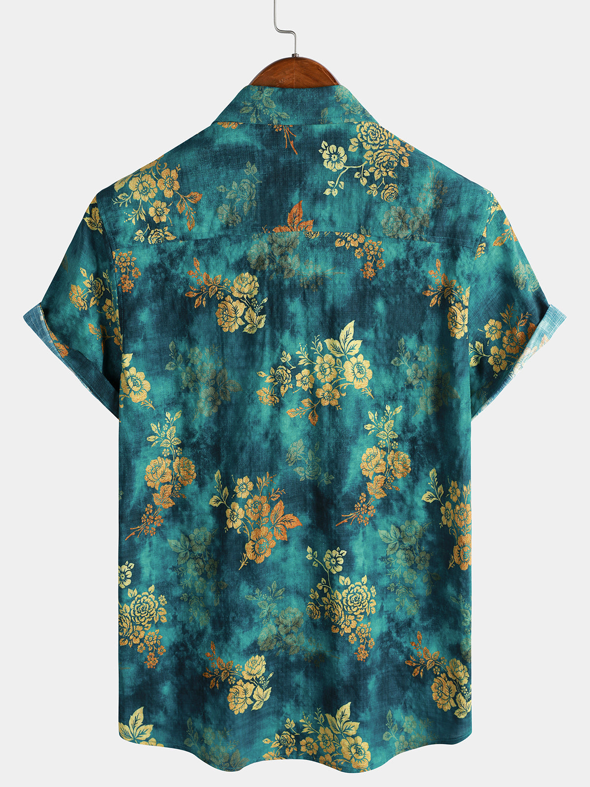 Men's Retro Floral Vintage Summer Holiday Button Short Sleeve Shirt