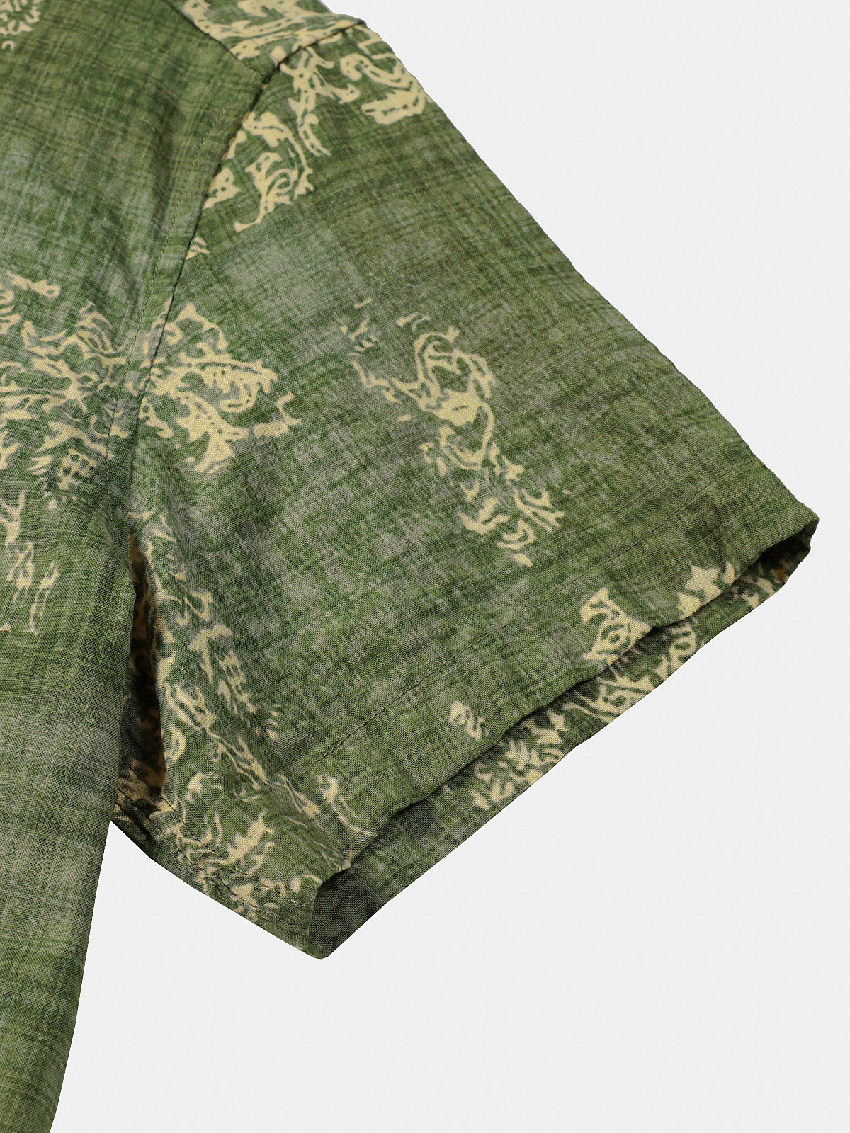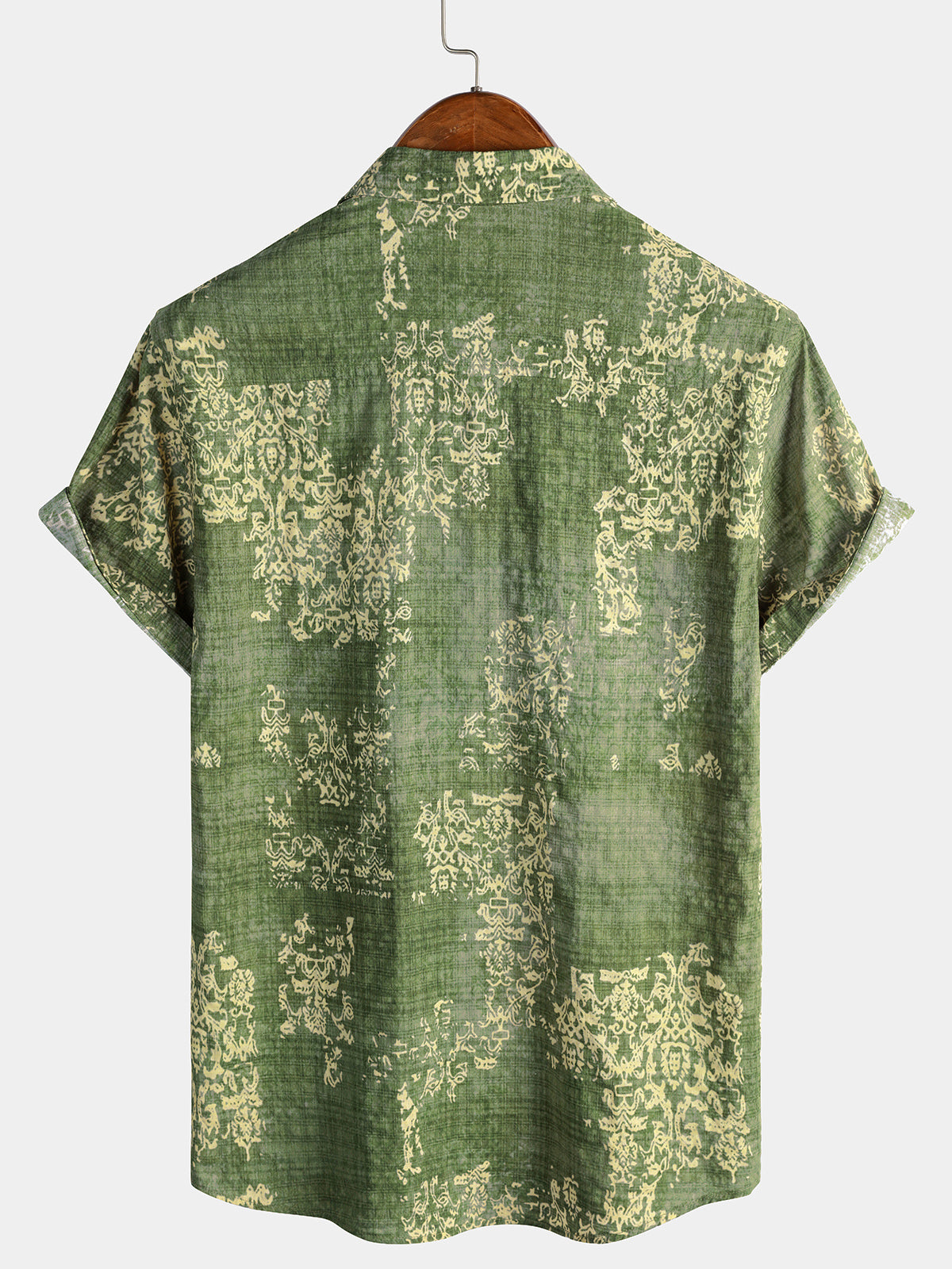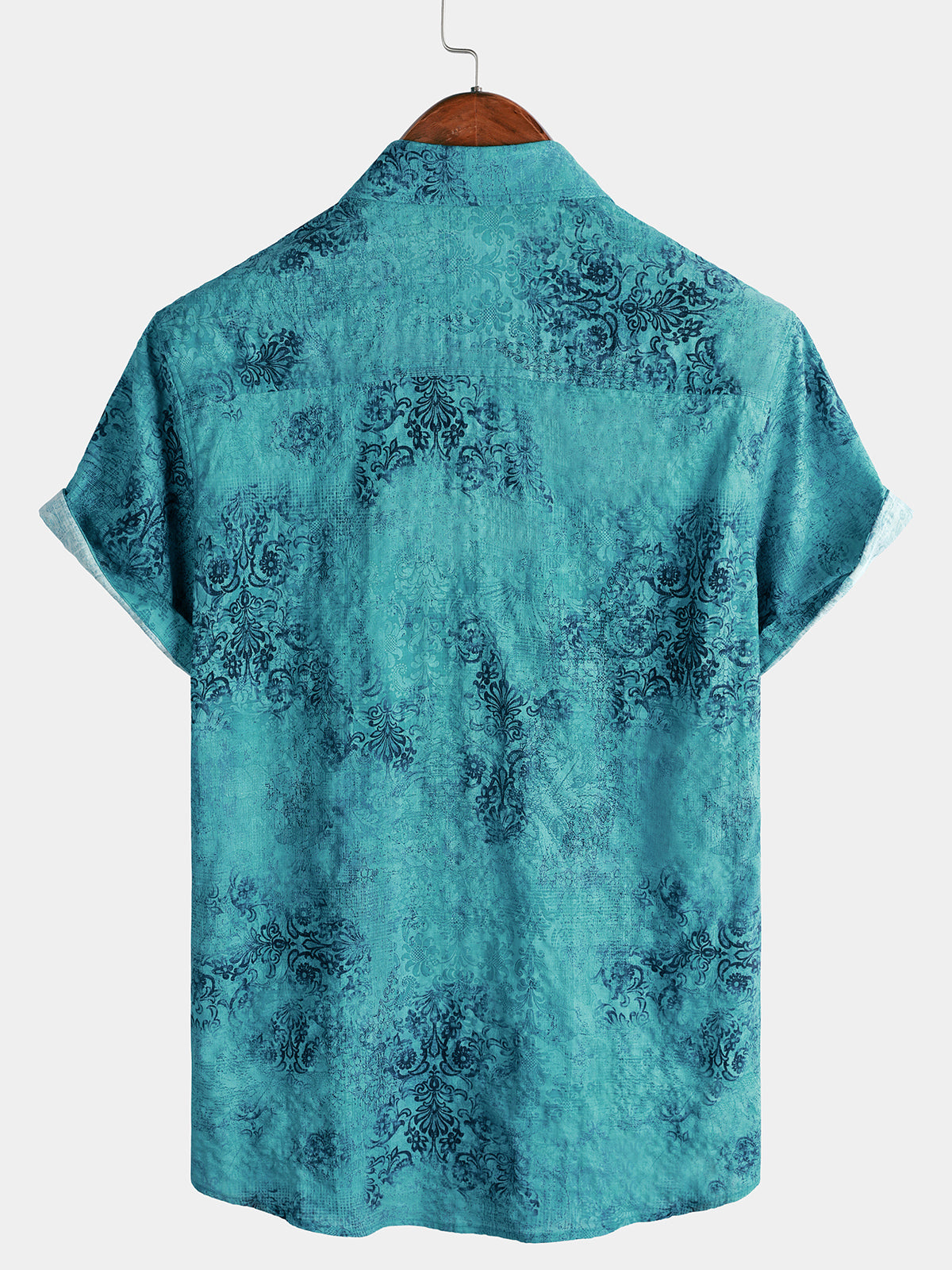 Men's Retro Floral Paisley Print Cotton Button Up Vintage Holiday Western Green Short Sleeve Shirt