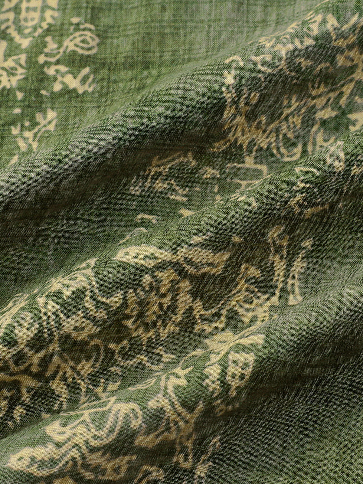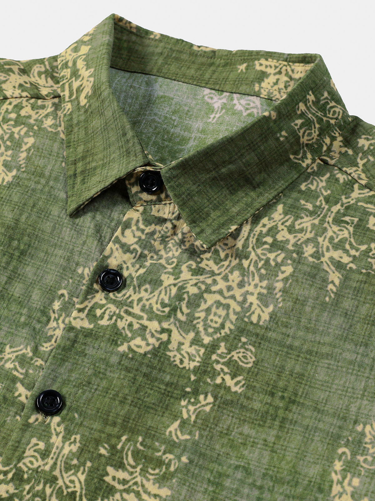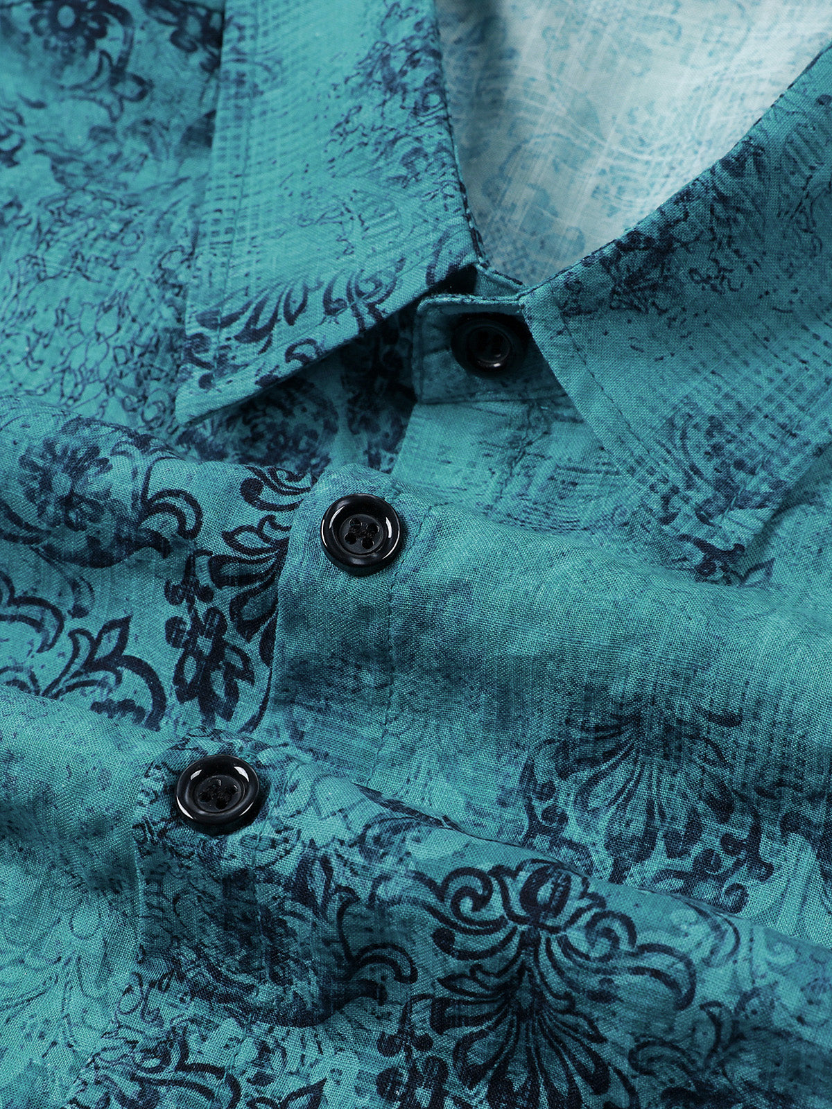 Men's Retro Floral Paisley Print Cotton Button Up Vintage Holiday Western Green Short Sleeve Shirt