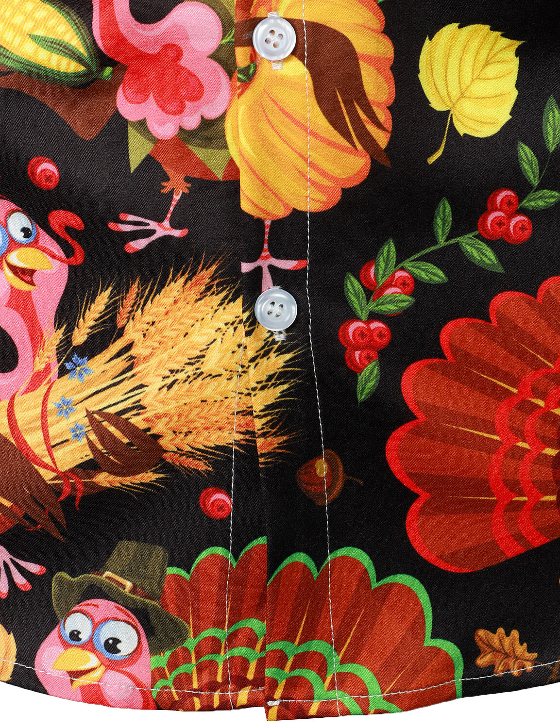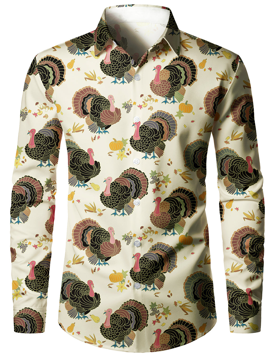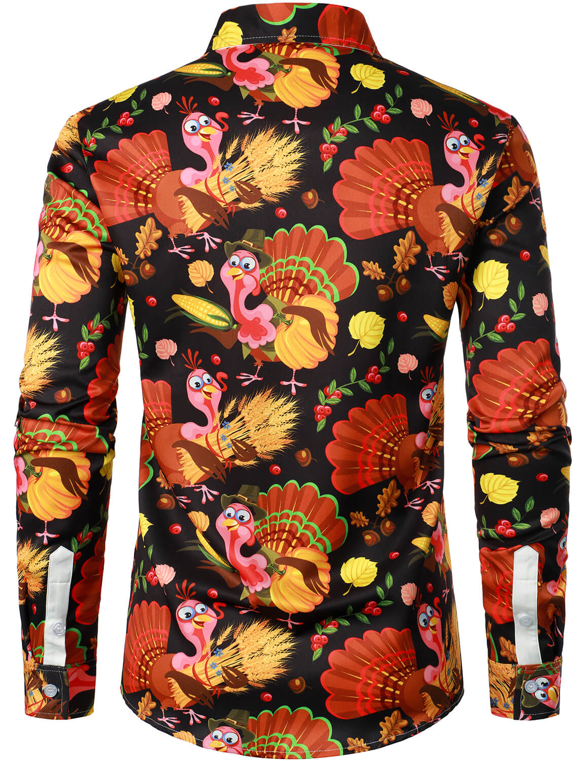 Men's Turkey Harvest Print Thanksgiving Funny Holiday Button Up Long Sleeve Shirt