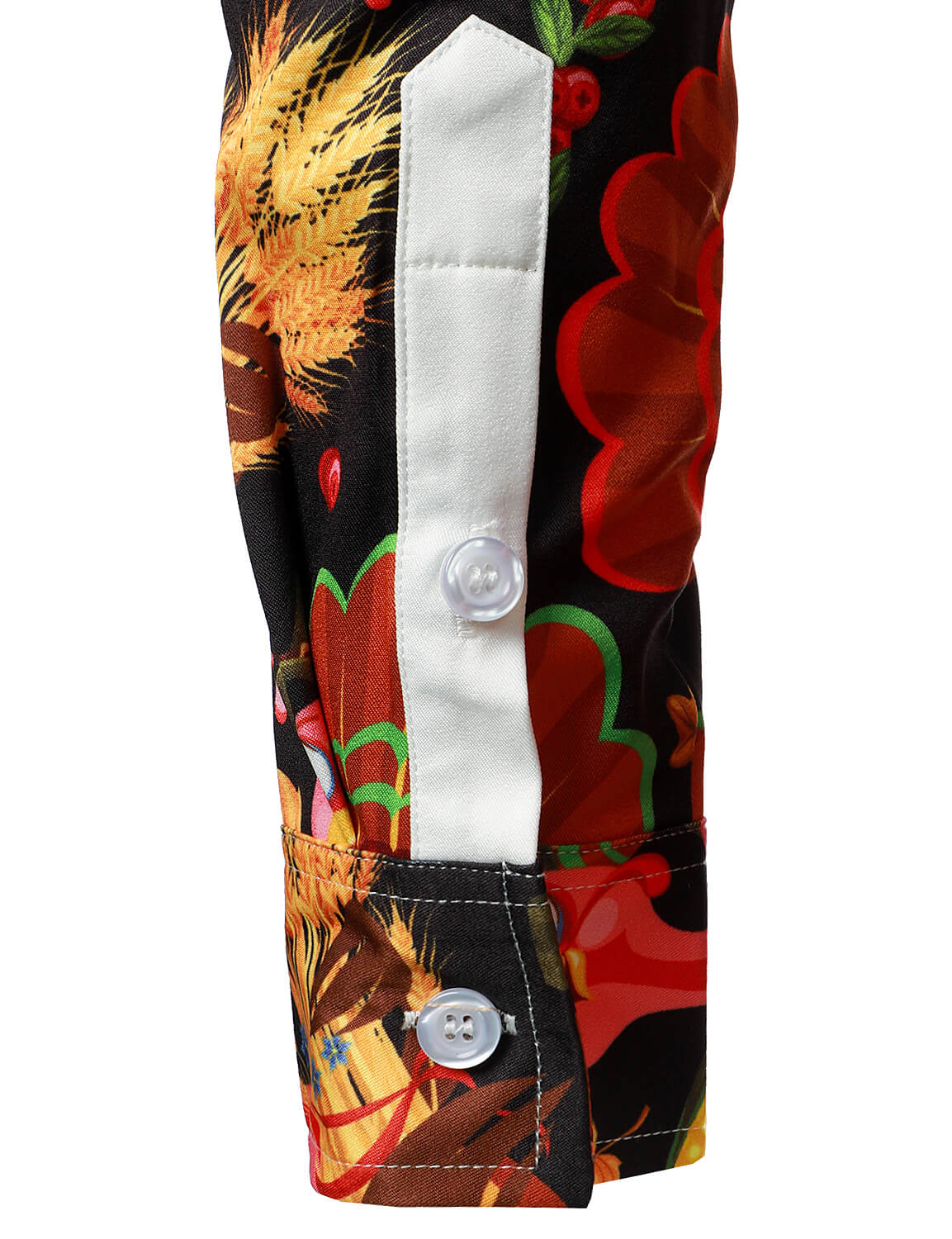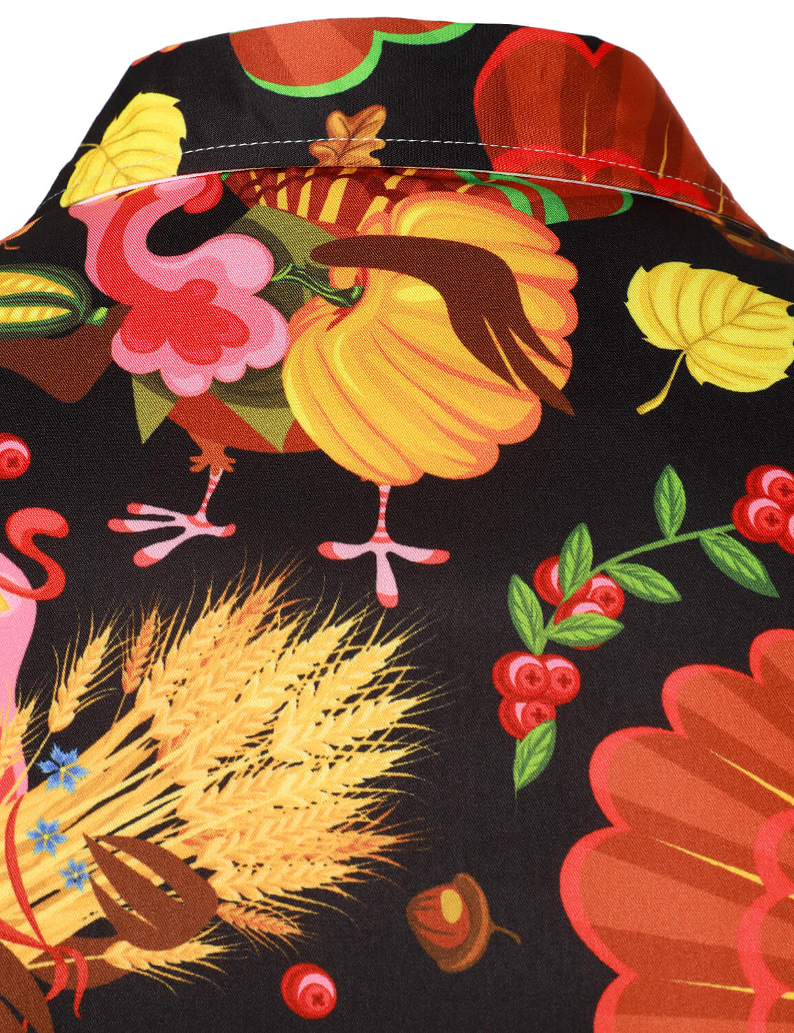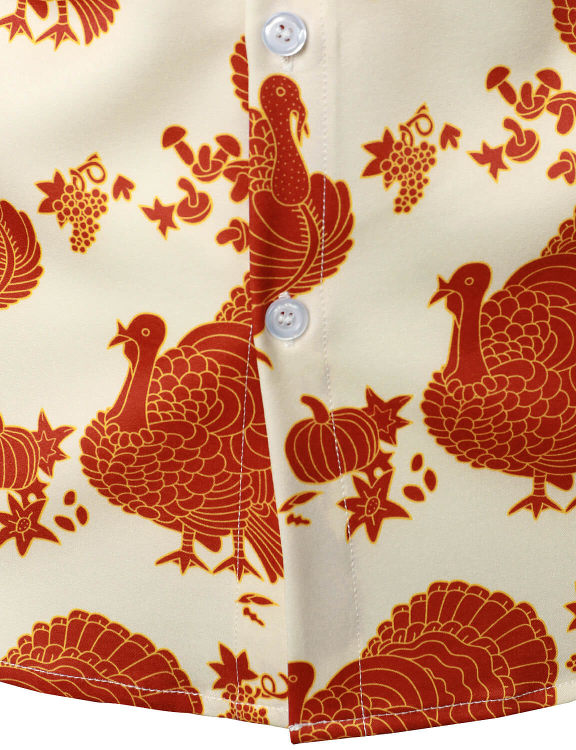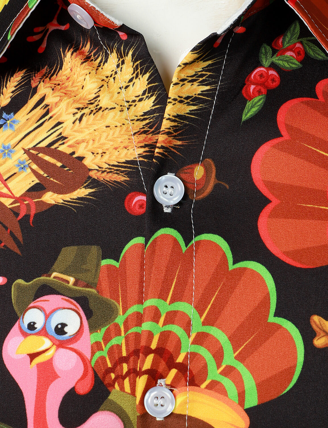Men's Turkey Harvest Print Thanksgiving Funny Holiday Button Up Long Sleeve Shirt