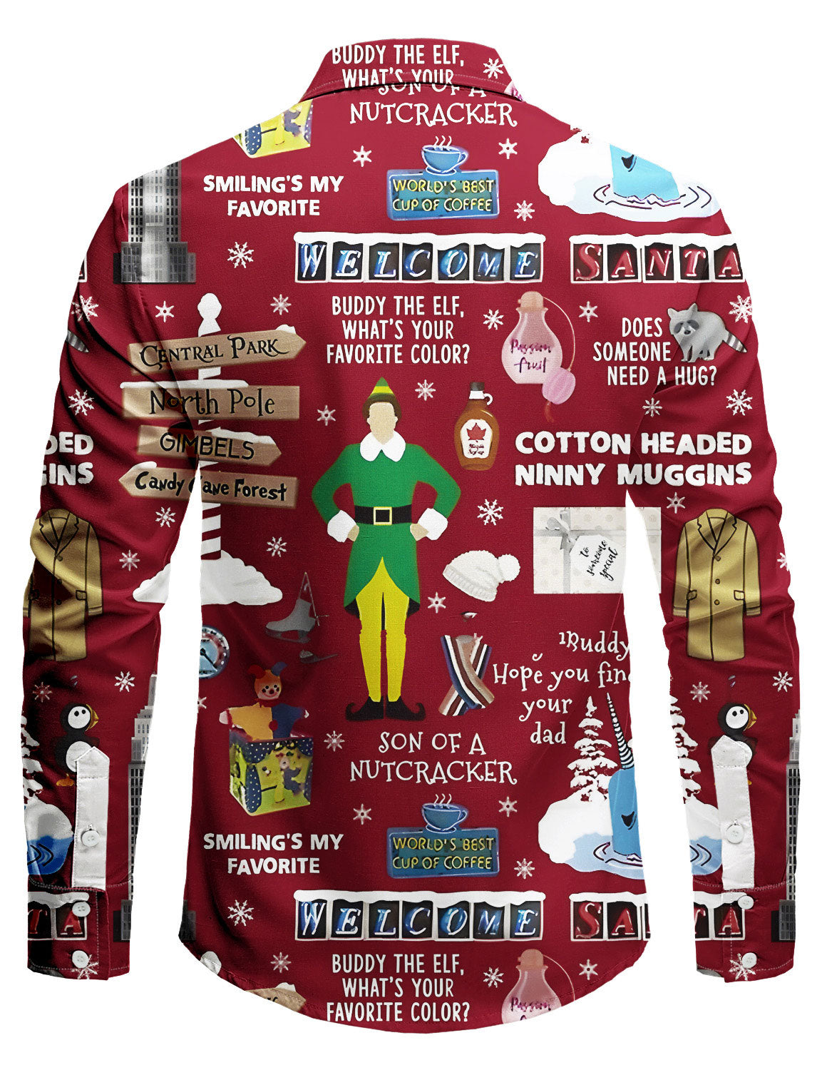 Men's Family Christmas Funny Print Red Long Sleeve Button Shirt