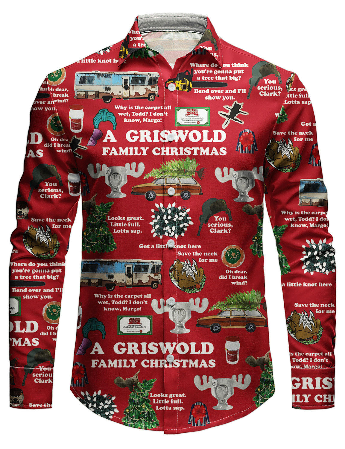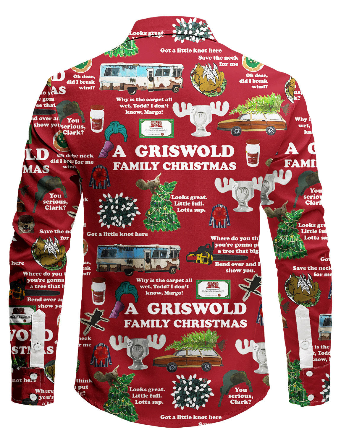 Men's Christmas Vacation Holiday Print Long Sleeve Button Shirt