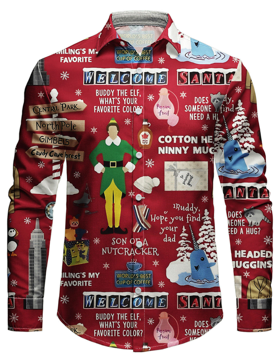 Men's Santa Claus Christmas Long Sleeve Cotton Shirt