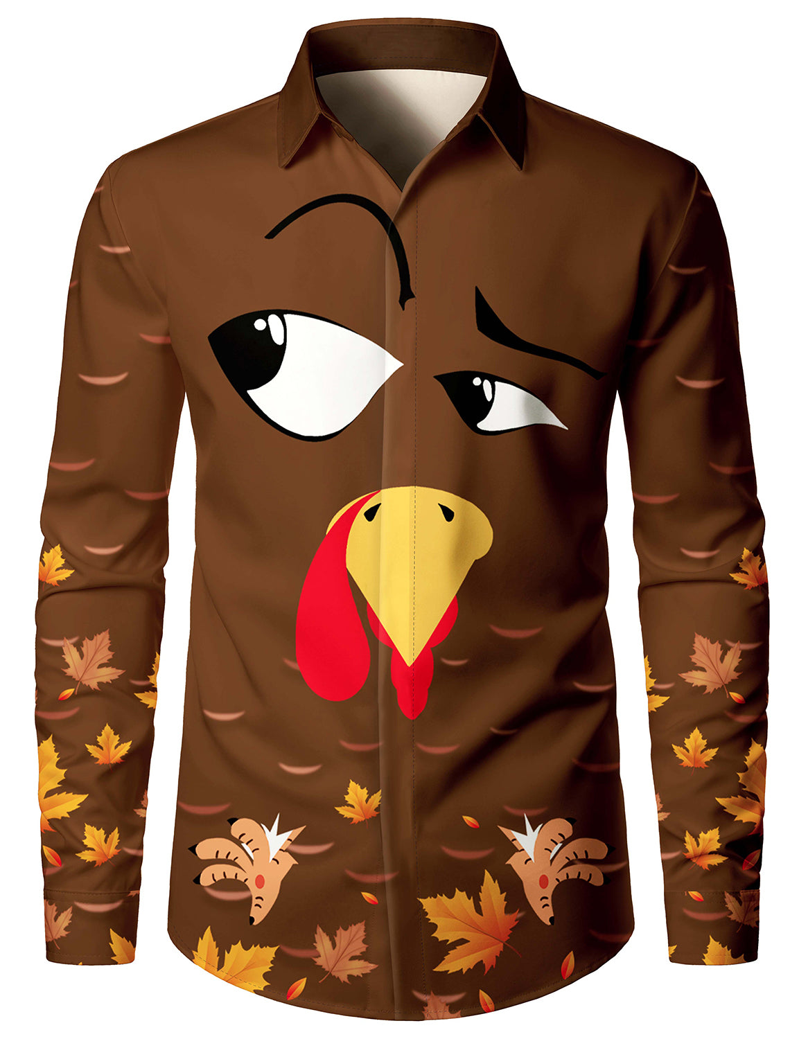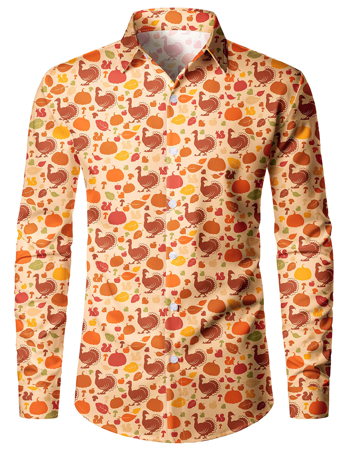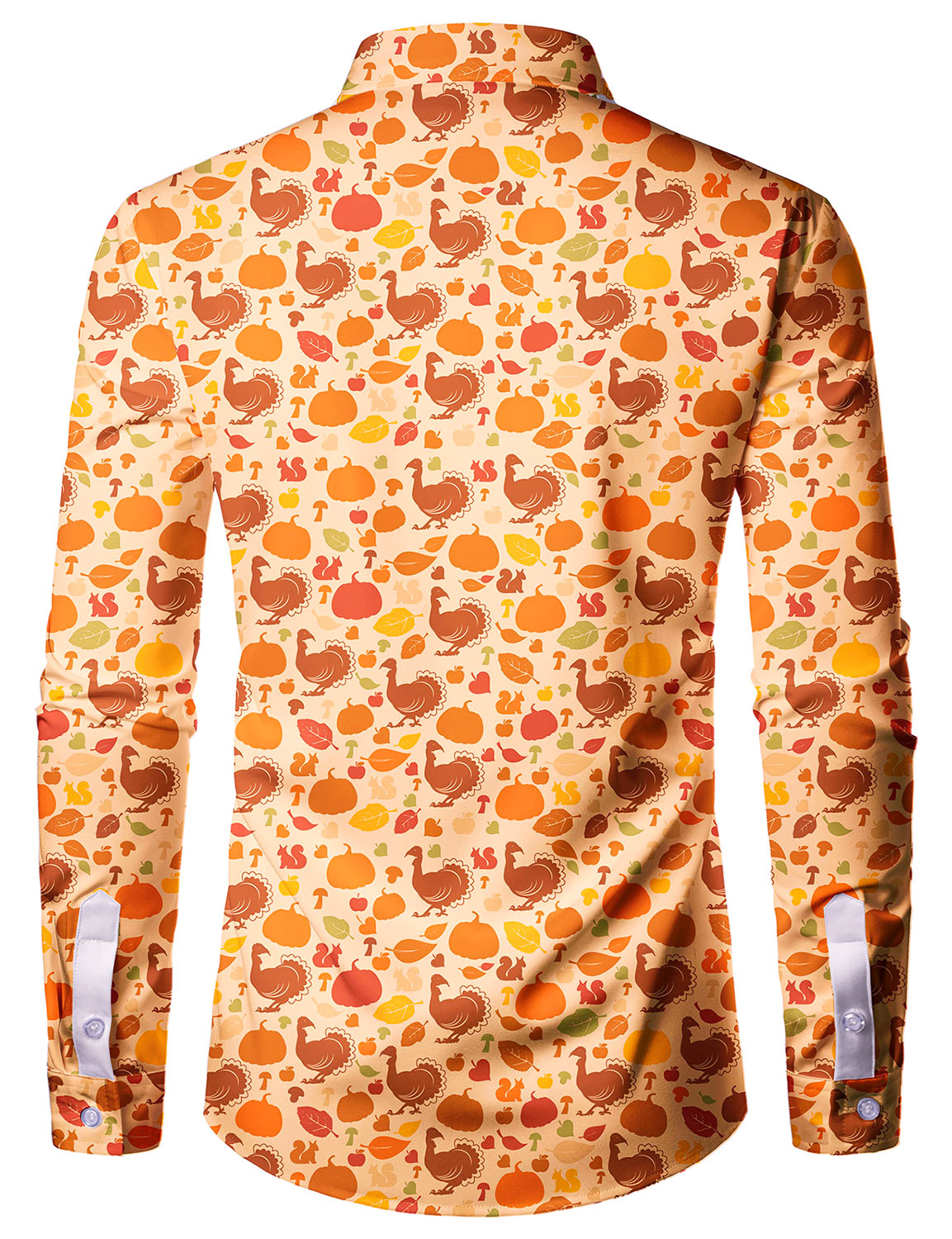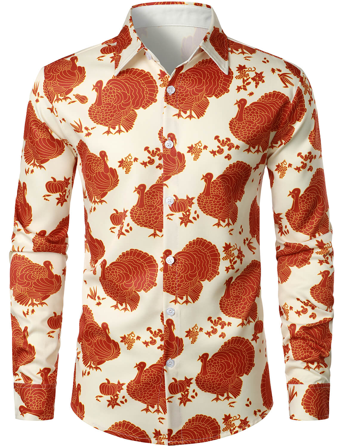 Men's Thanksgiving Turkey Day Holiday Fall Festival Gift Button Up Long Sleeve Shirt