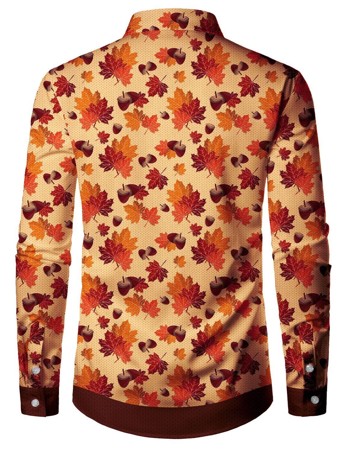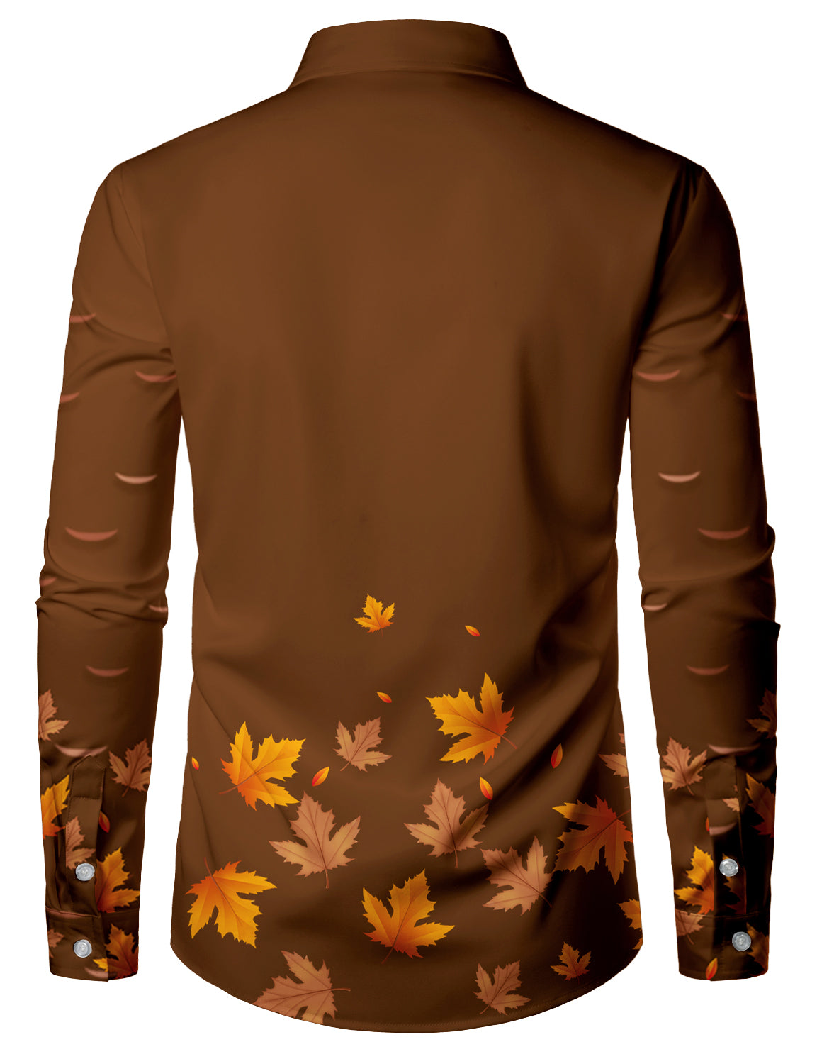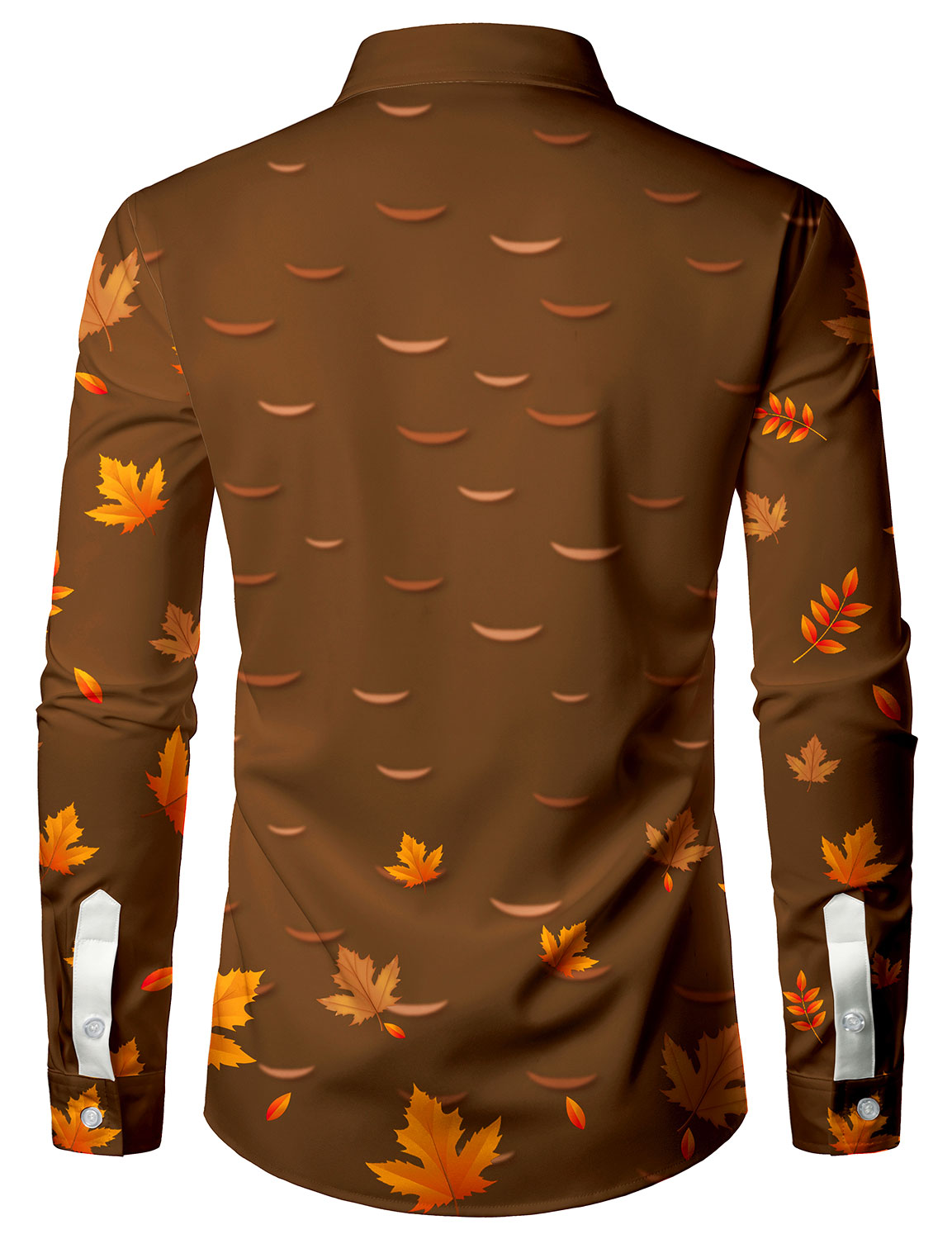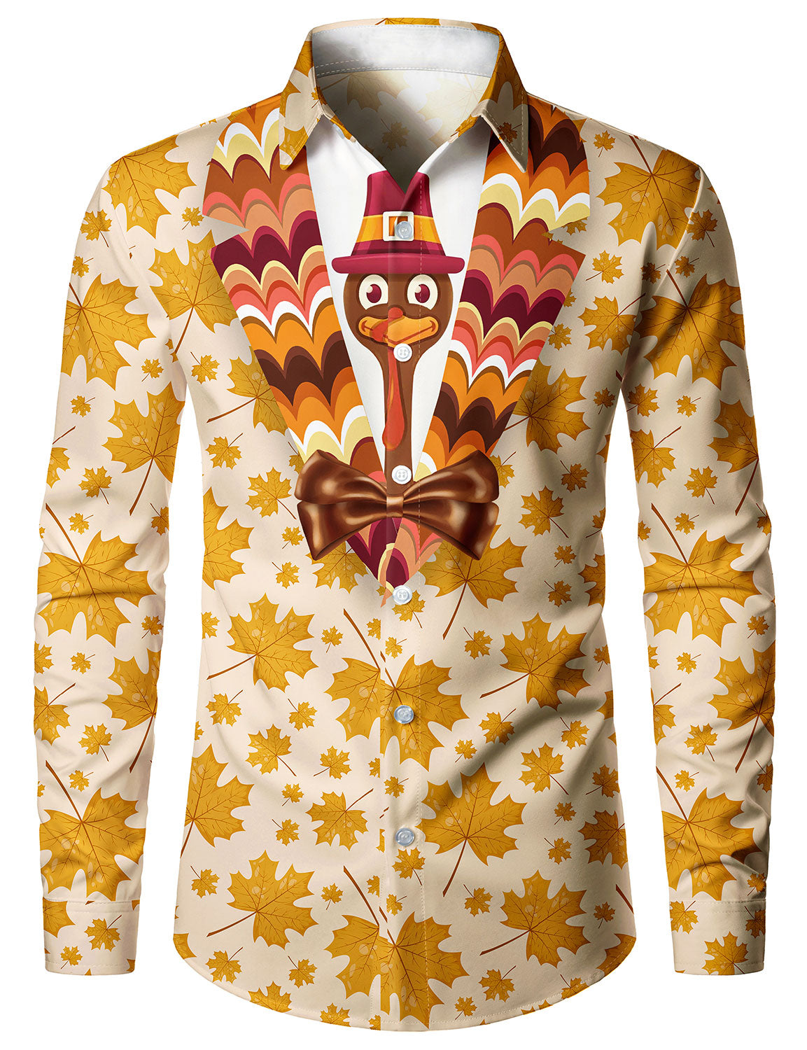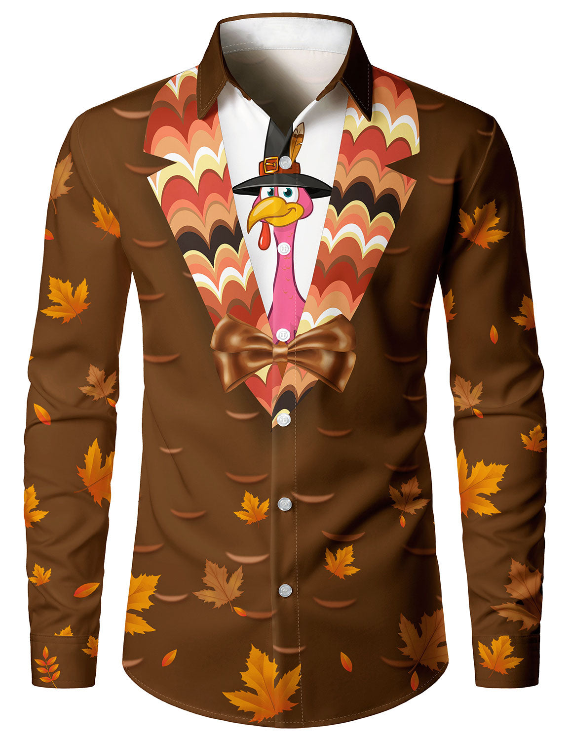 Men's Thanksgiving Turkey Day Holiday Fall Festival Gift Button Up Long Sleeve Shirt