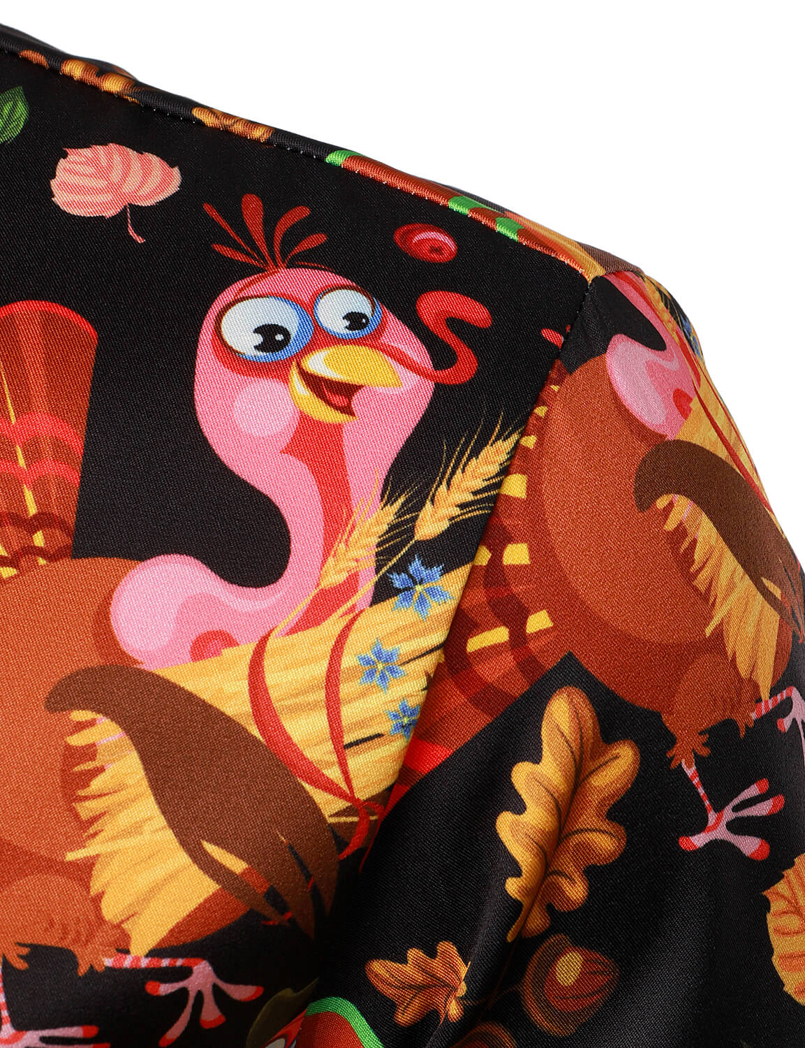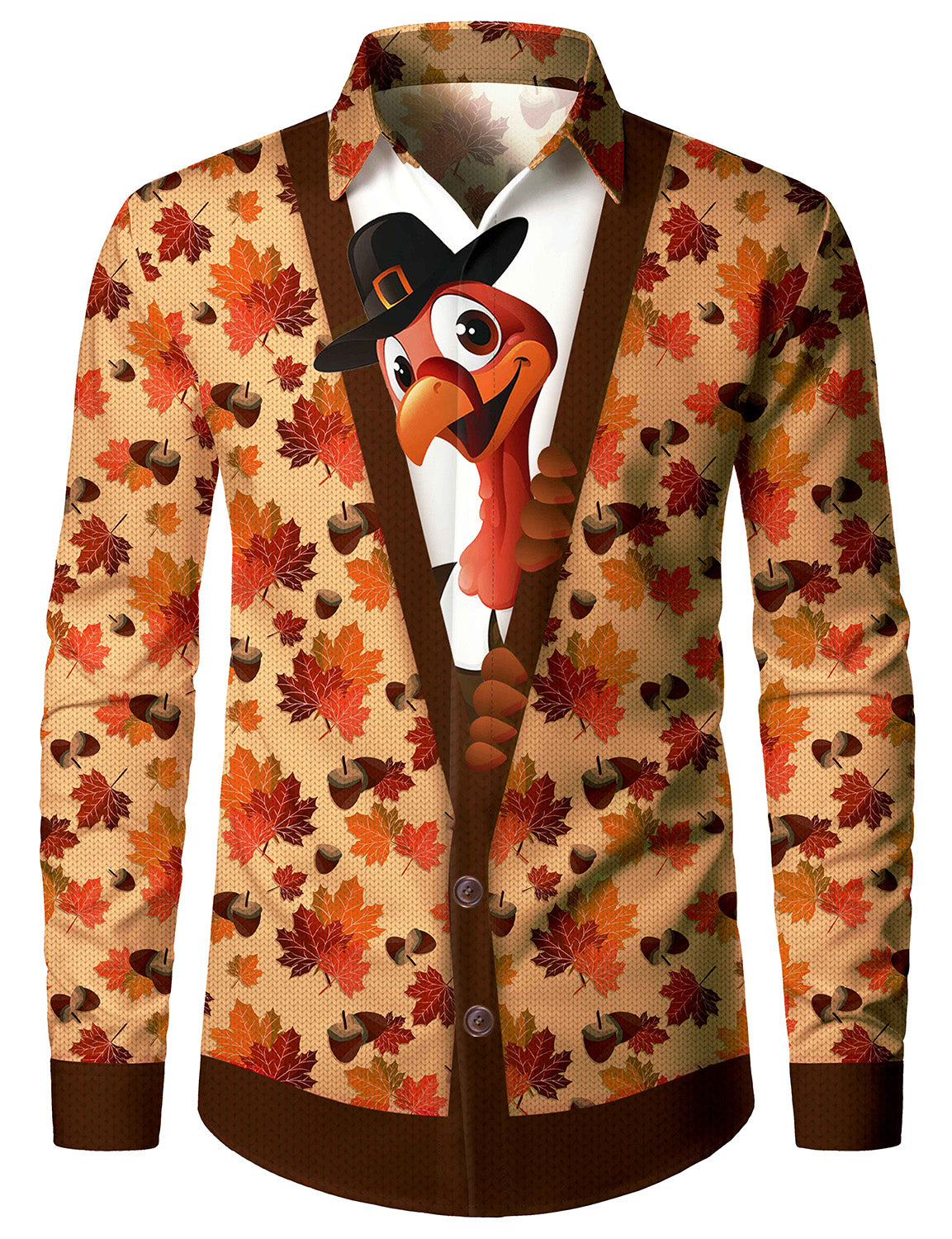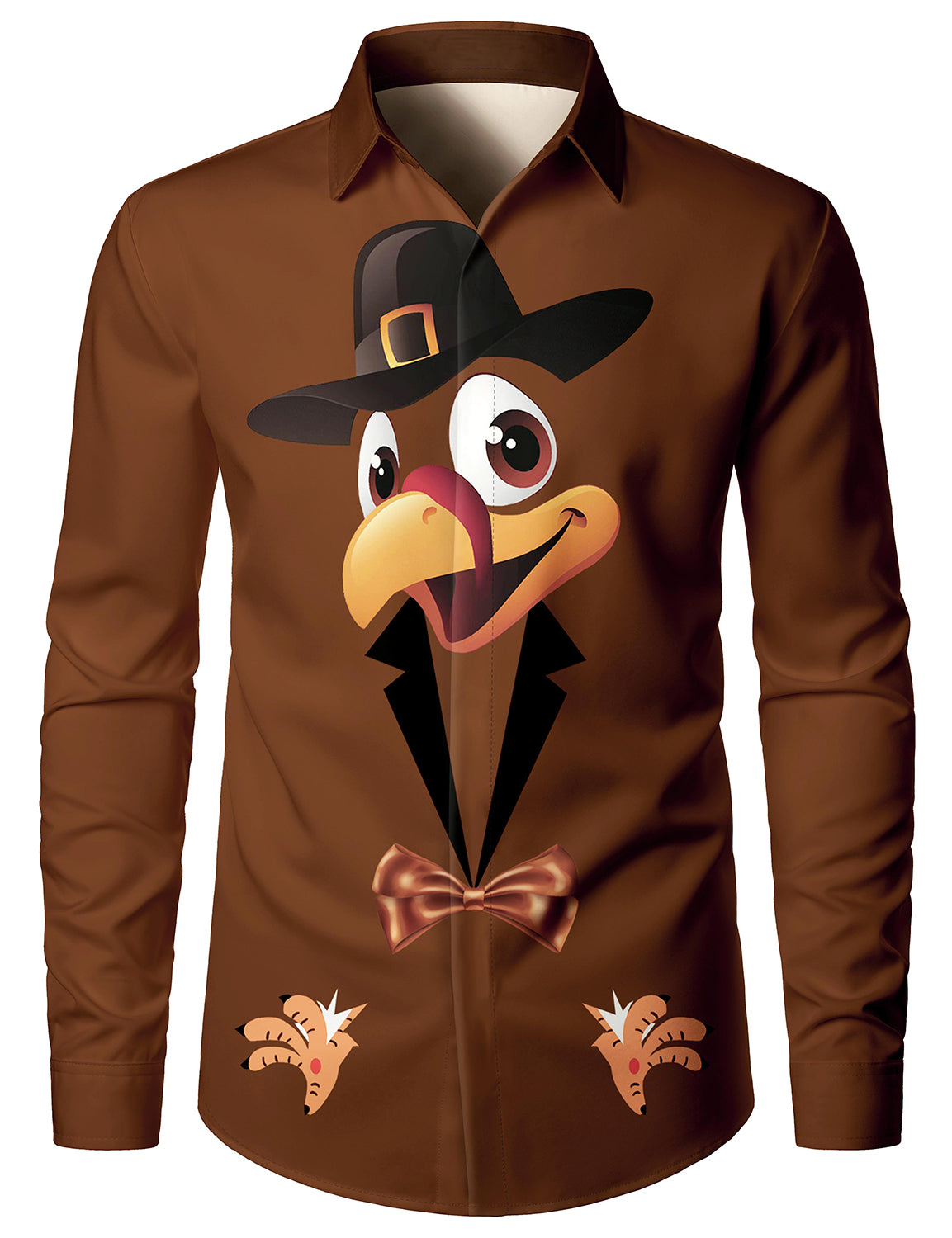 Men's Thanksgiving Funny Turkey Print Holiday Long Sleeve Shirt