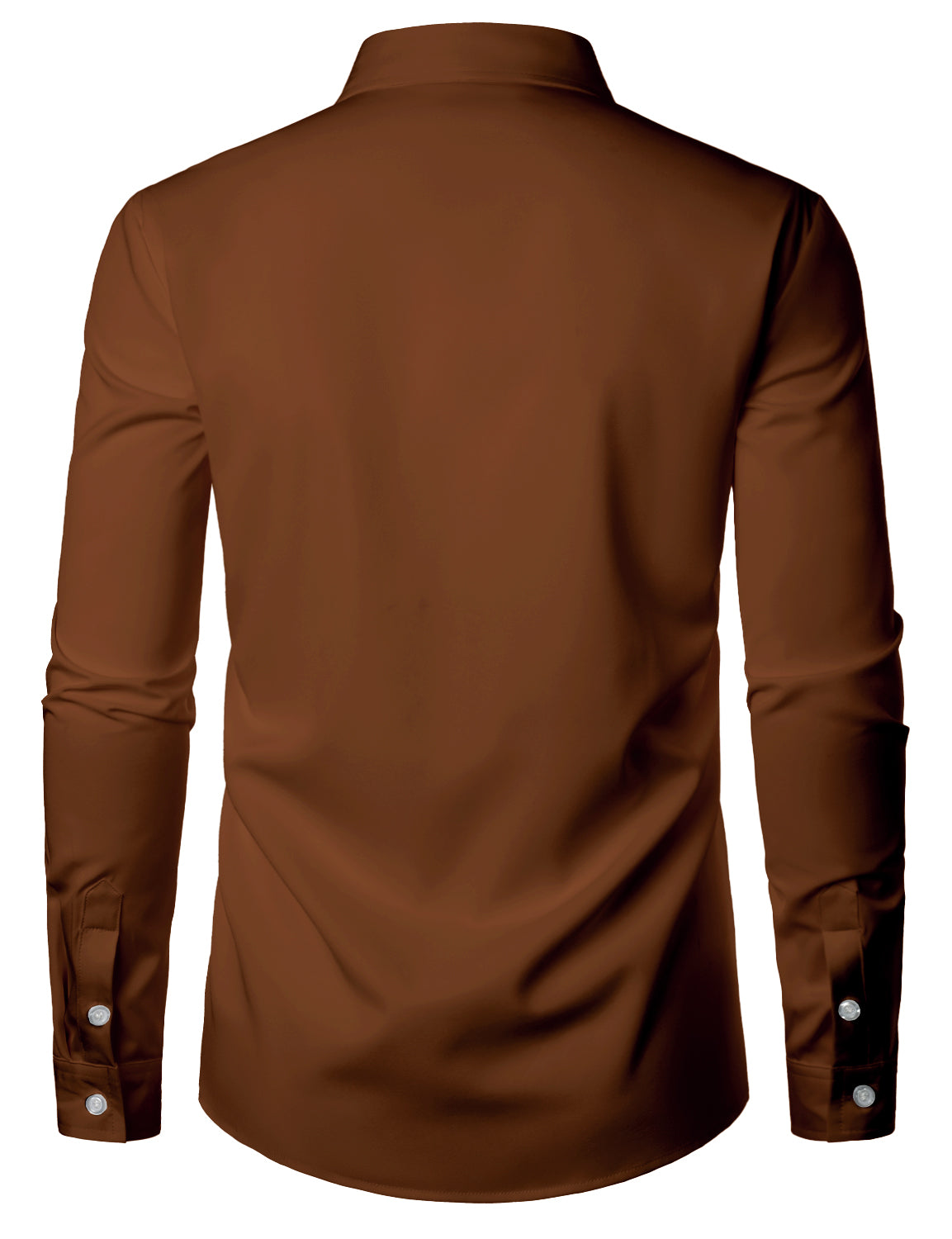 Men's Funny Holiday Vintage Christmas Print Brown Long Sleeve Shirt