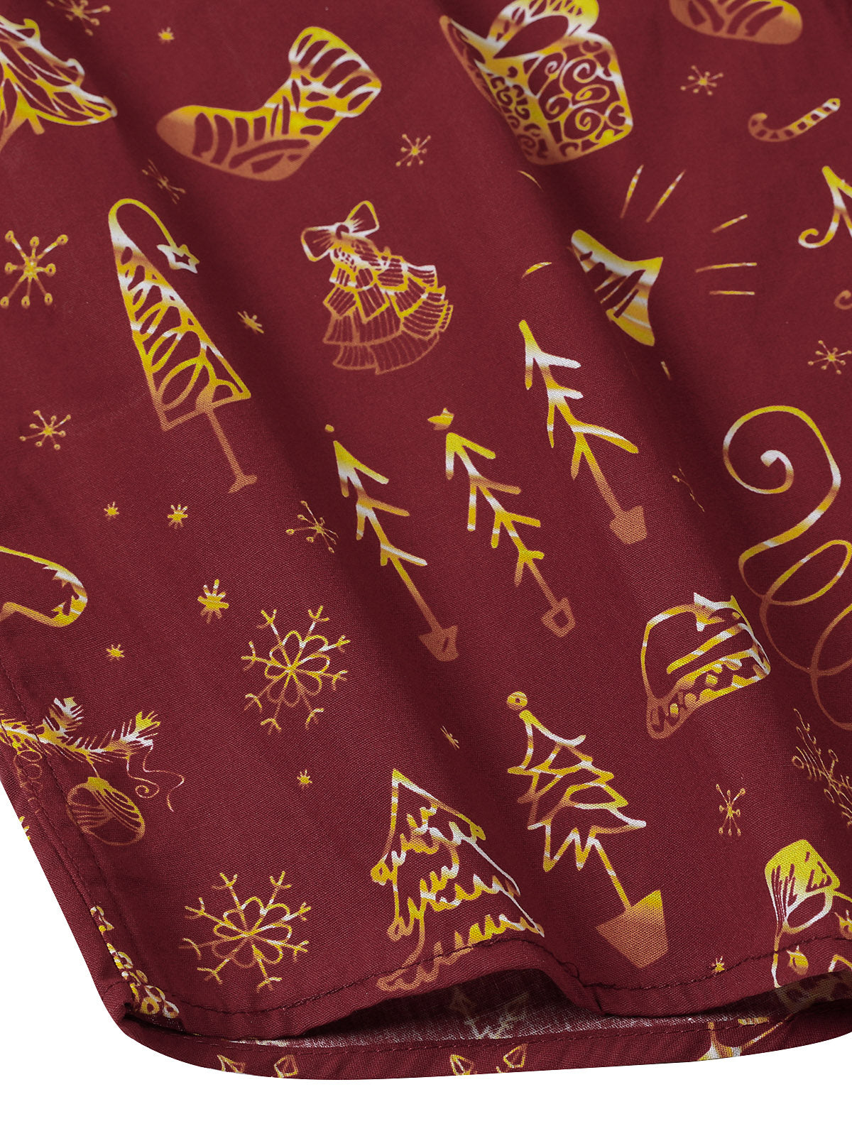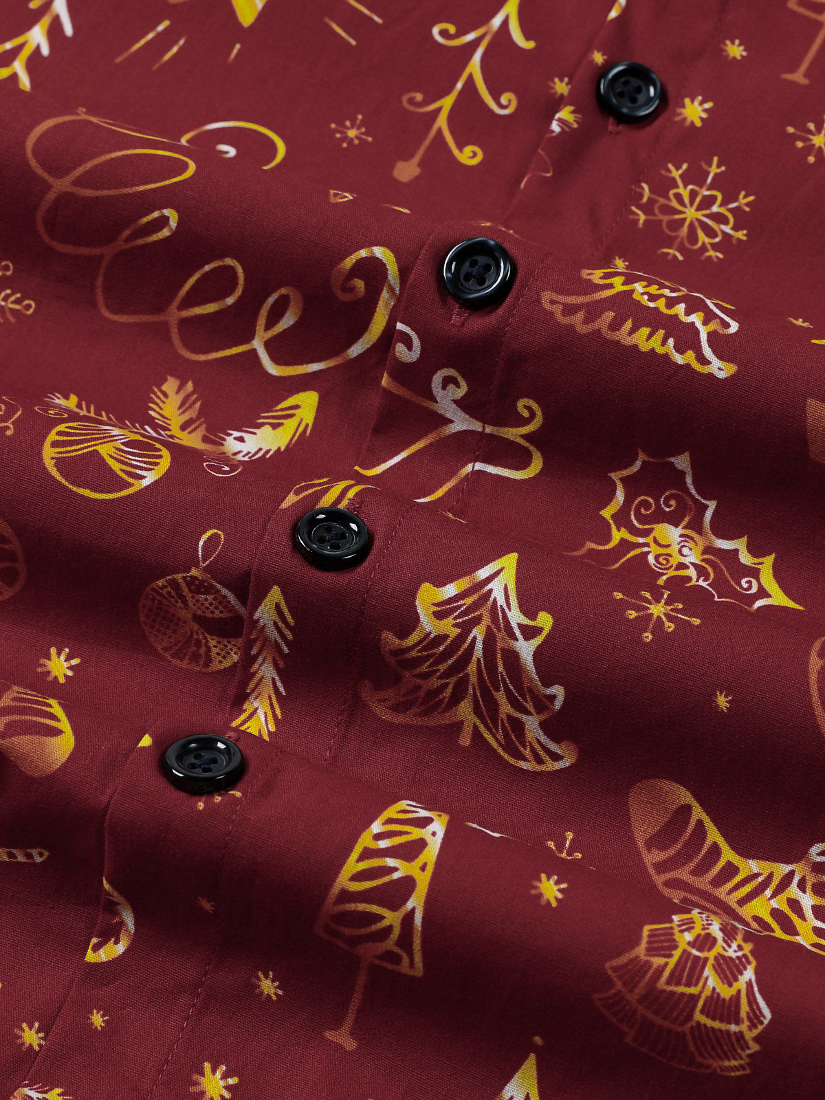 Men's Christmas Long Sleeve Xmas Party Holiday Cotton Shirt Red