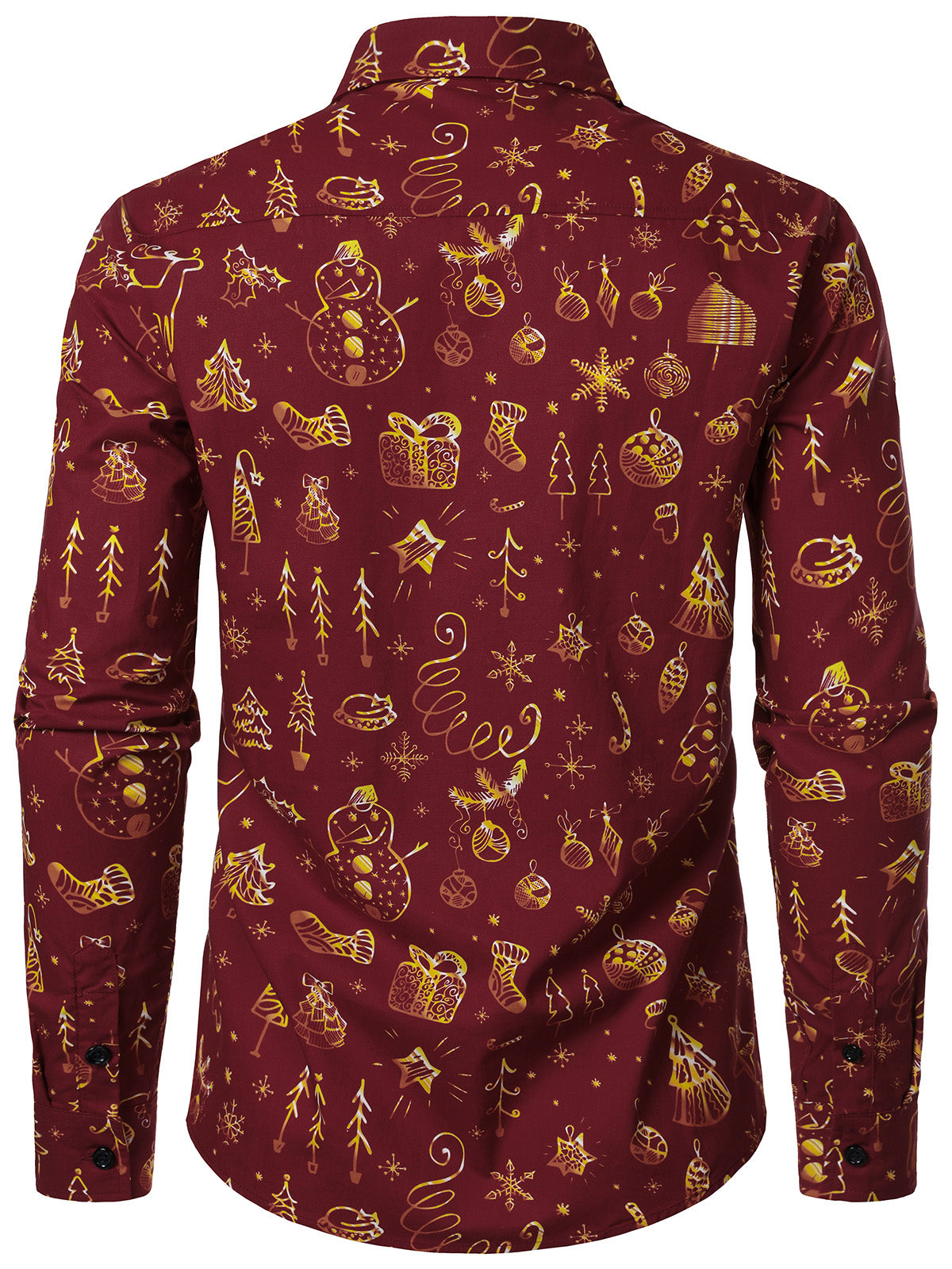 Men's Christmas Print Holiday Regular Fit Long Sleeve Shirt
