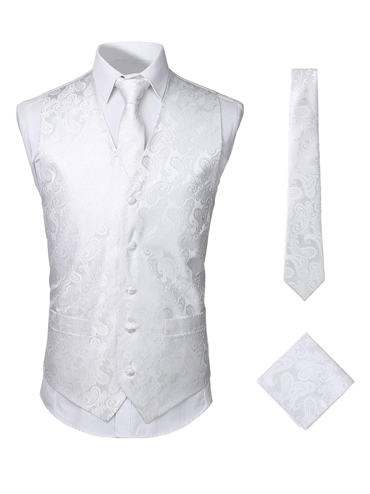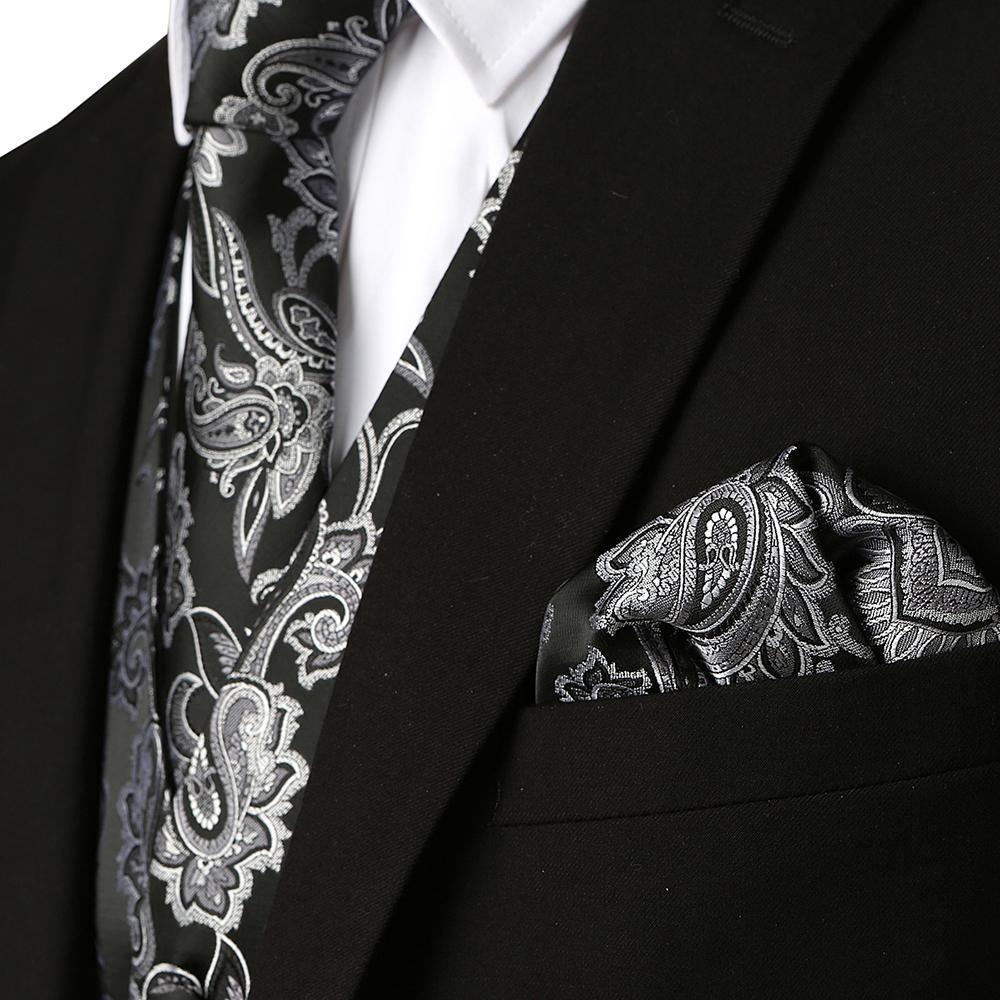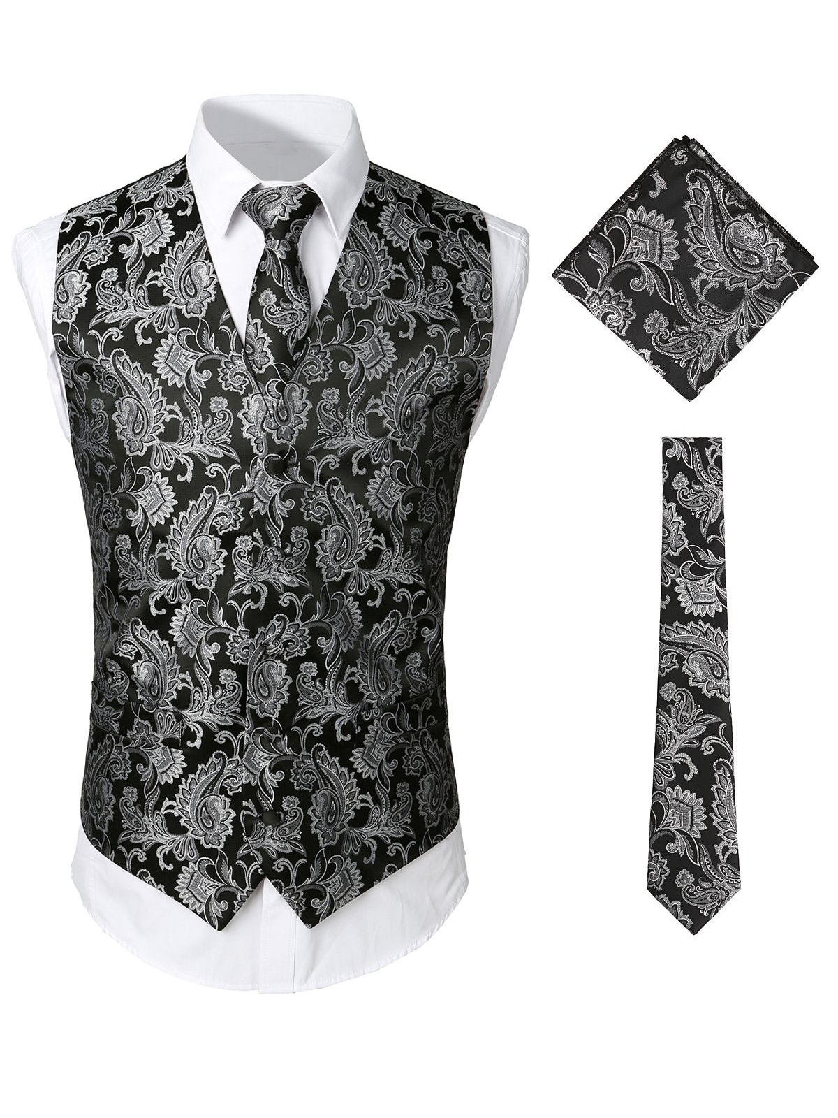 Men's Paisley Vest Necktie Square Pocket Handkerchief Set for Suit or Tuxedo
