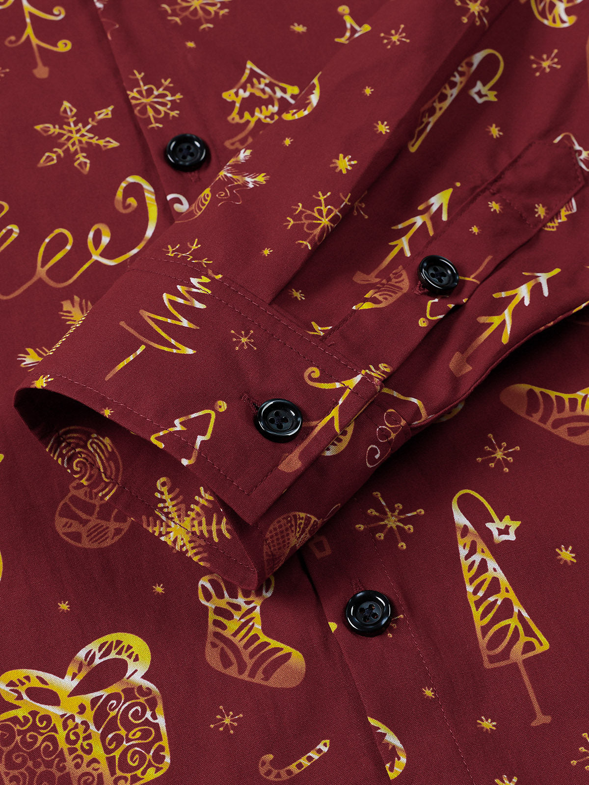 Men's Christmas Long Sleeve Xmas Party Holiday Cotton Shirt Red