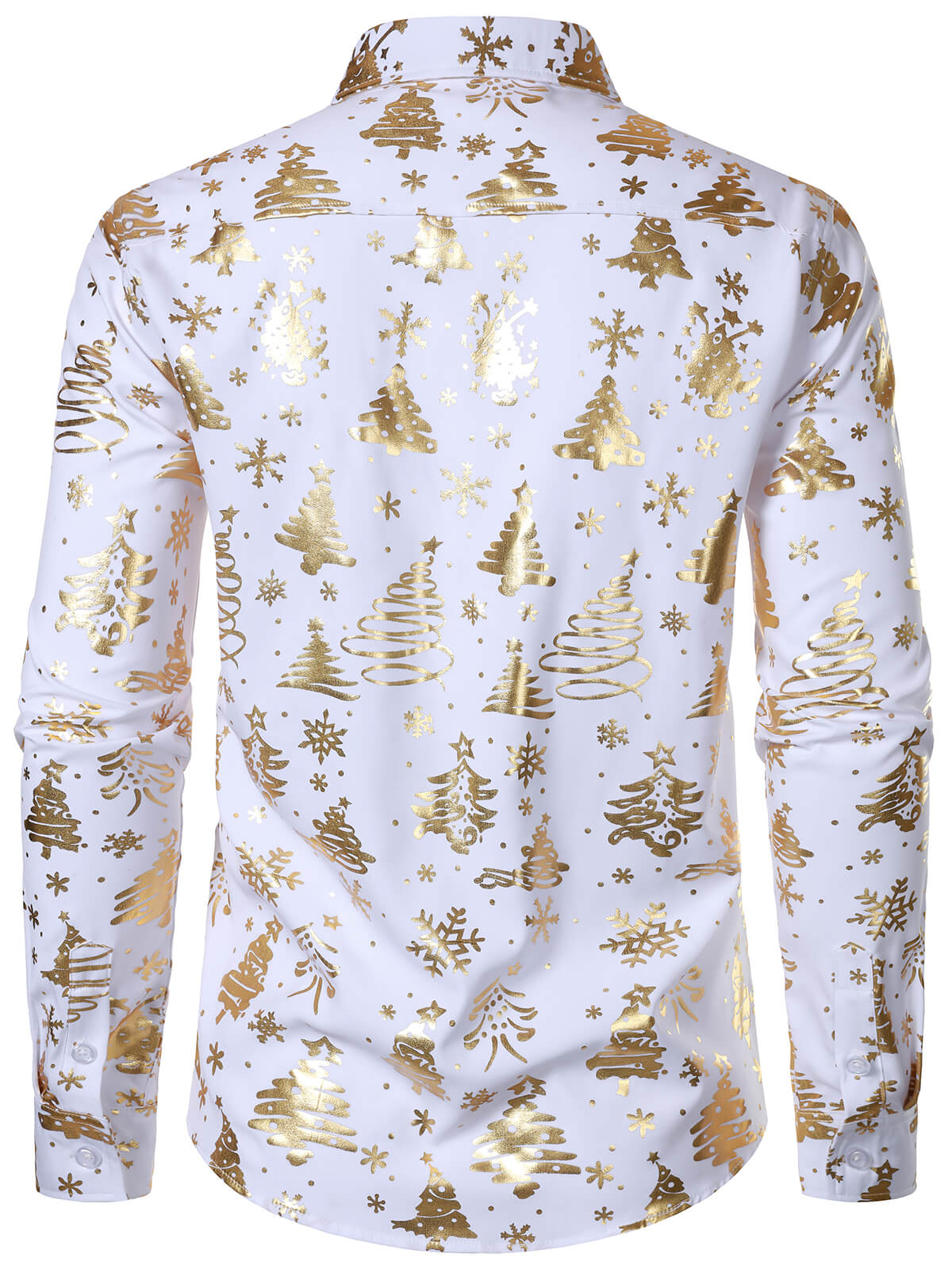 Men's Christmas Print Regular Fit White Long Sleeve Shirt