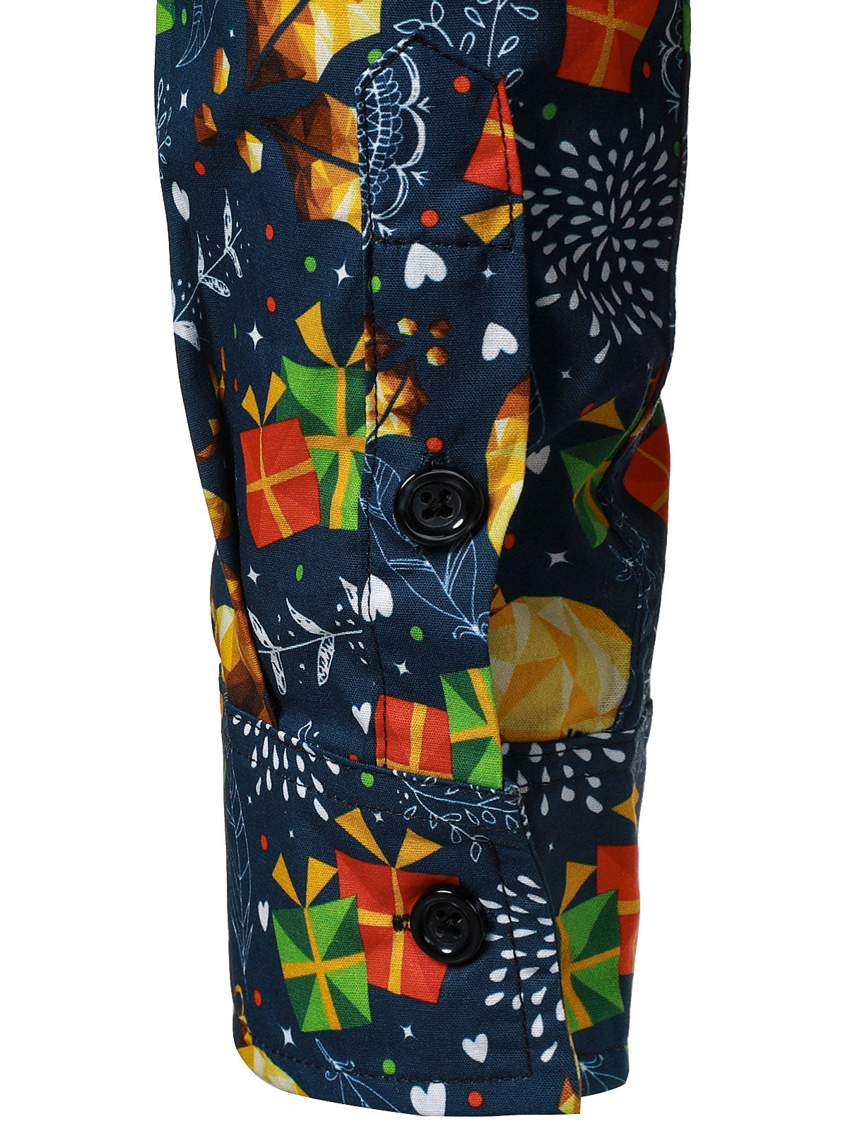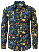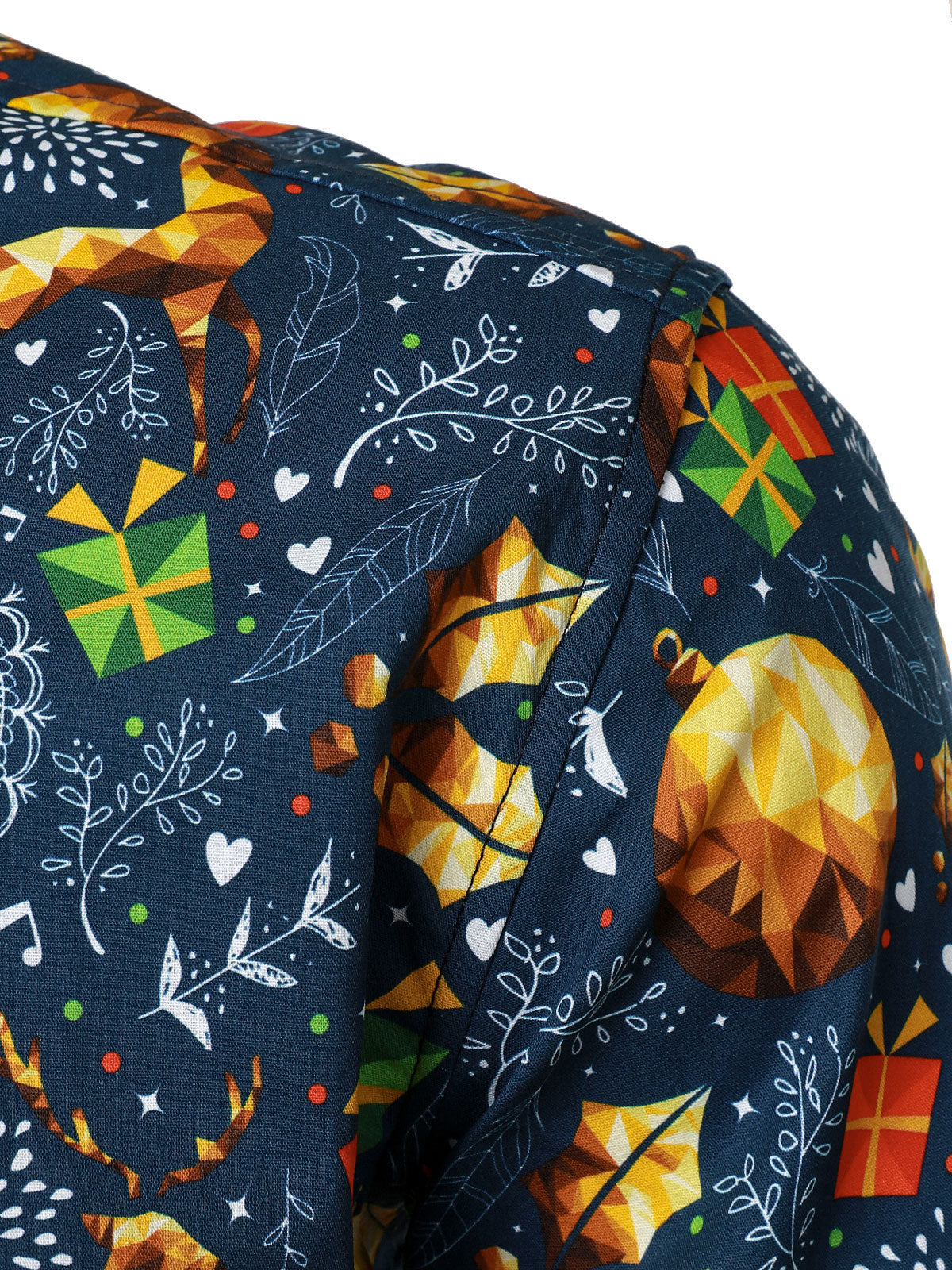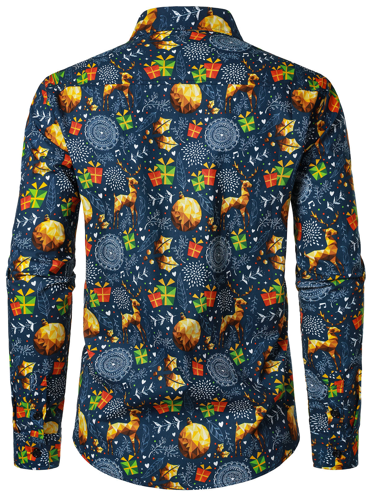Men's Christmas Reindeer Blue Festive Print Long Sleeve Shirt