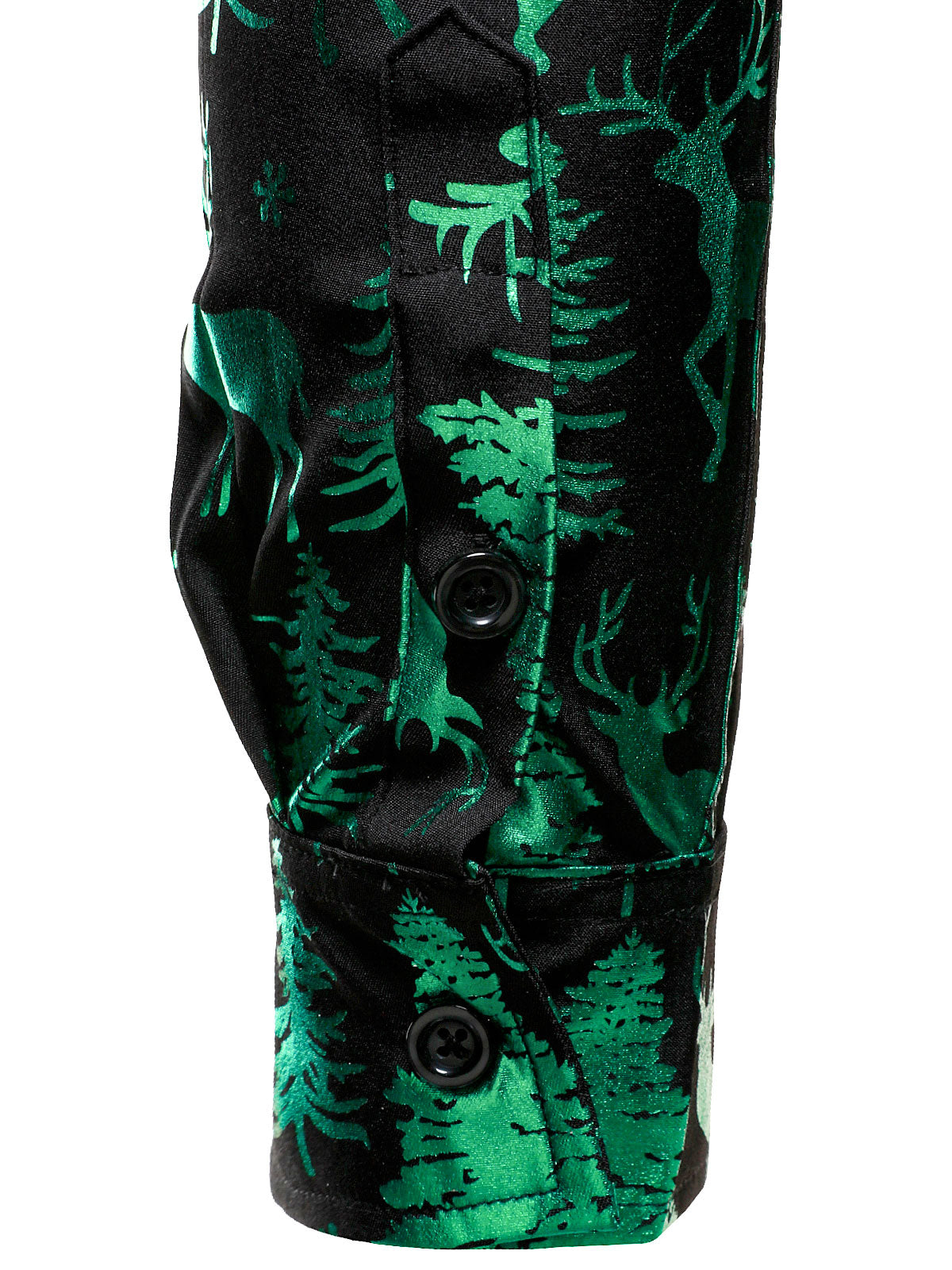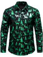Men's Christmas Reindeer Festive Print Black Long Sleeve Shirt