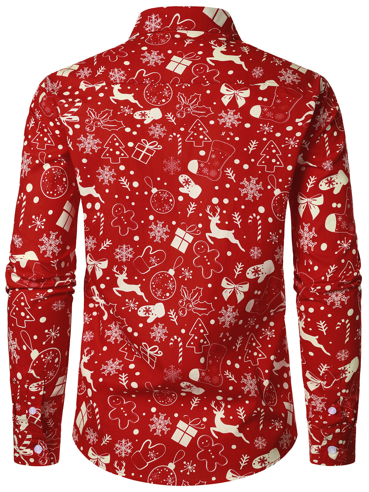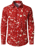 Men's Christmas Reindeer Holiday Red Long Sleeve Shirt