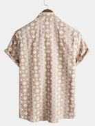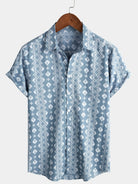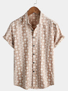 Men's Cotton Retro Button Up 70s Striped Vintage Short Sleeve Shirt