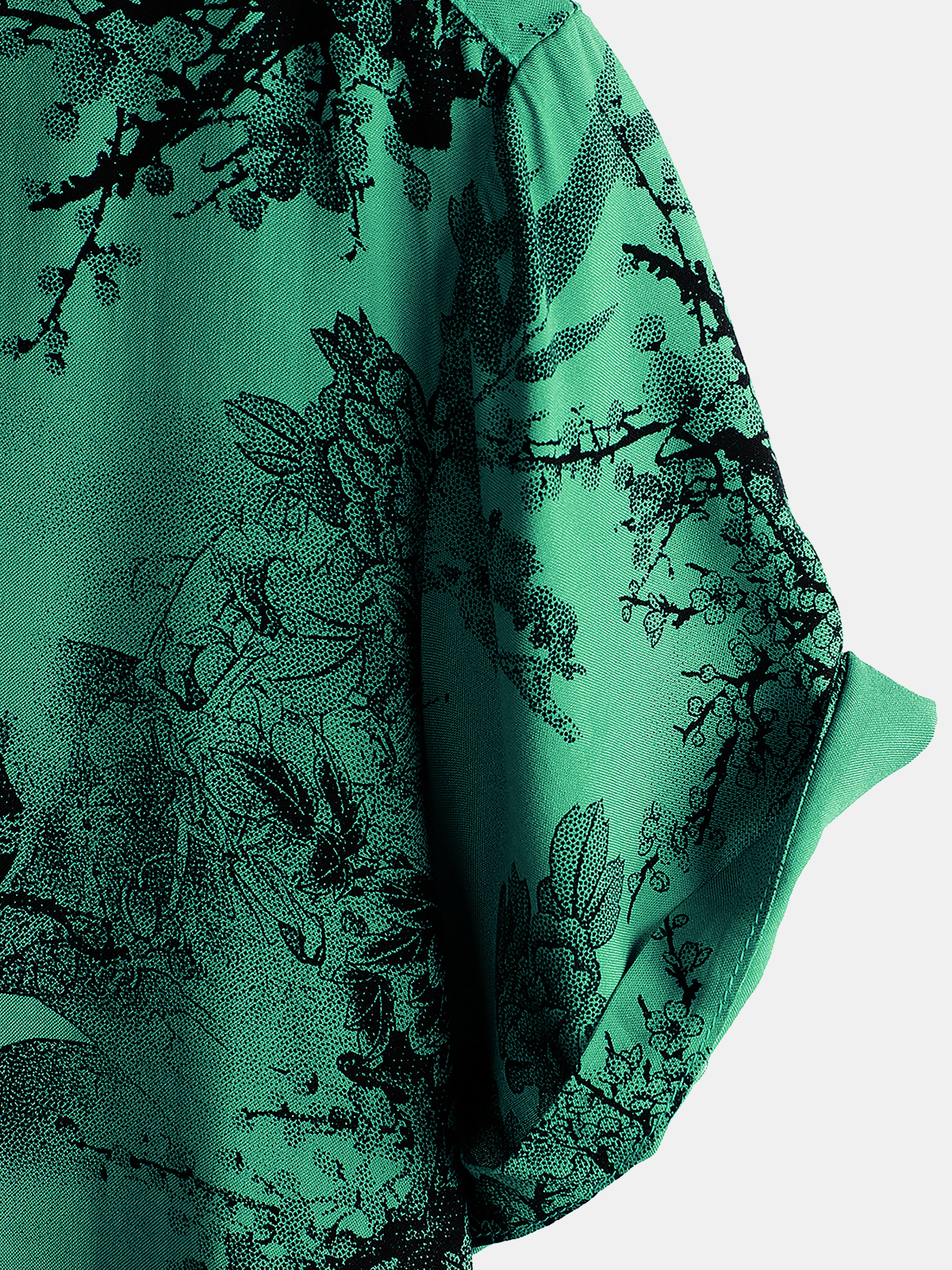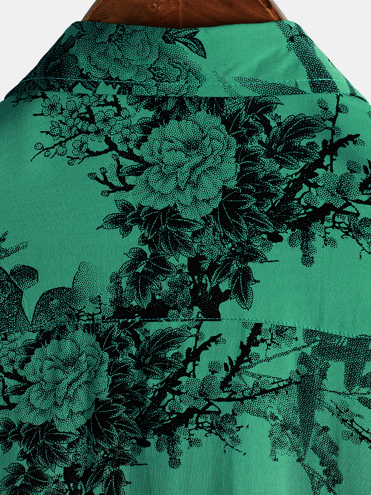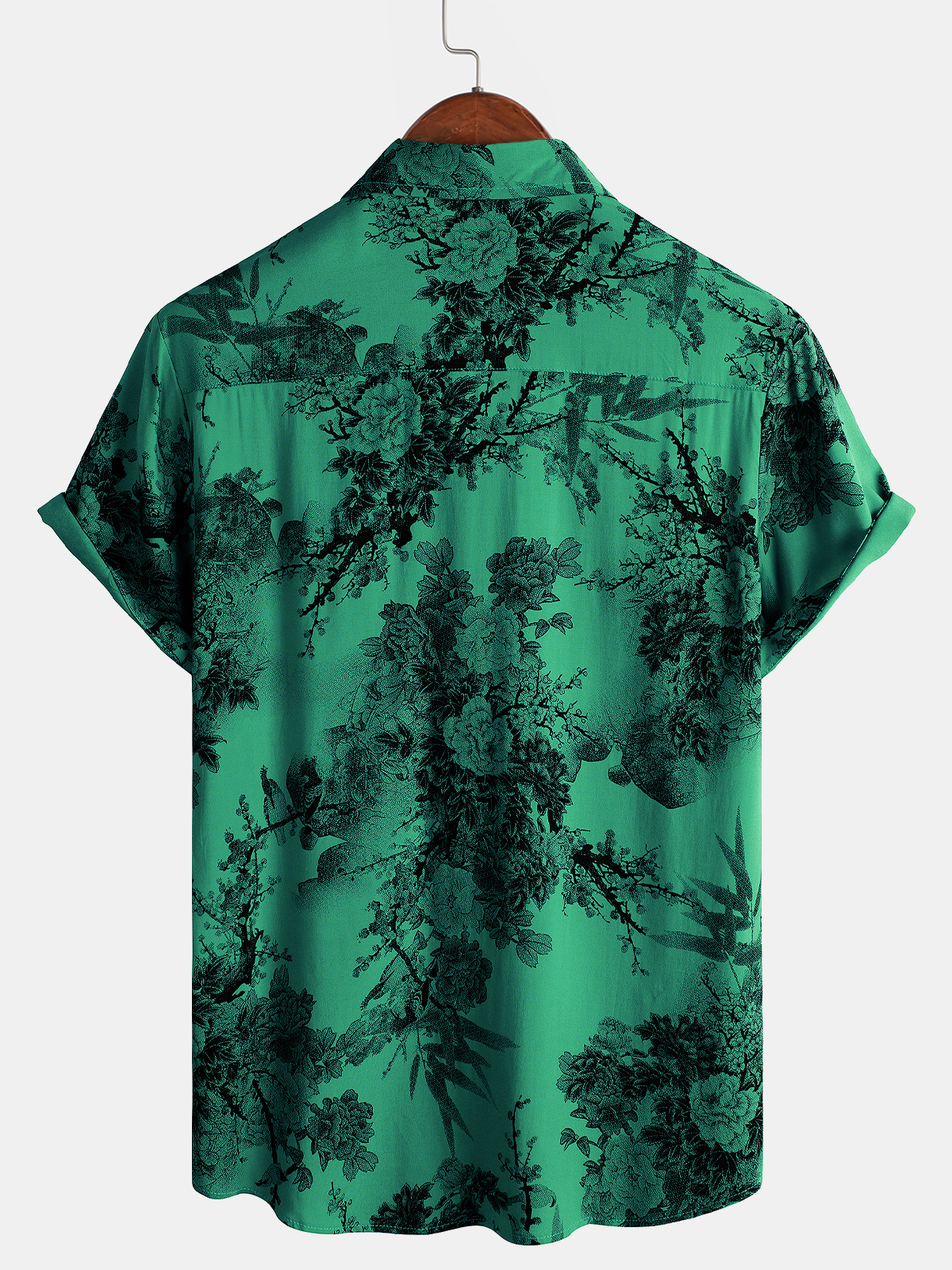 Men's Floral Vintage Summer Hawaiian Rayon Holiday Button Up Short Sleeve Shirt