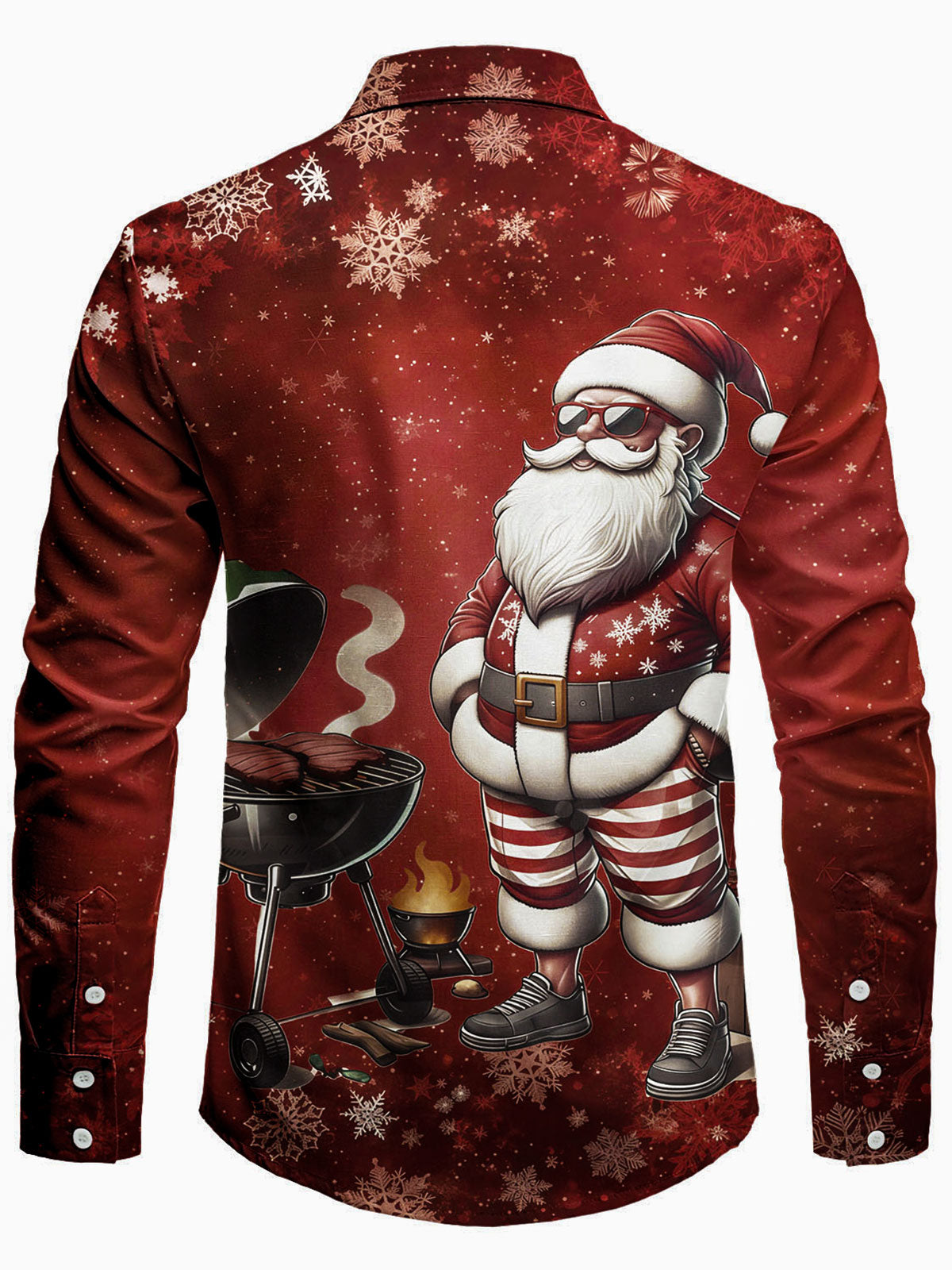 Men's Funny Santa BBQ Print Long Sleeve Shirt