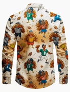 Men's Funny Turkey Print Thanksgiving Holiday Button Up Beige Long Sleeve Shirt