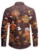 Men's Funny Turkey Print Thanksgiving Holiday Button Up Brown Long Sleeve Shirt