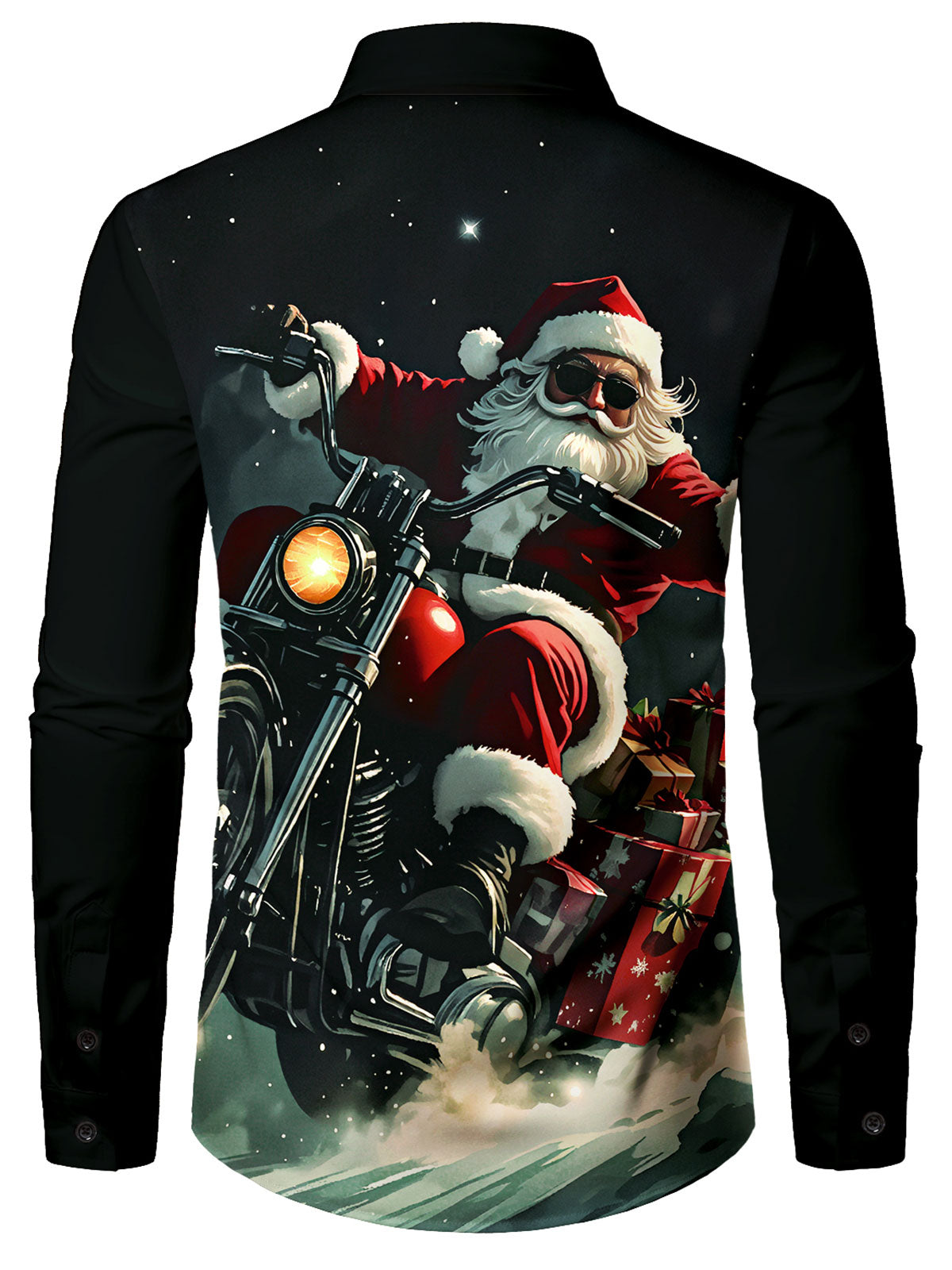Men's Motorcycle Santa Christmas Long Sleeve Shirt
