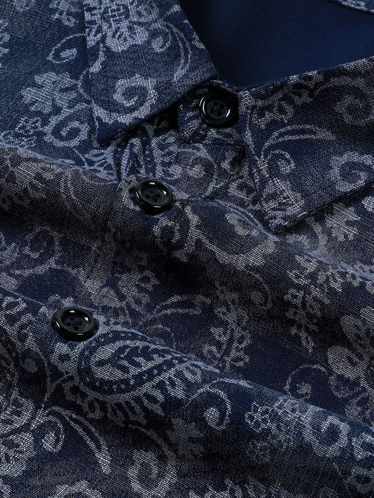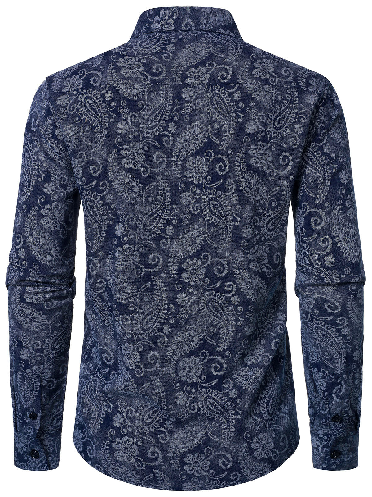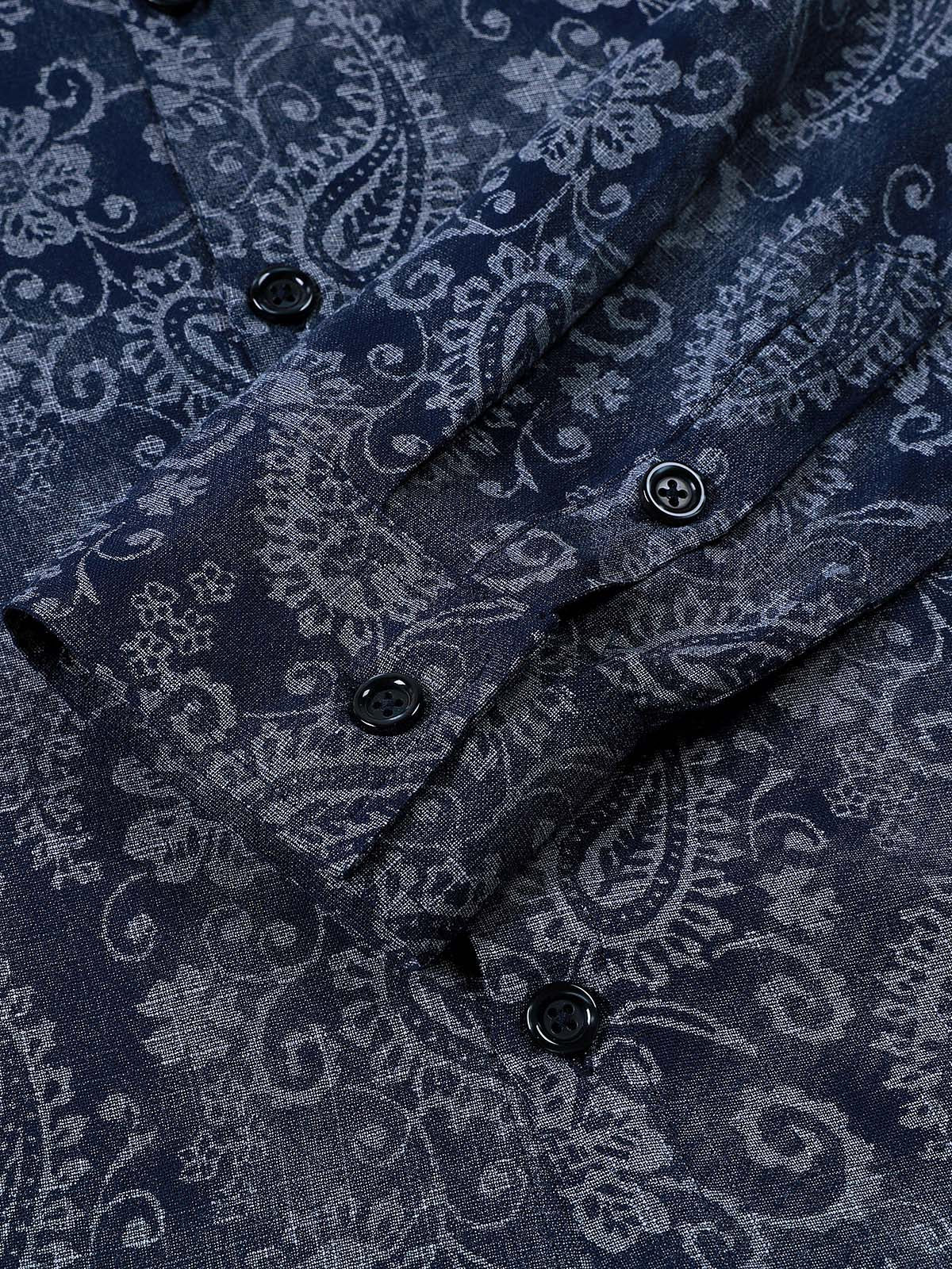 Men's Paisley Floral Blue Long Sleeve Shirt