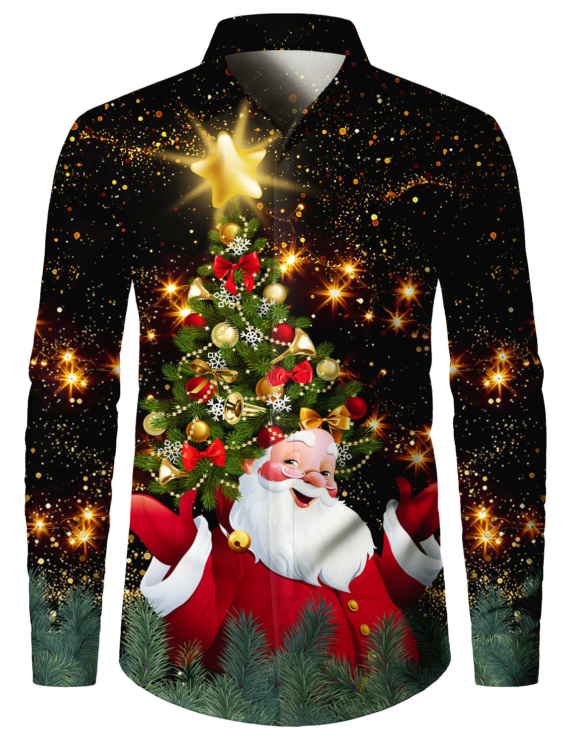 Men's Santa Claus Christmas Tree Funny Long Sleeve Shirt