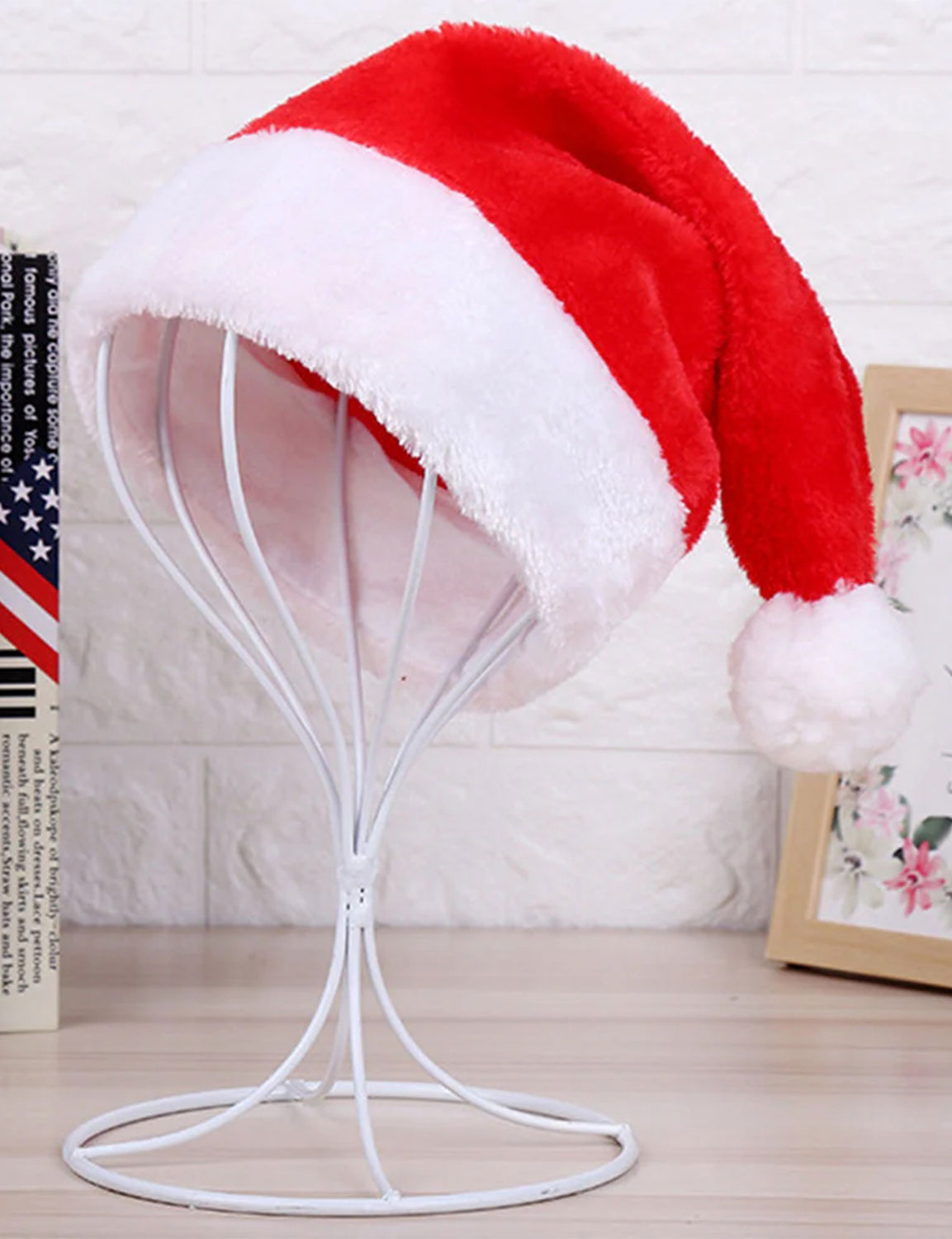 Red Plush Xmas Party Holiday Christmas Hat For Adults Unisex