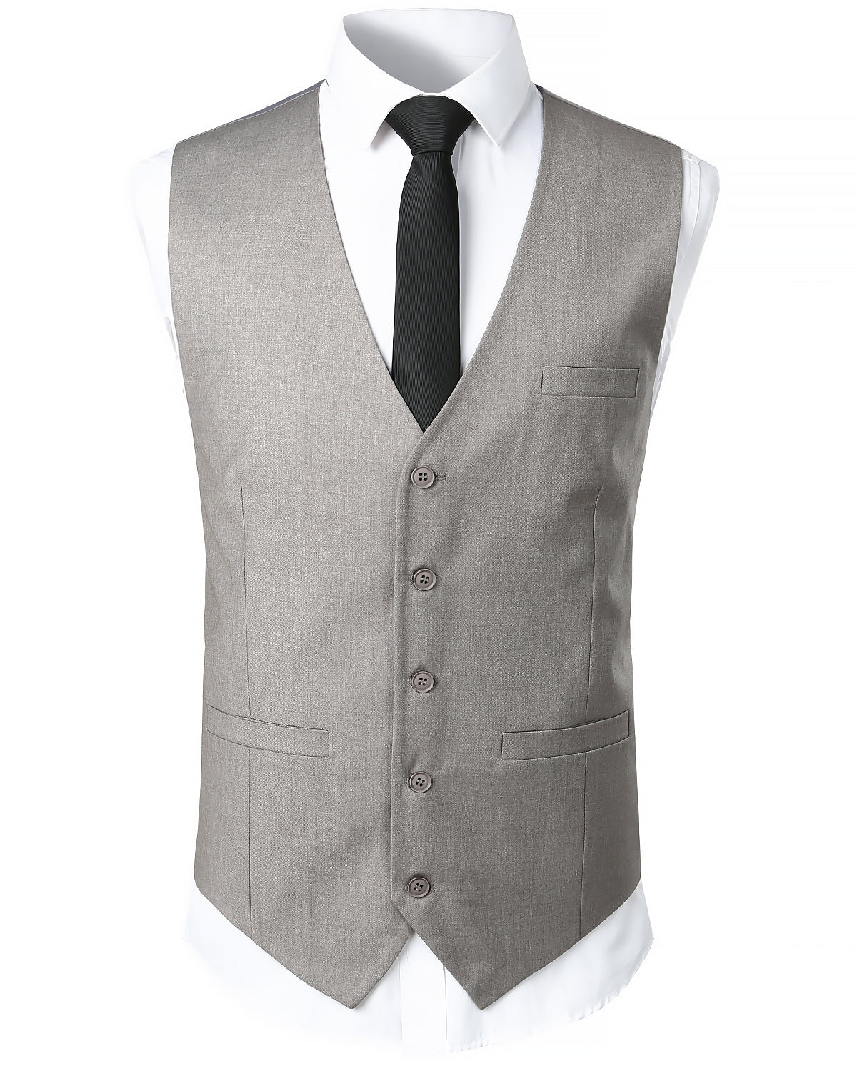 Mens V-Neck Formal Suit Vest Slim Fit Dress Vest Wedding Waistcoat for Tuxedo