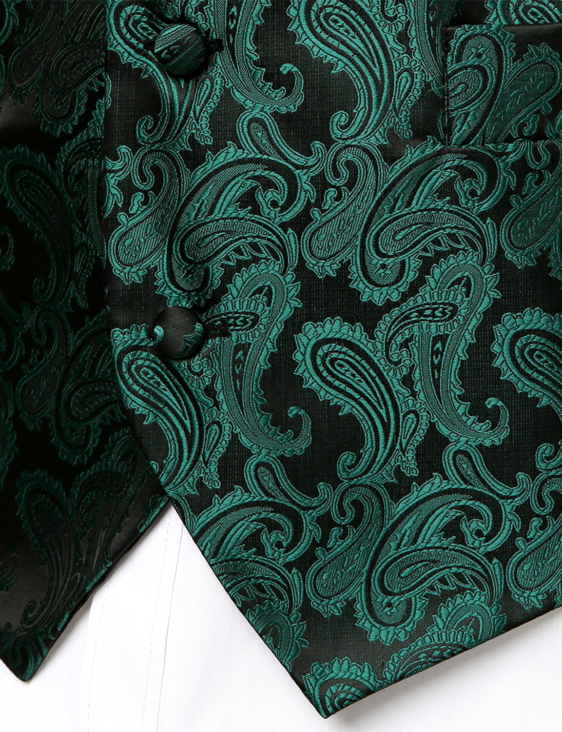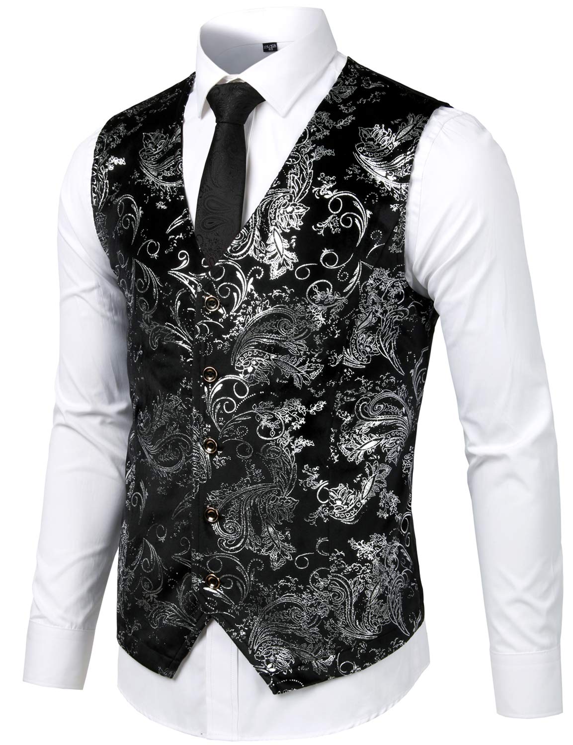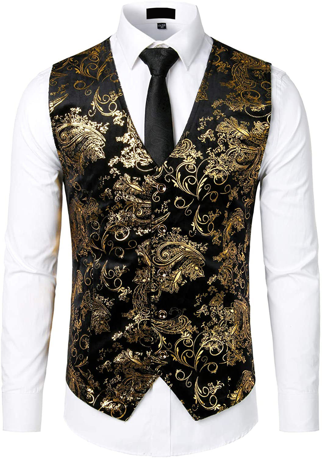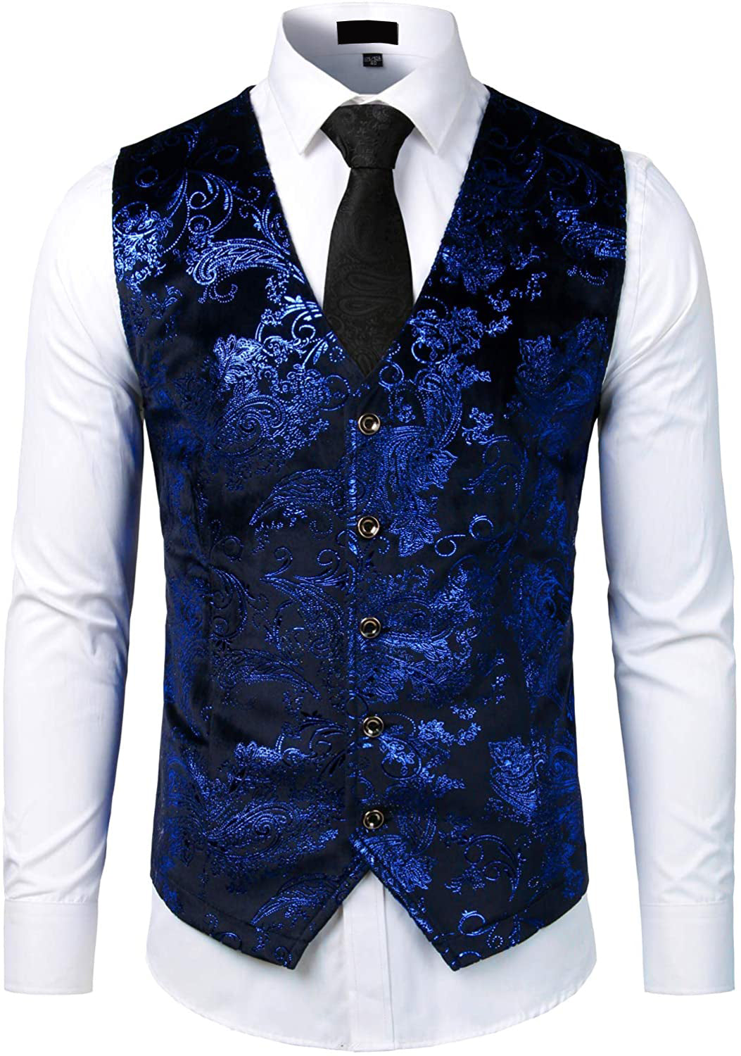 Mens Hipster Metallic Paisley Printed Single Breasted V-Neck Suit Vest/Tuxedo Waistcoat