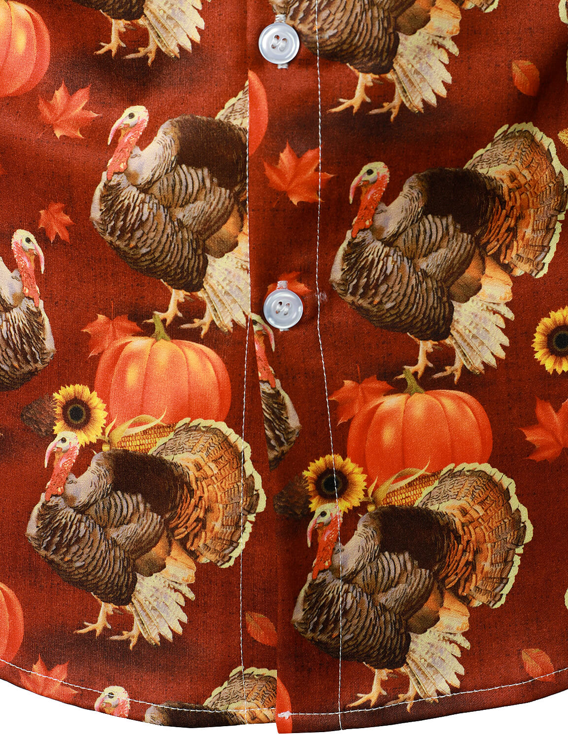Men's Thanksgiving Turkey Button Up Cute Animal Hawaiian Thankful Vacation Long Sleeve Shirt