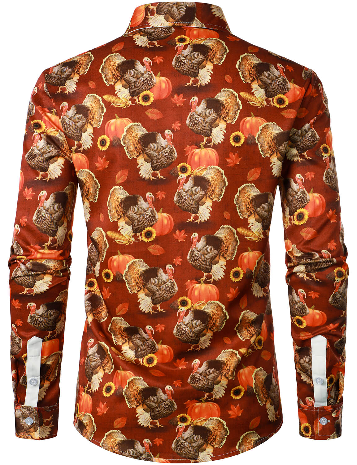 Men's Thanksgiving Gift Funny Turkey Holiday Button Long Sleeve Shirt