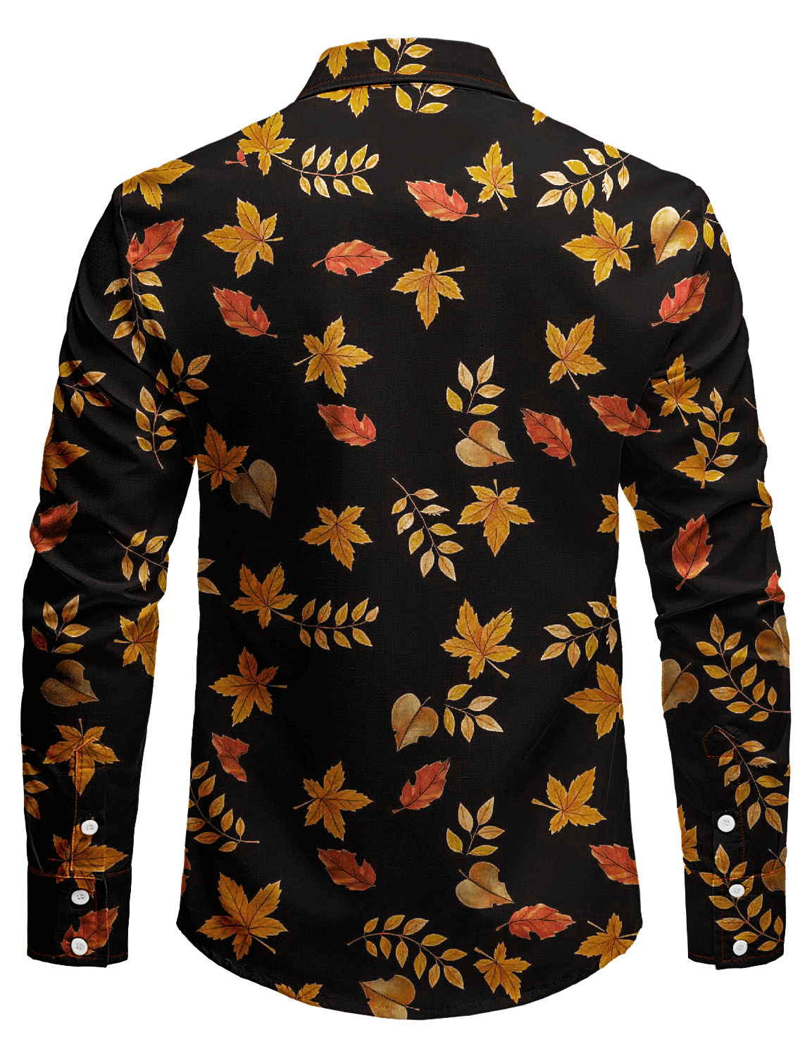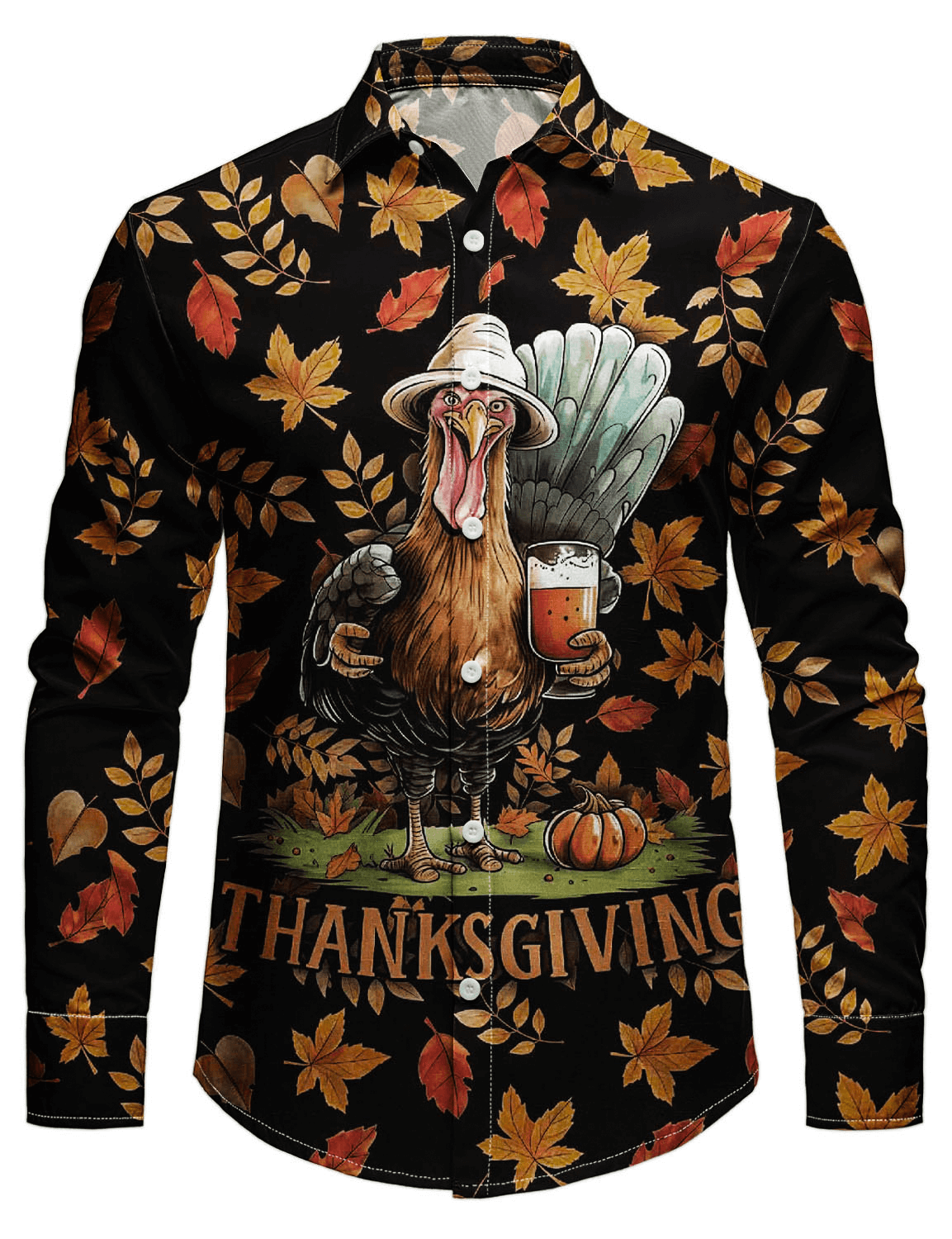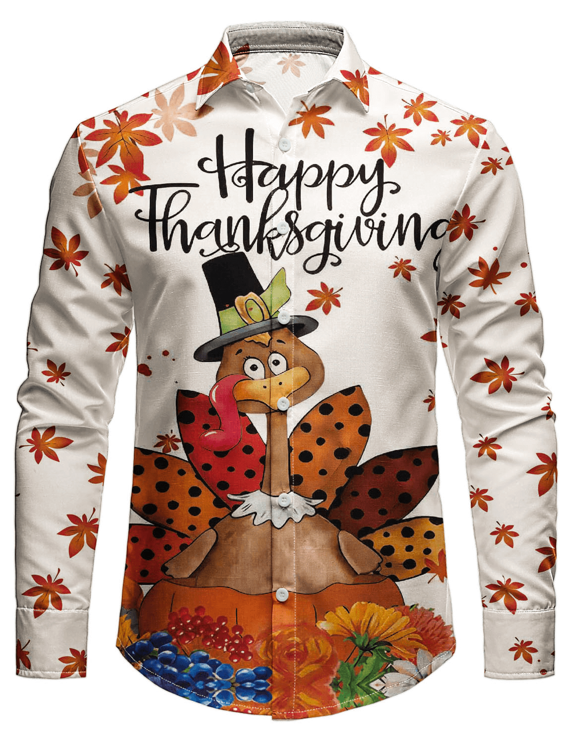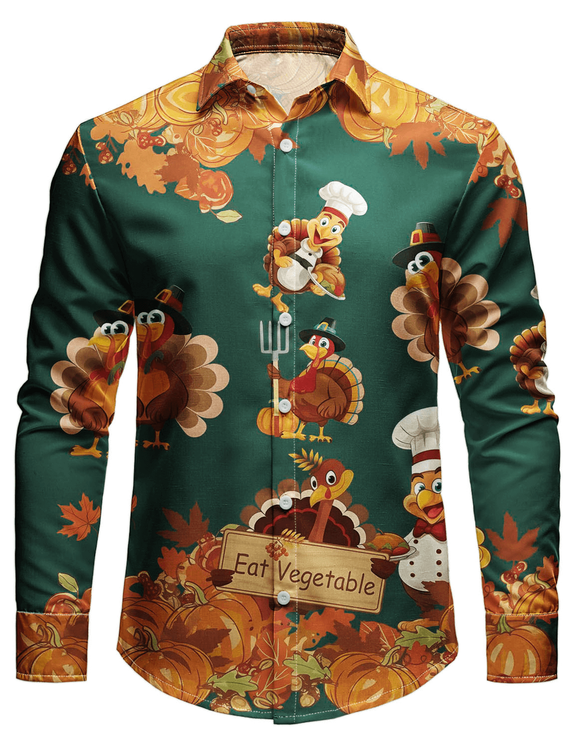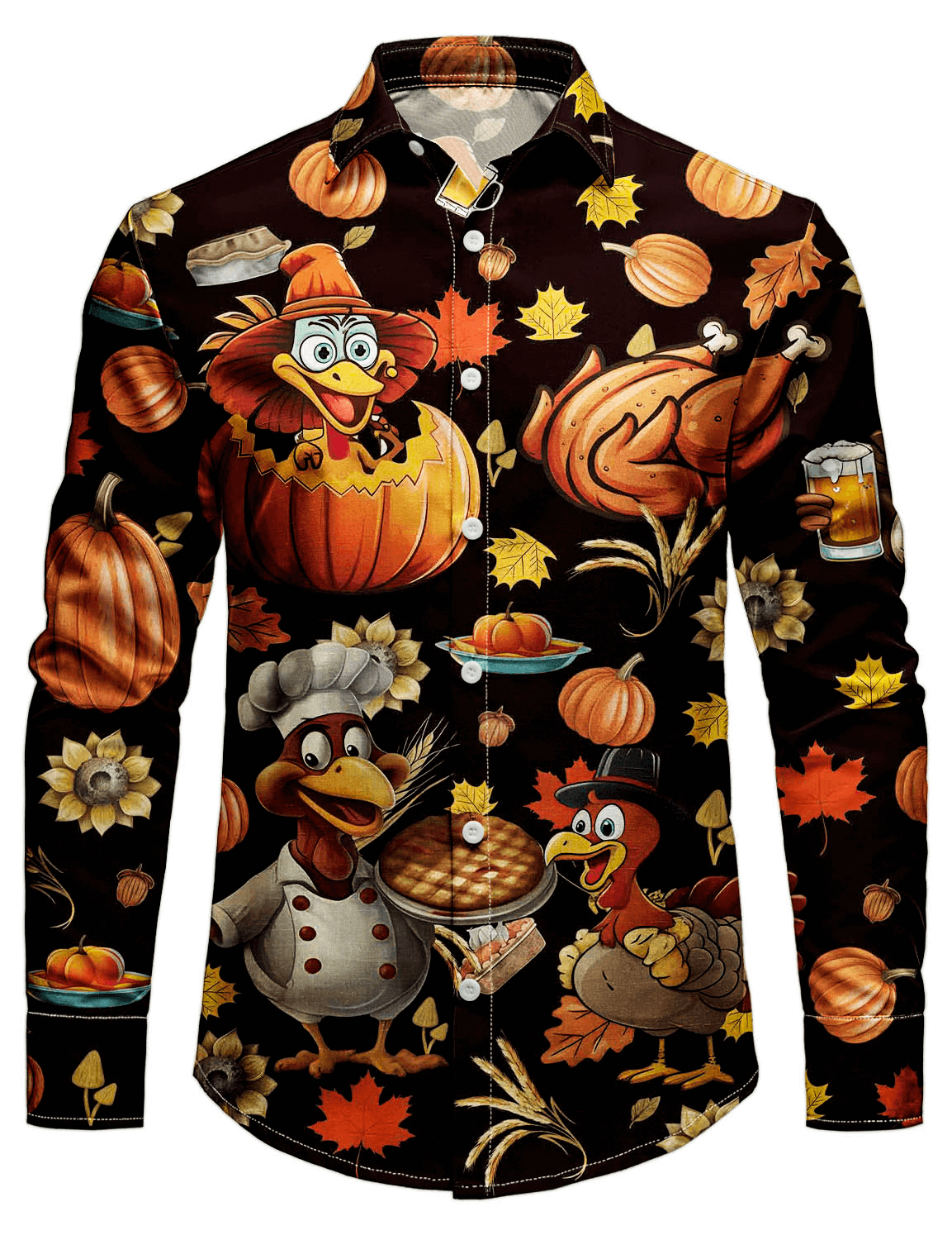Men's Thanksgiving Festive Print Holiday Button Up Long Sleeve Shirt