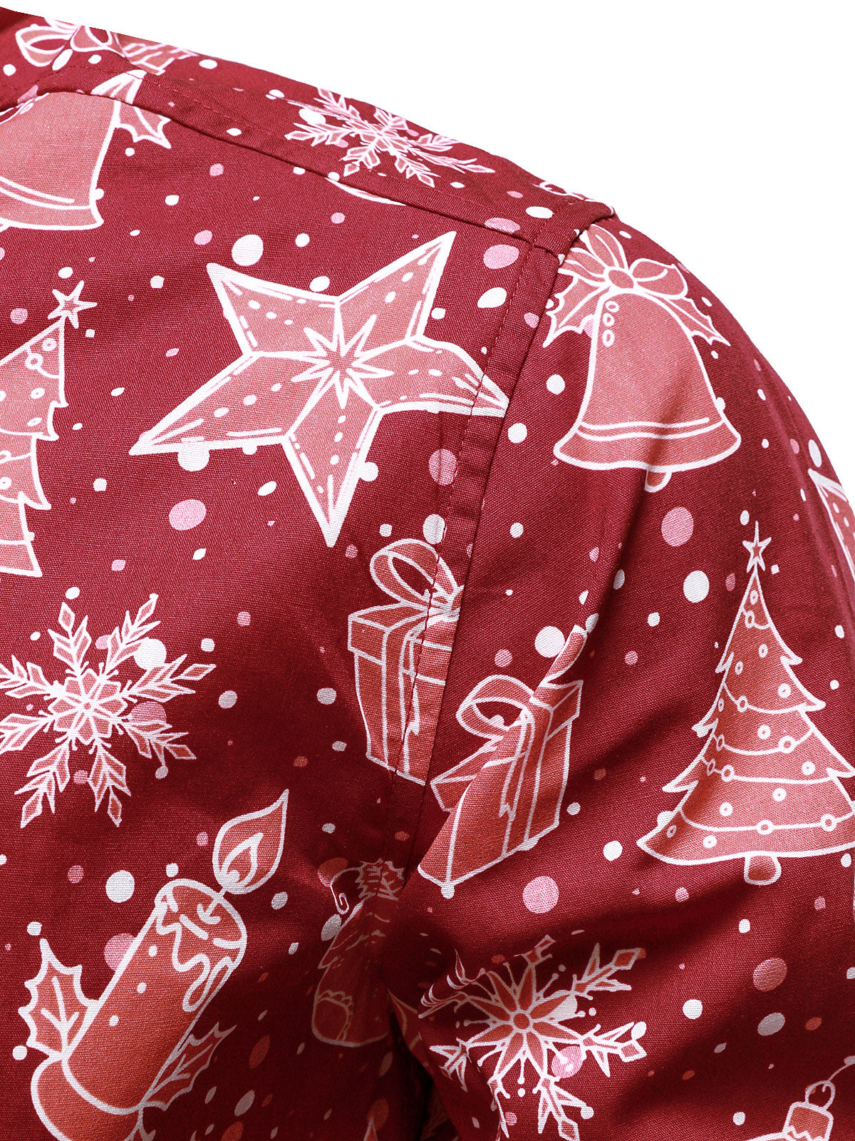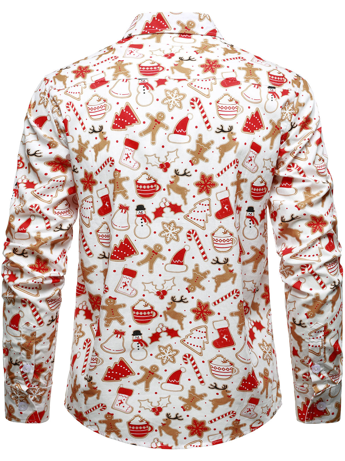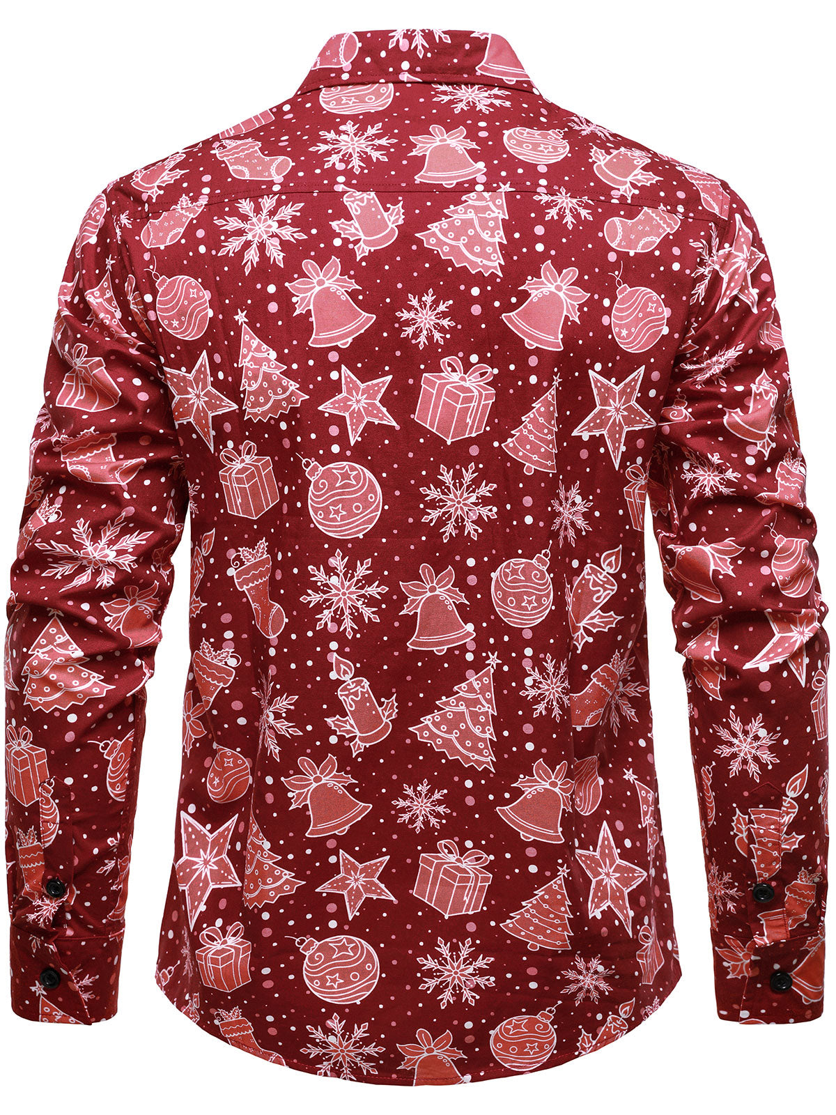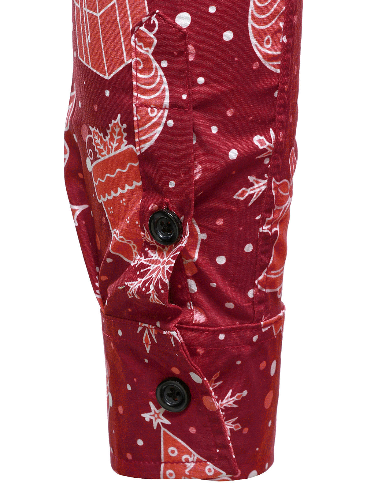 Men's Christmas Festive Gift Stocking Pattern Print Long Sleeve Button Down Shirt