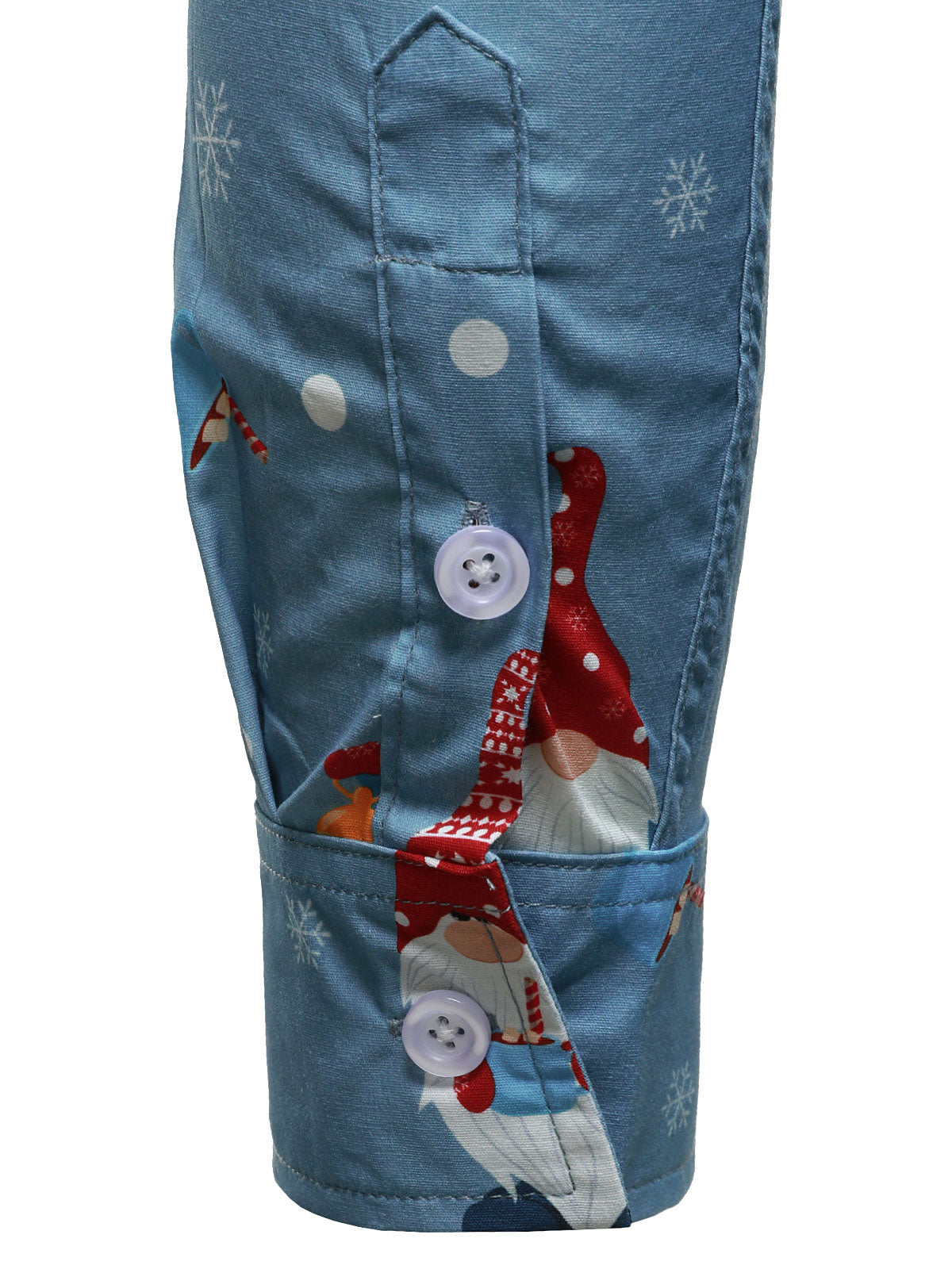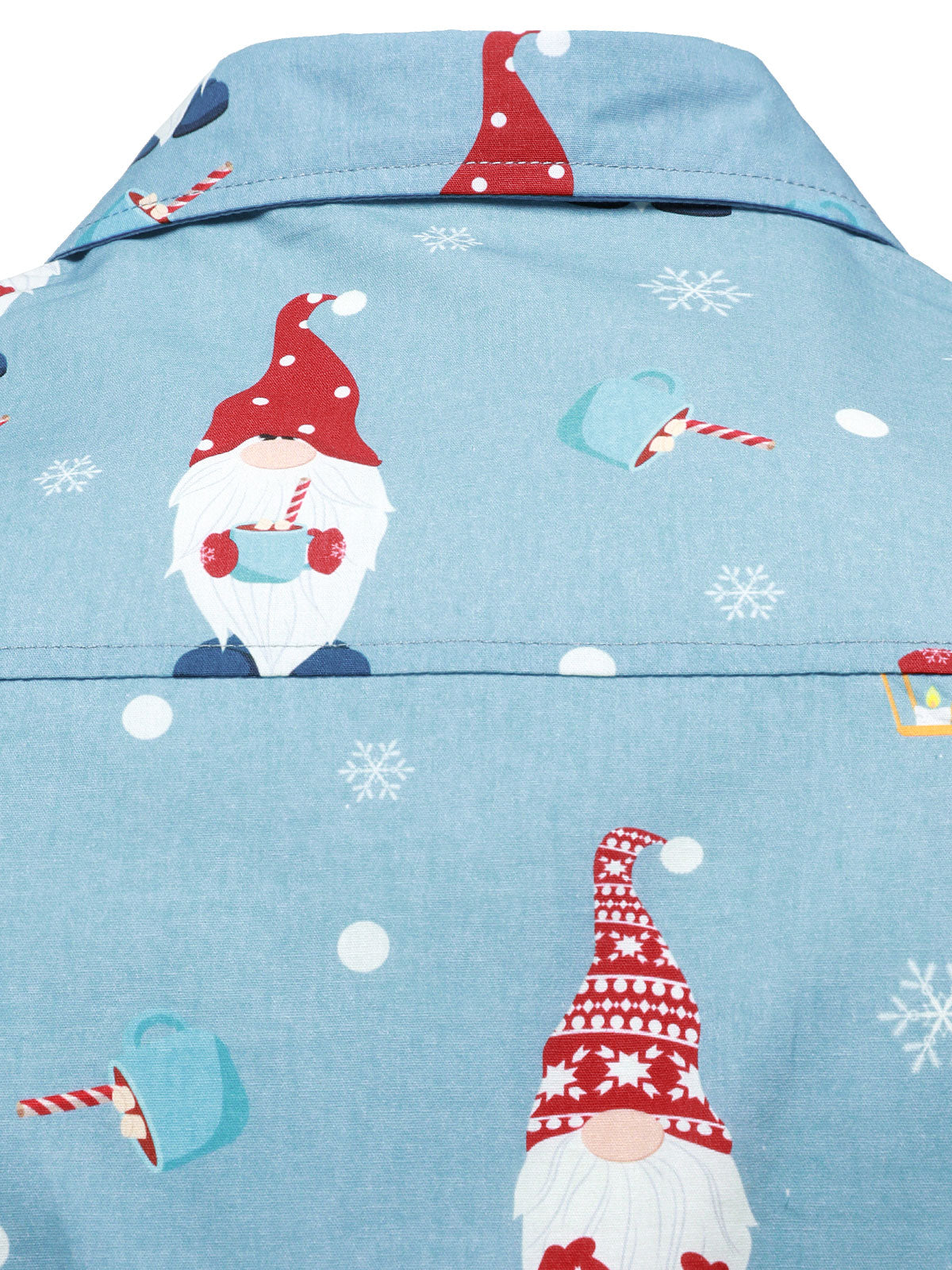 Men's Christmas Blue Cute Gnome Cotton Long Sleeve Shirt