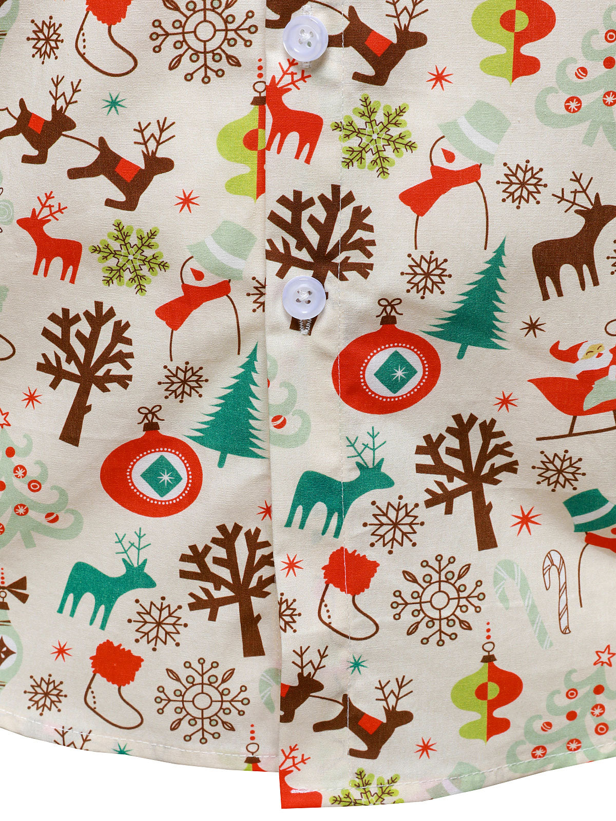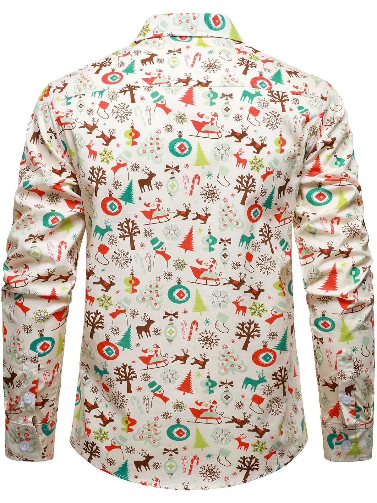 Men's Christmas Themed Funny Holiday Festive Print Beige Long Sleeve Button Down Shirt