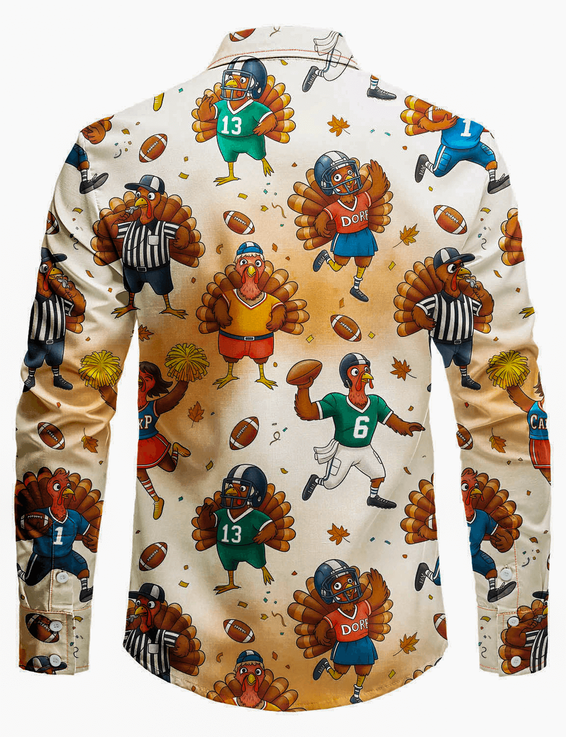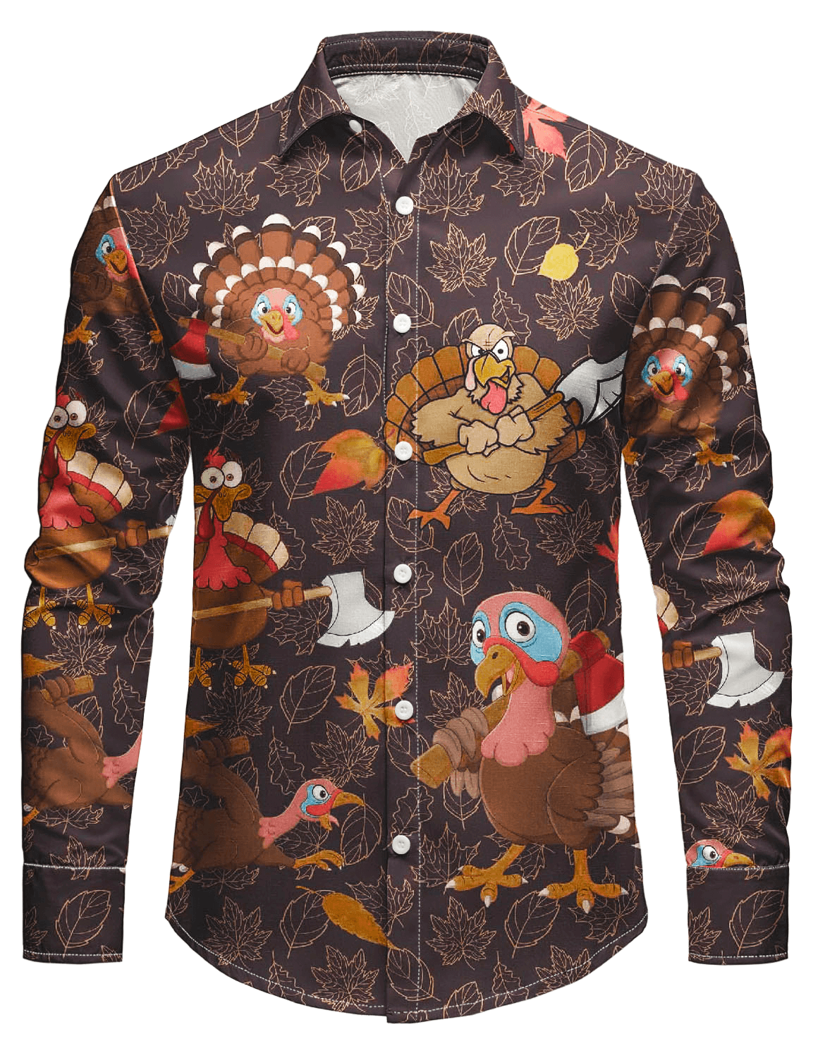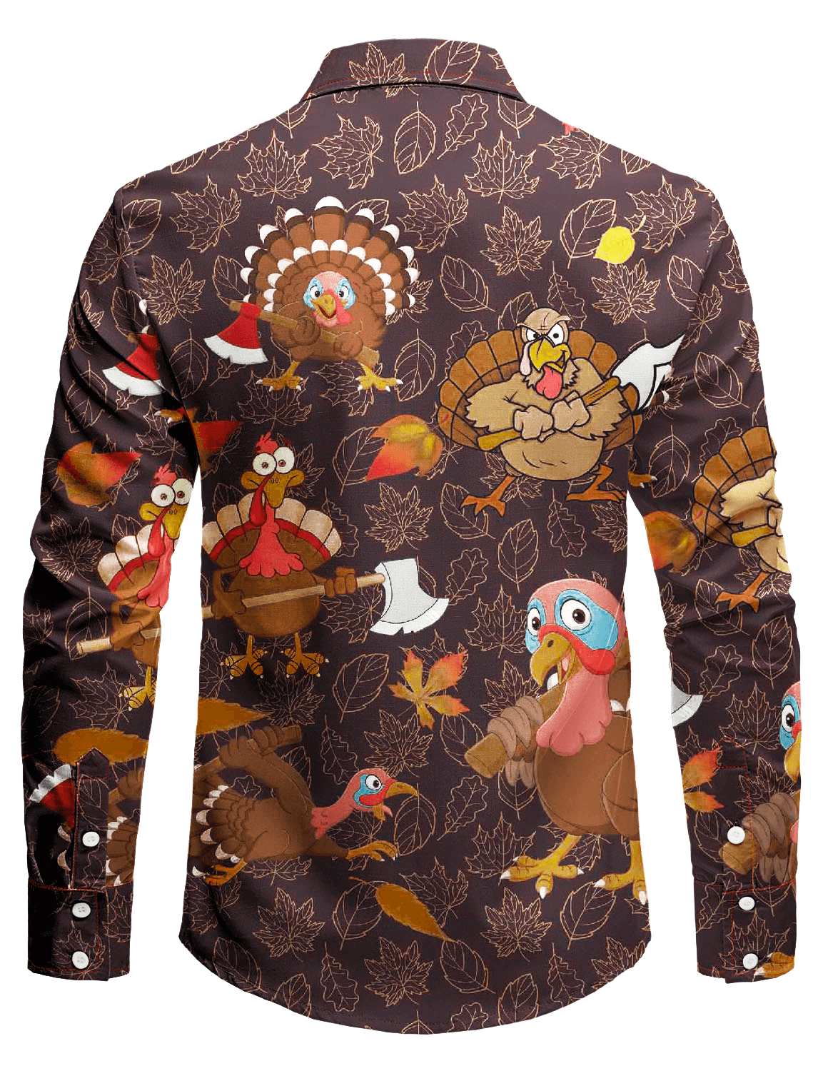 Men's Funny Turkey Print Thanksgiving Holiday Button Up Long Sleeve Shirt