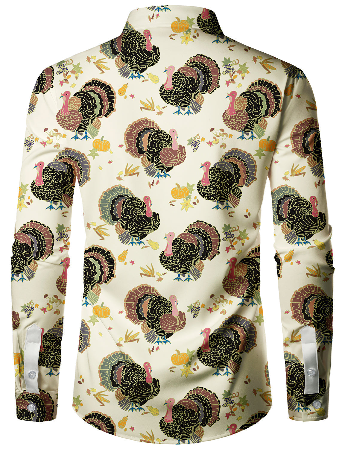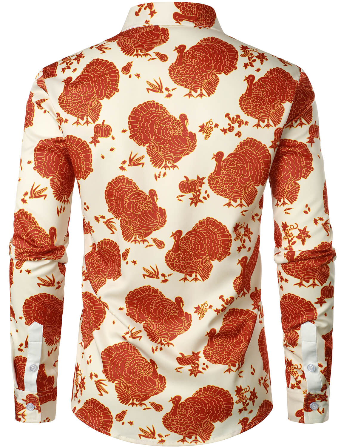 Bundle Of 2 | Men's Thanksgiving Turkey Long Sleeve Shirt & Turkey Funny Print Party Socks