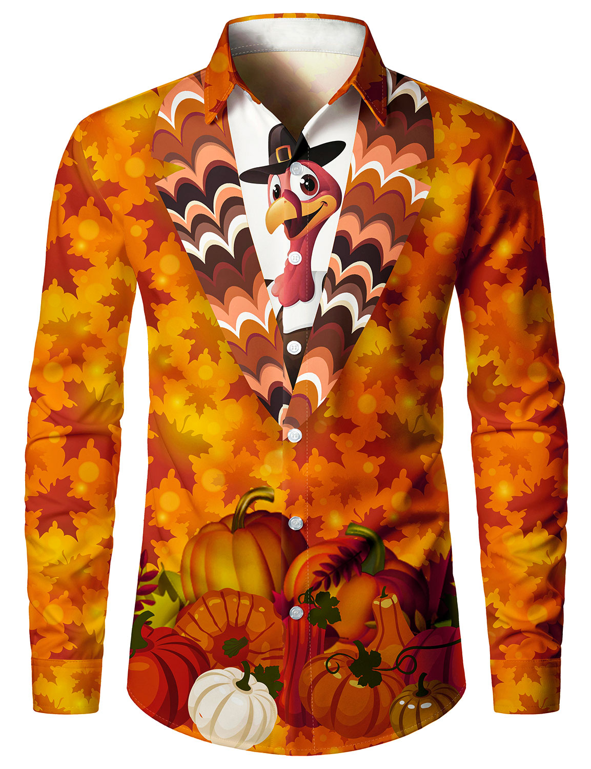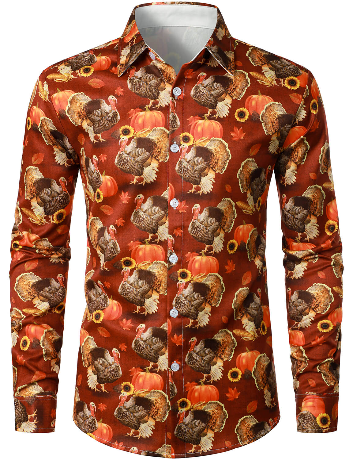 Bundle Of 2 | Men's Thanksgiving Turkey Day Fall Festival Gift Funny Holiday Button Long Sleeve Shirts