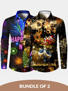 Bundle Of 2 | Men's Christmas Santa Print Xmas New Year Long Sleeve Shirts