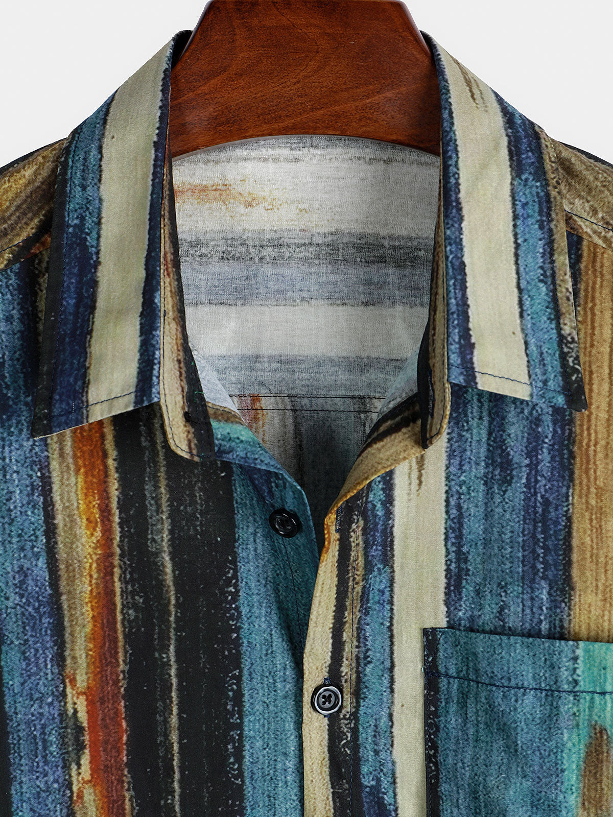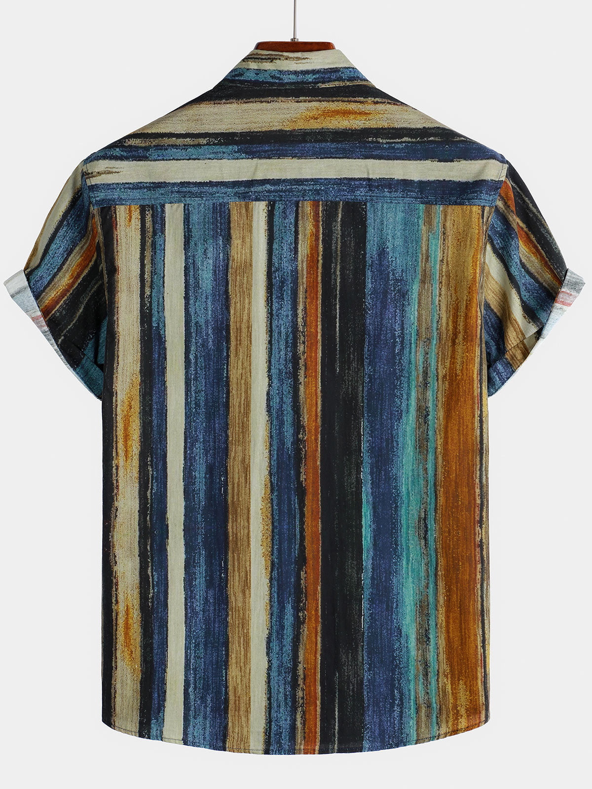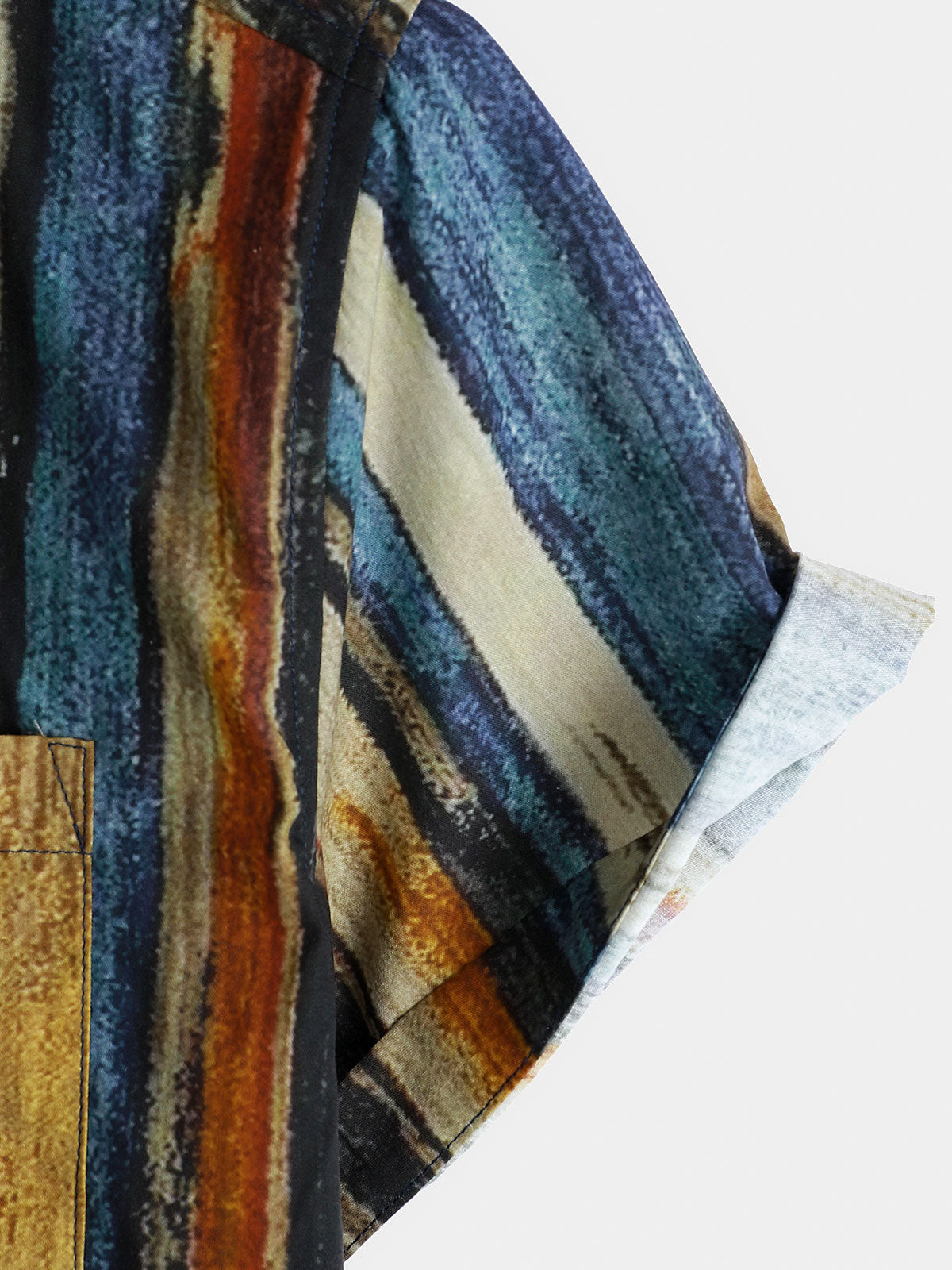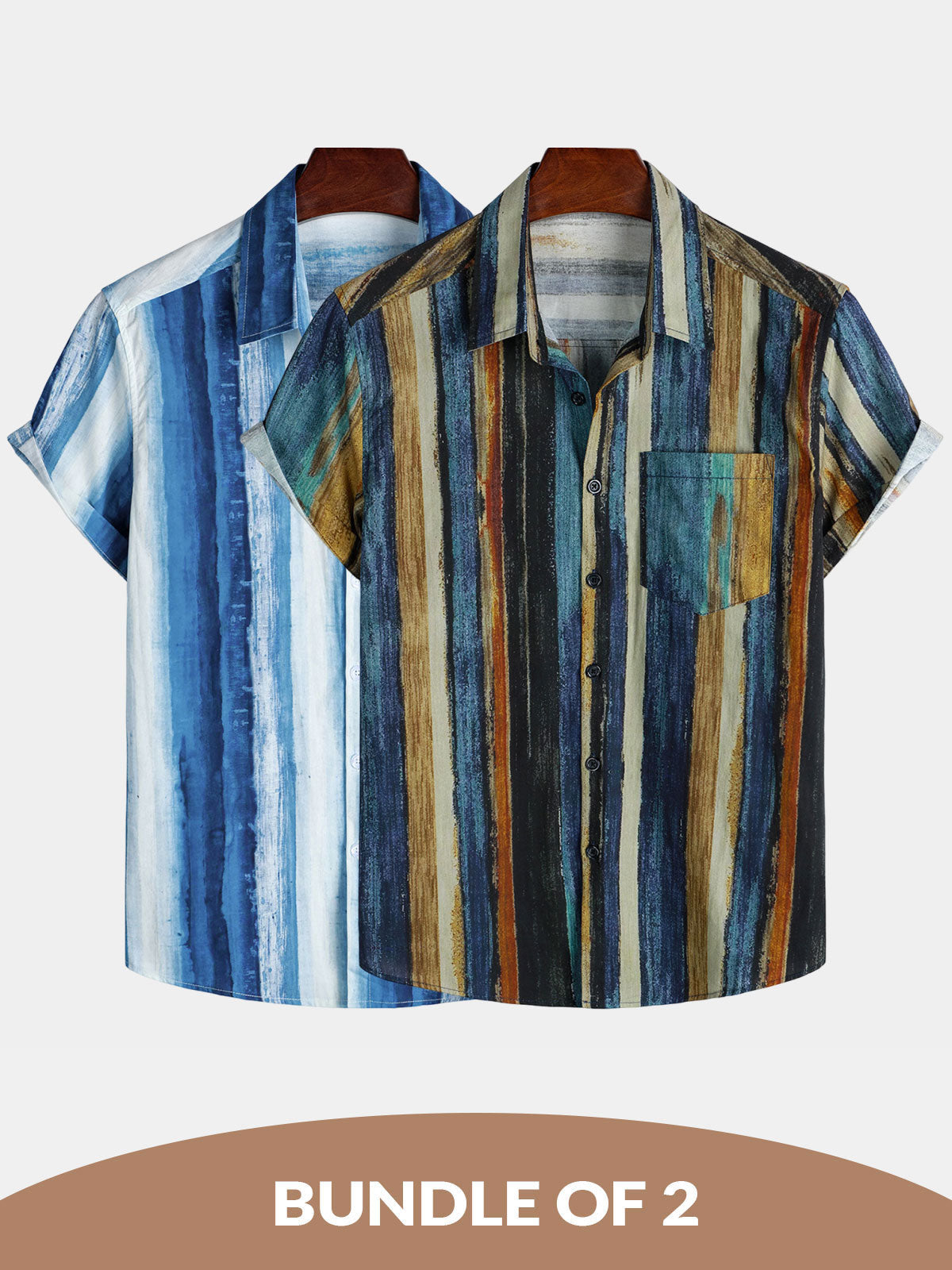 Bundle Of 2 | Men's Striped Holiday Art Pocket Short Sleeve Shirts