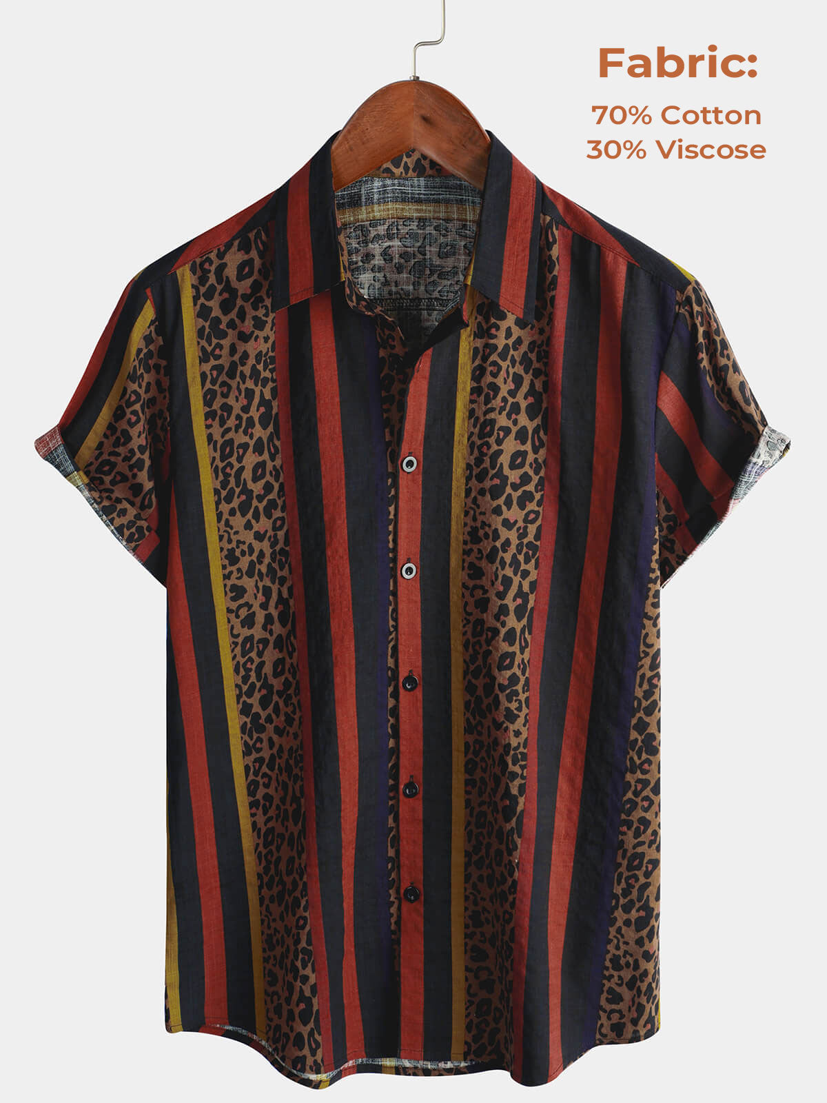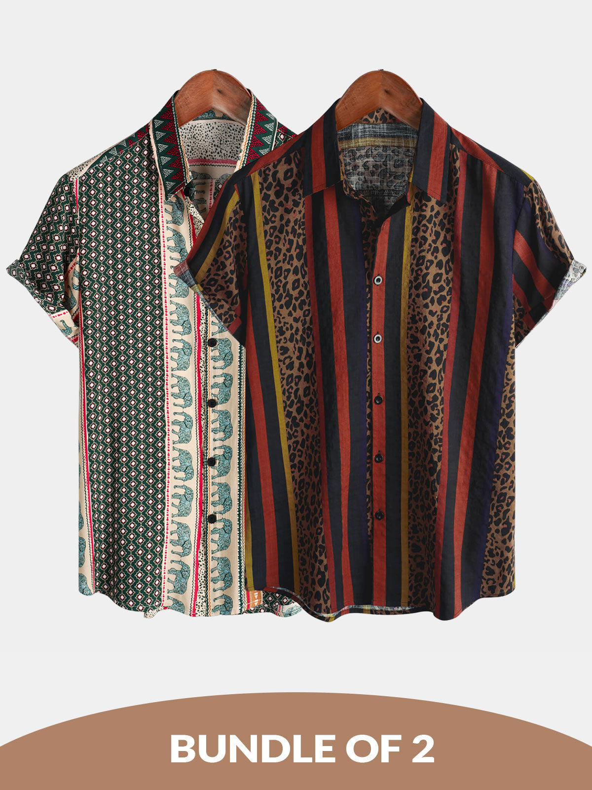 Bundle Of 2 | Men's Striped Print Retro Button Up Short Sleeve Shirts
