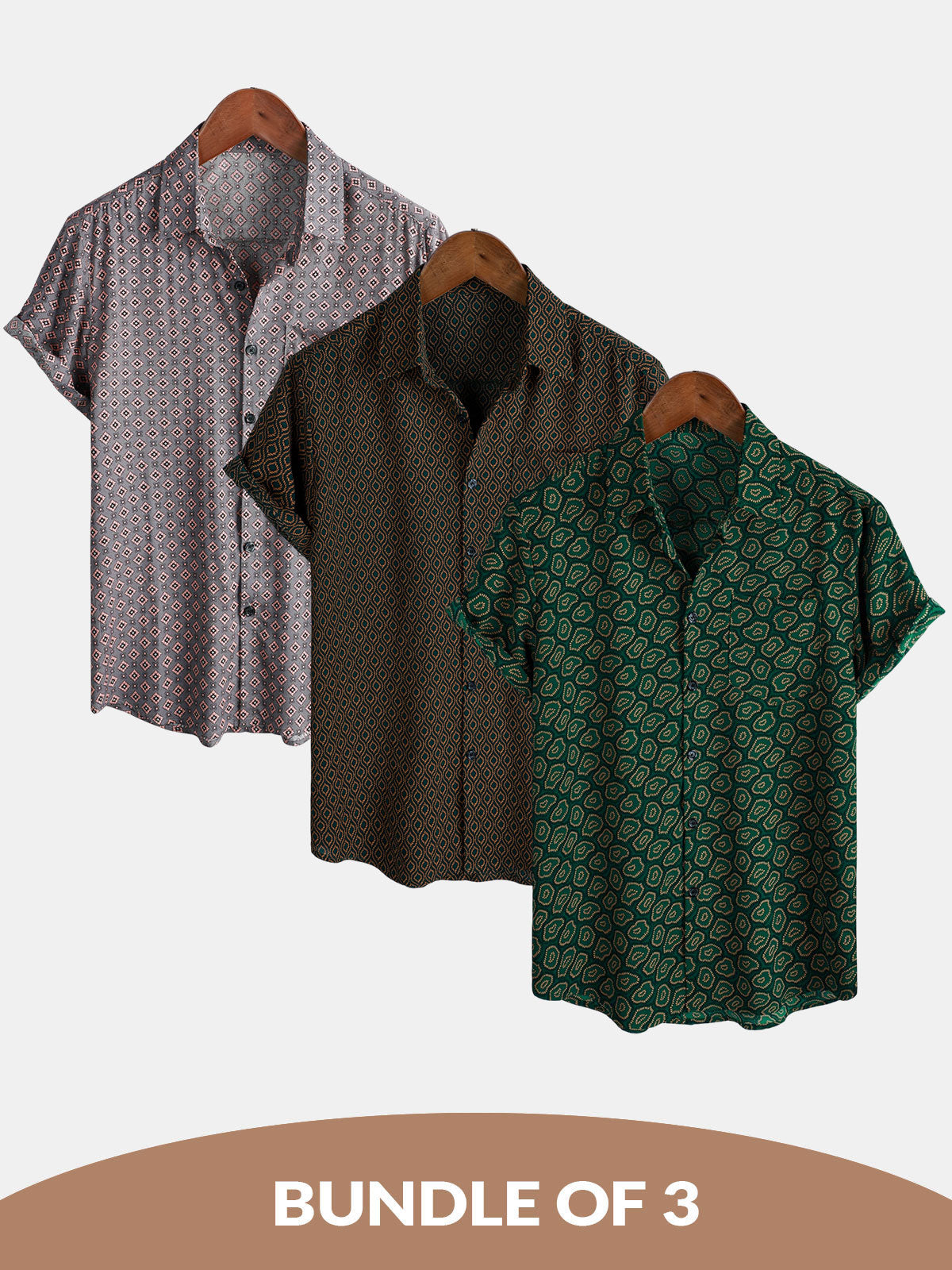 Bundle Of 3 | Men's Abstract Geometric Short Sleeve Pocket Shirts