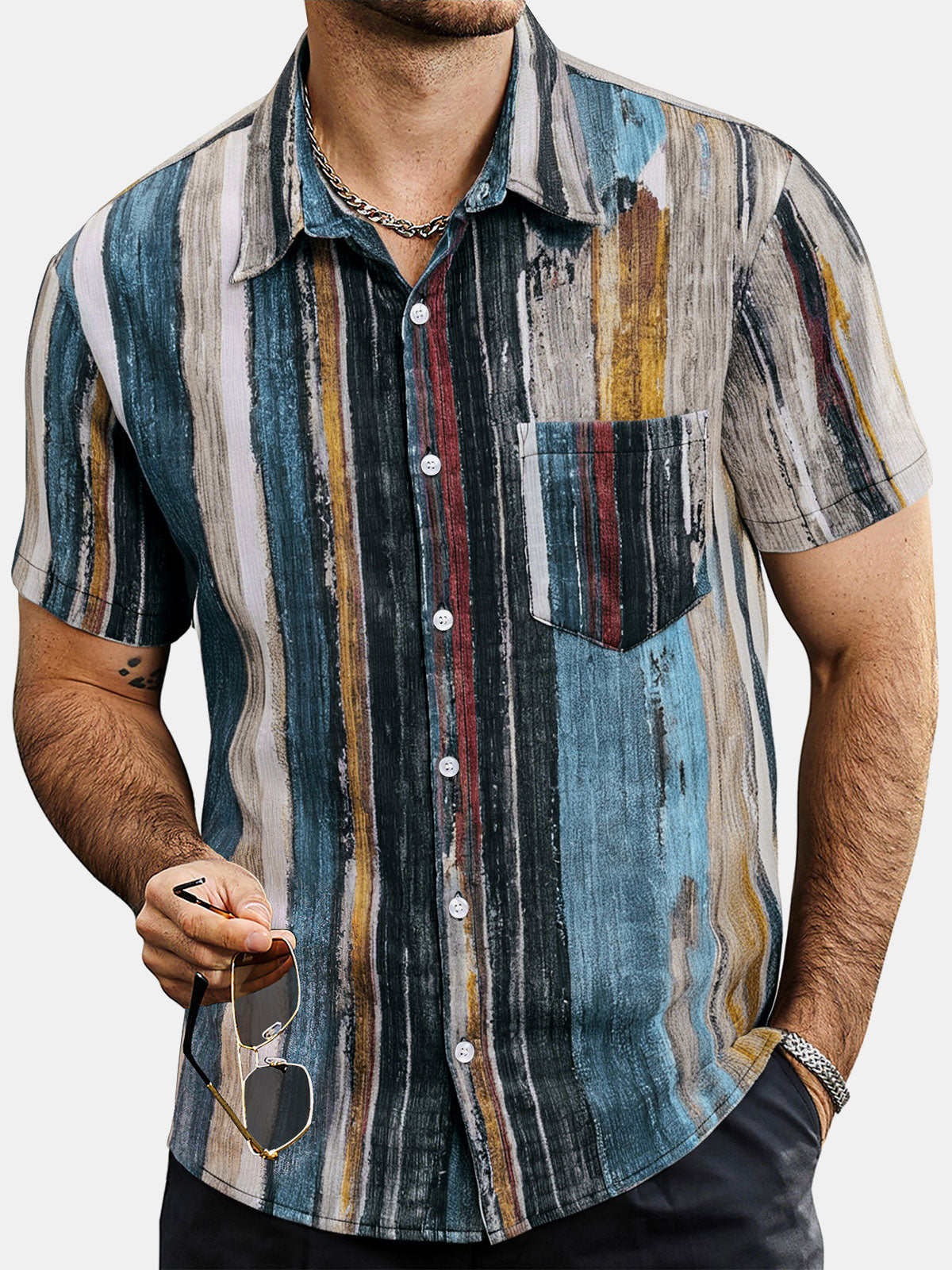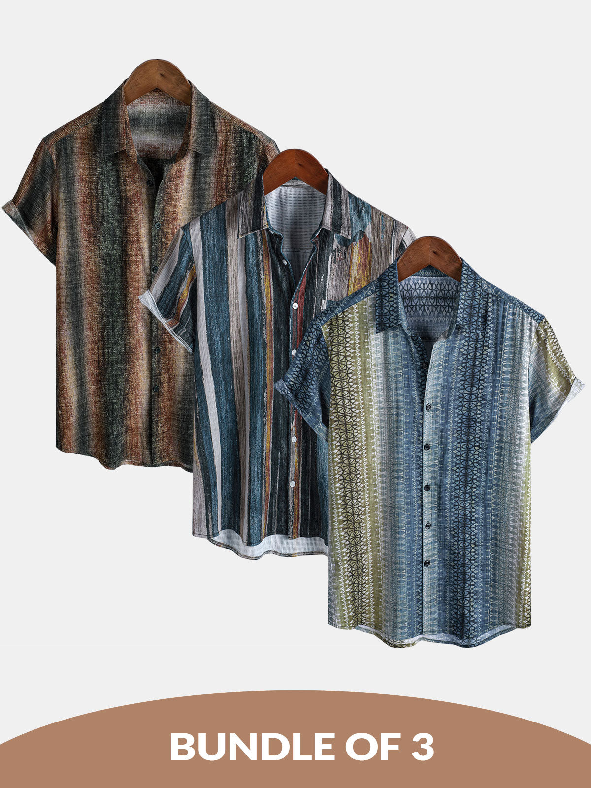 Bundle Of 3 | Men's Summer Striped Short Sleeve Hawaiian Shirts