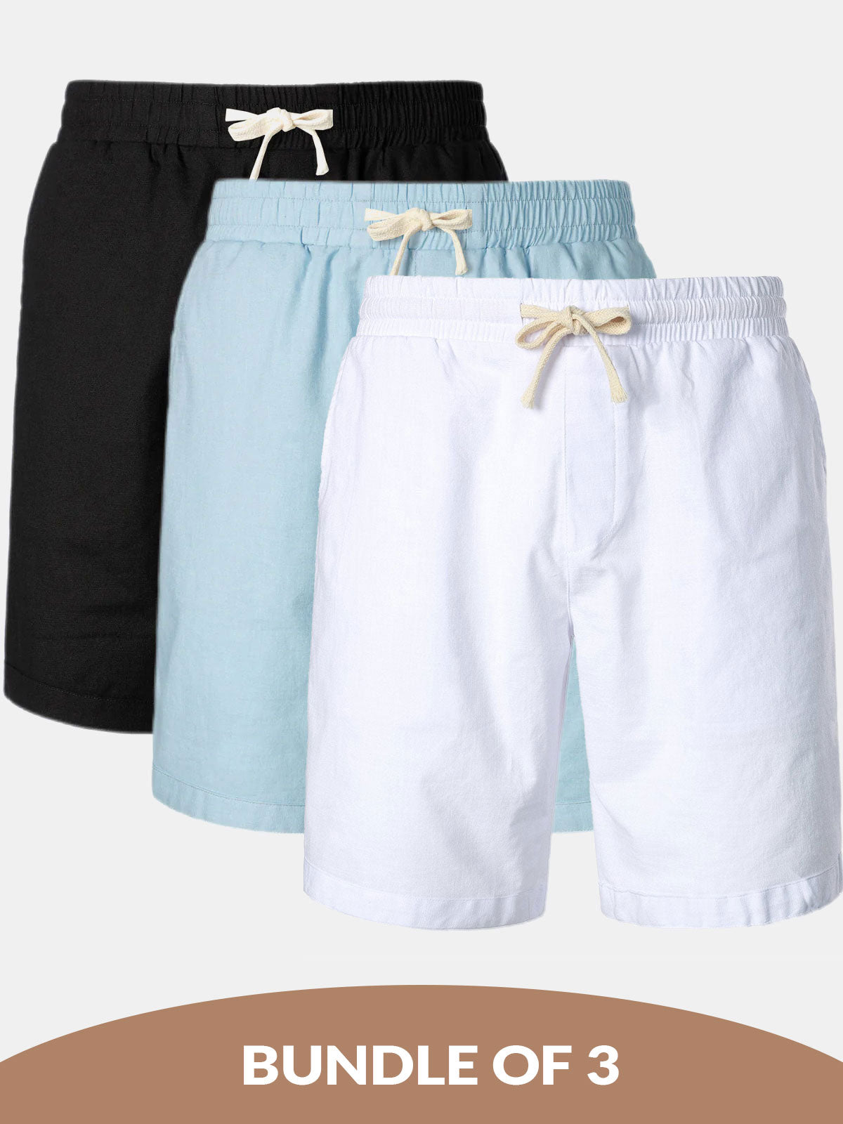 Bundle Of 3 | Men's Solid Color Breathable Linen Cotton Casual Shorts