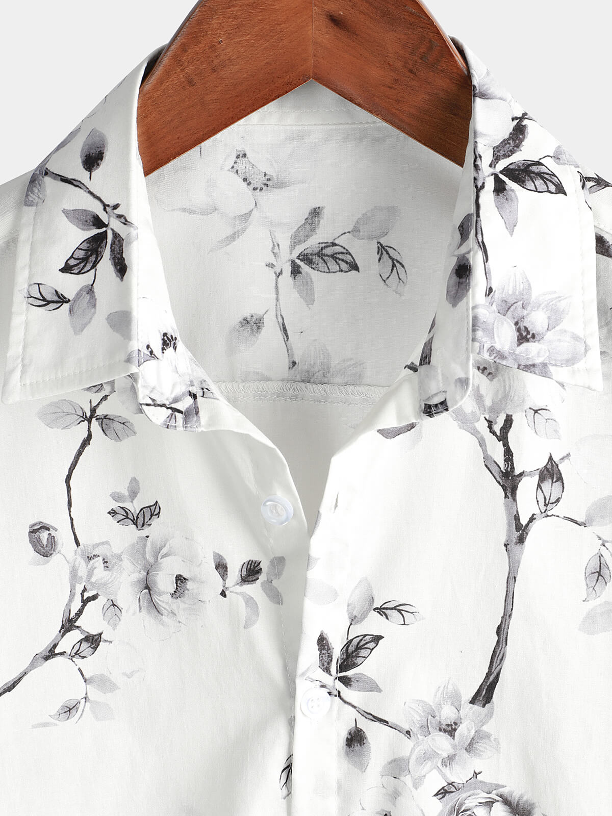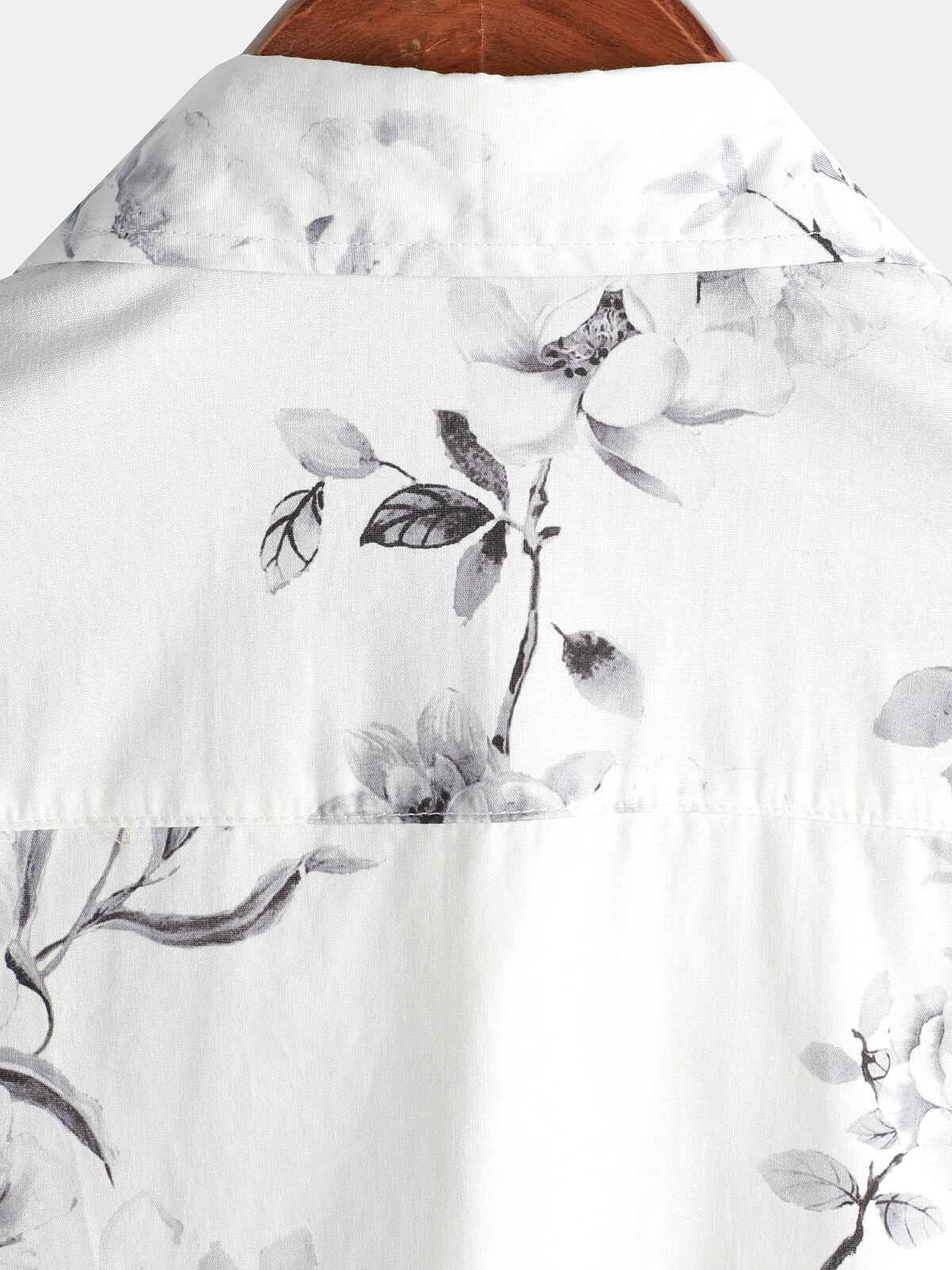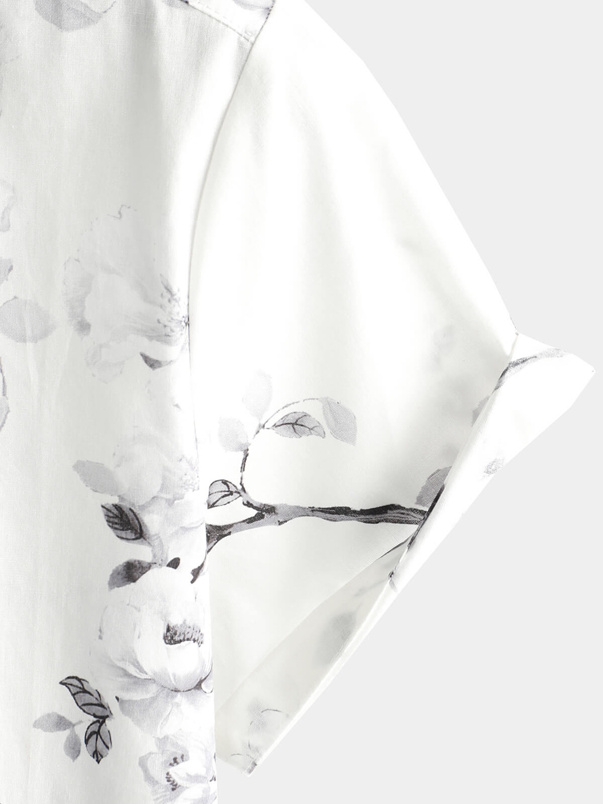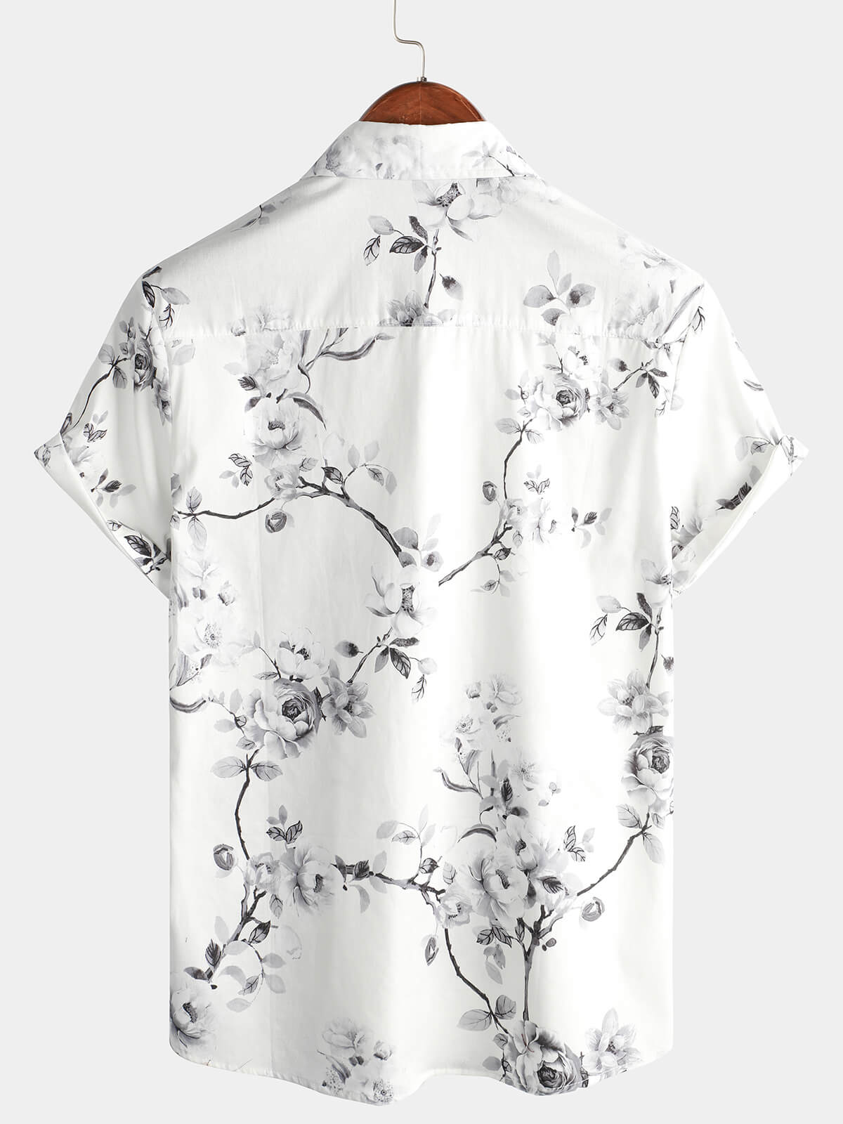 Men's Floral White Summer Holiday Beach Hawaiian Shirt